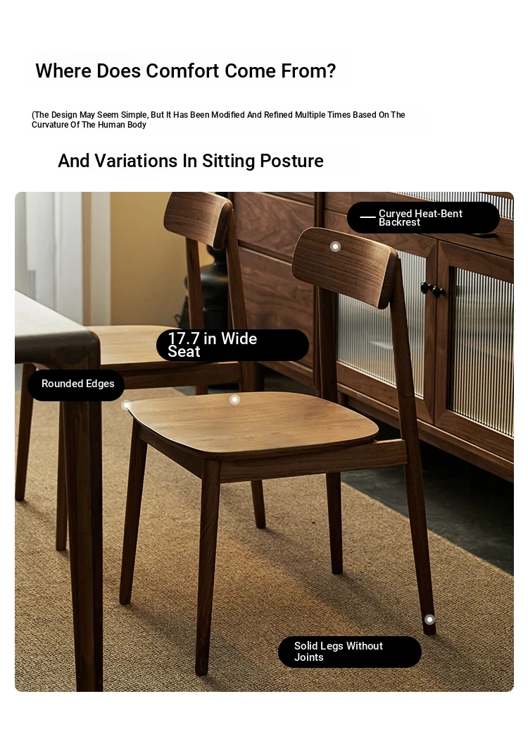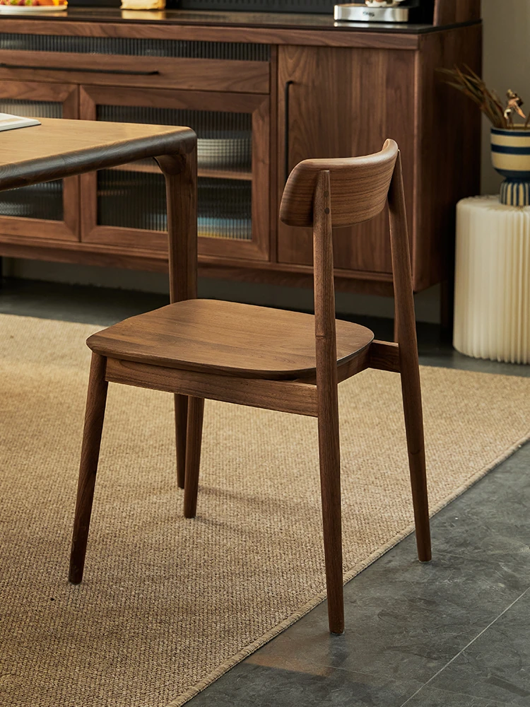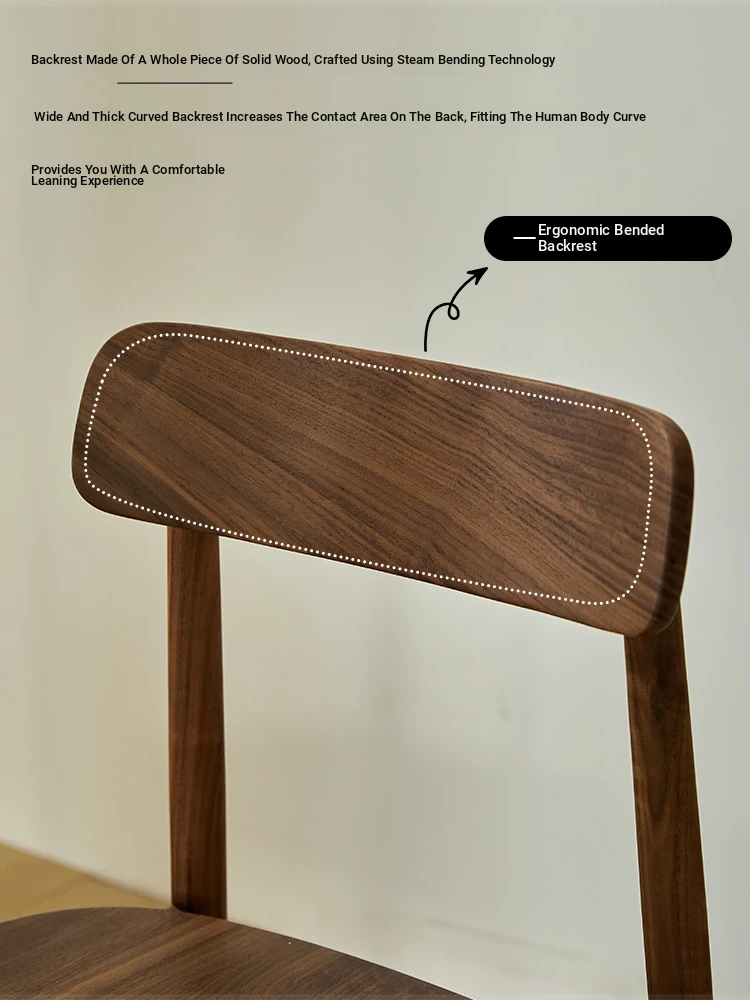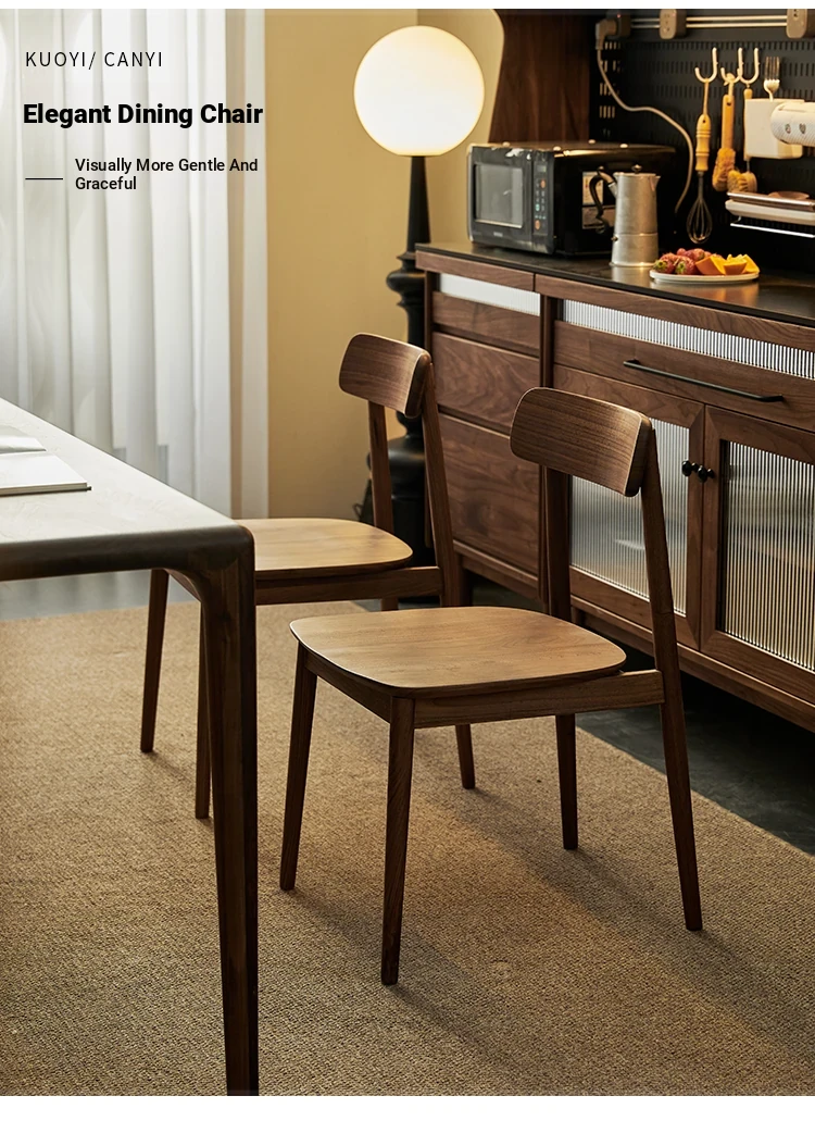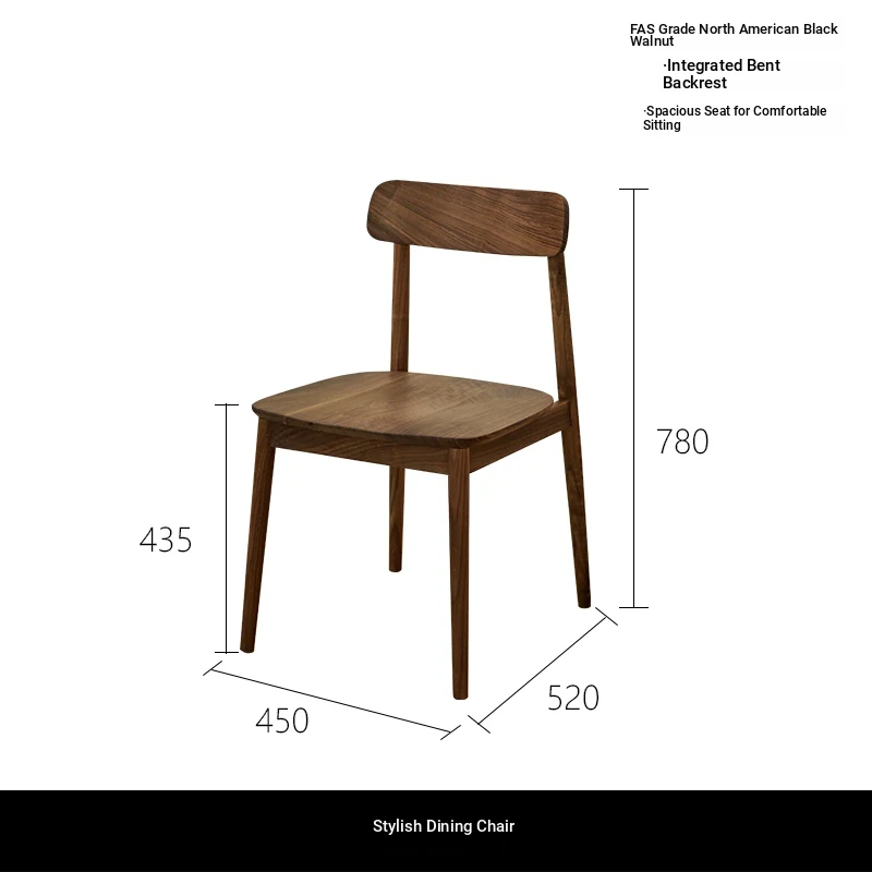 Modern Minimalist Solid Wood Dining Chair in North American Black Walnut - Perfect for Small Spaces, Durable and Stylish with Comfortable Backrest, Ideal for Your Dining Room Furniture Set