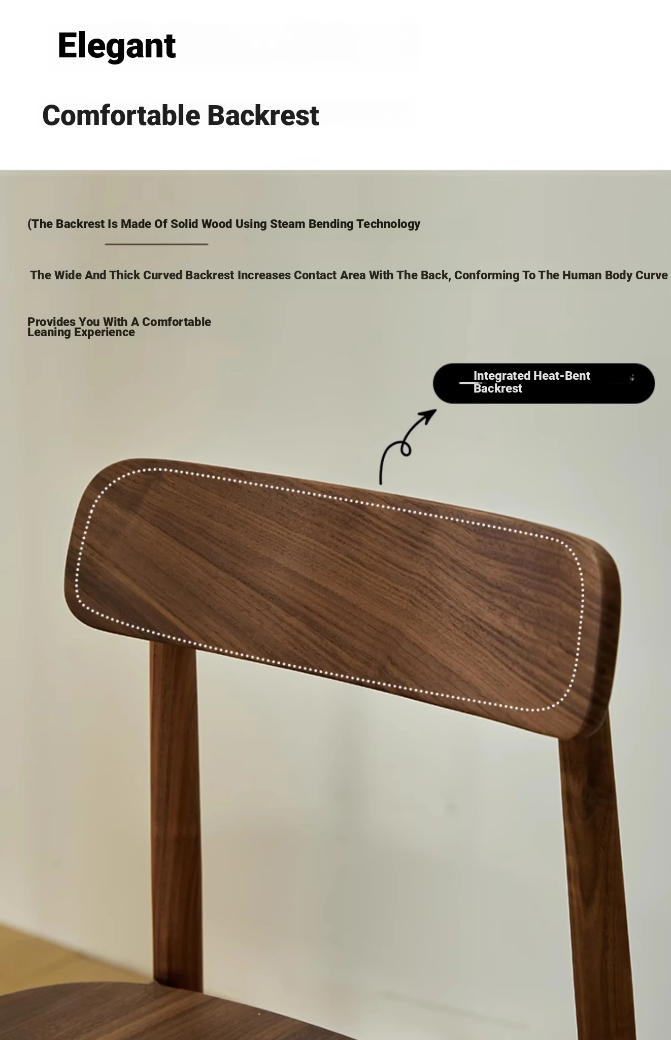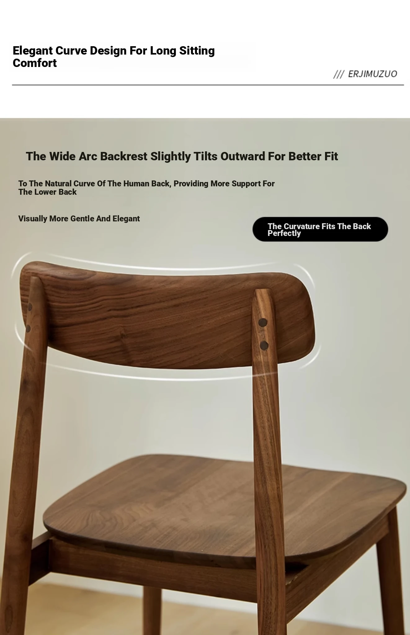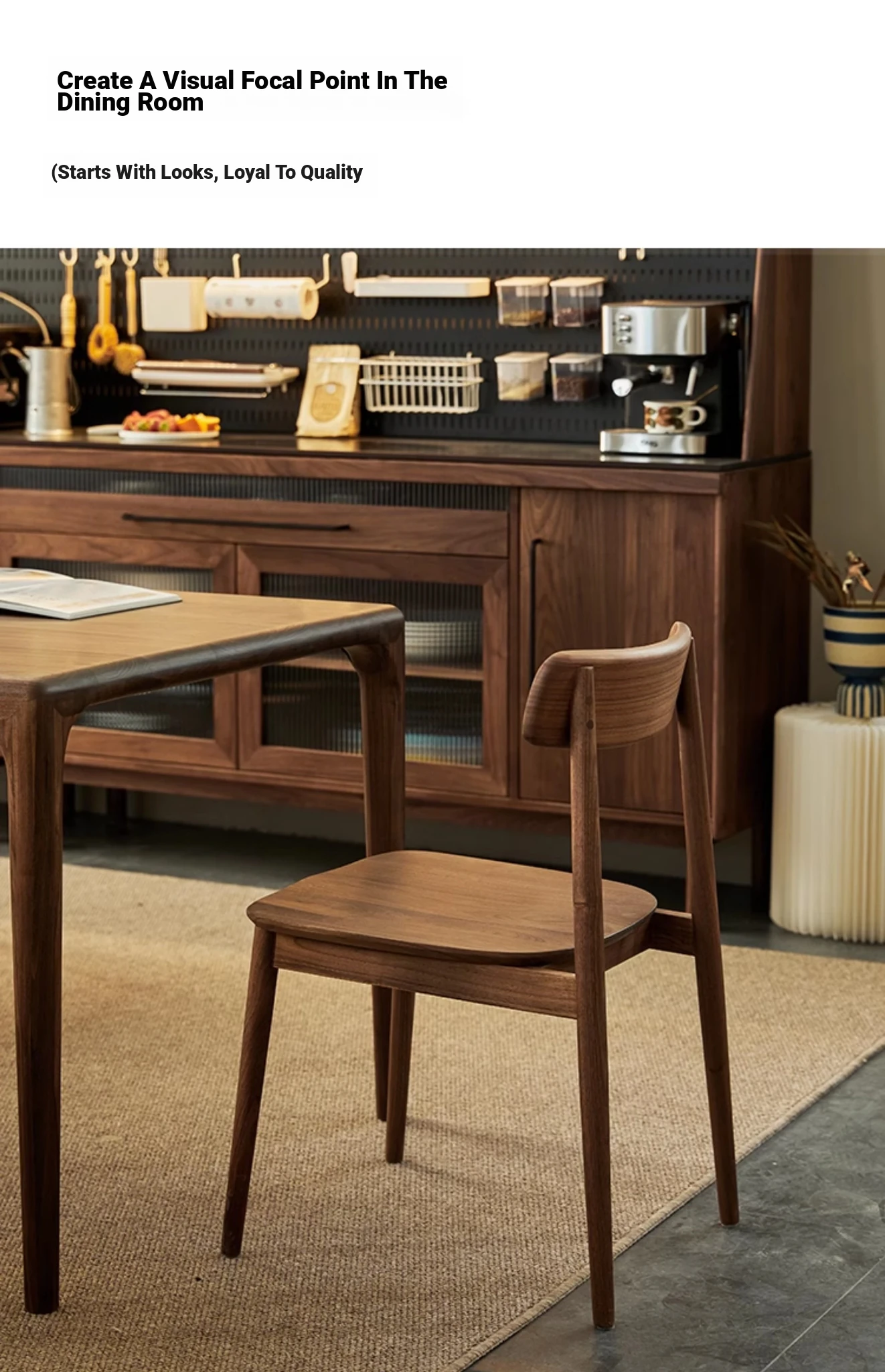 Modern Minimalist Solid Wood Dining Chair in North American Black Walnut - Perfect for Small Spaces, Durable and Stylish with Comfortable Backrest, Ideal for Your Dining Room Furniture Set