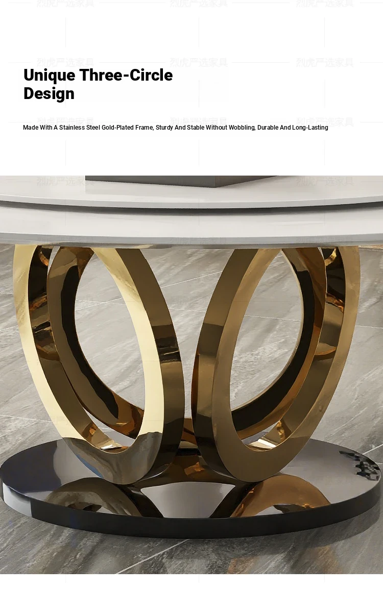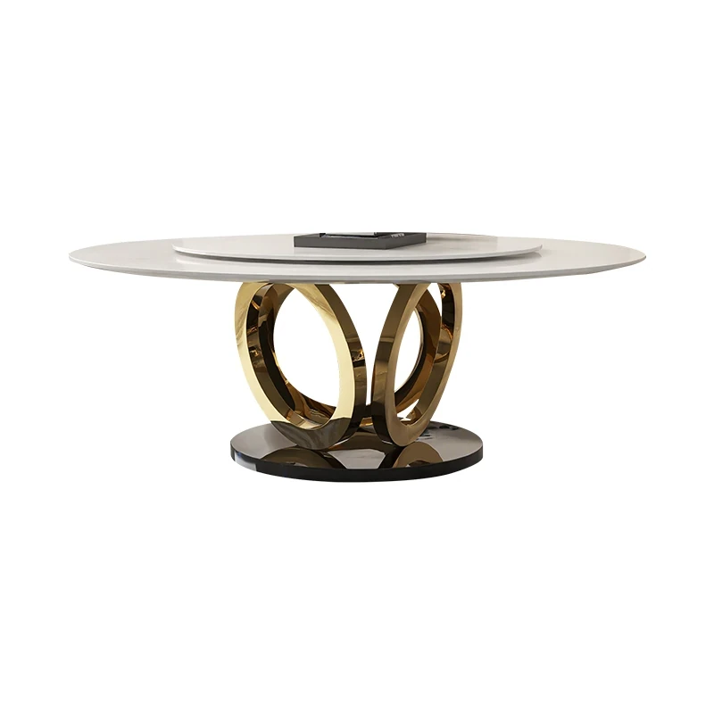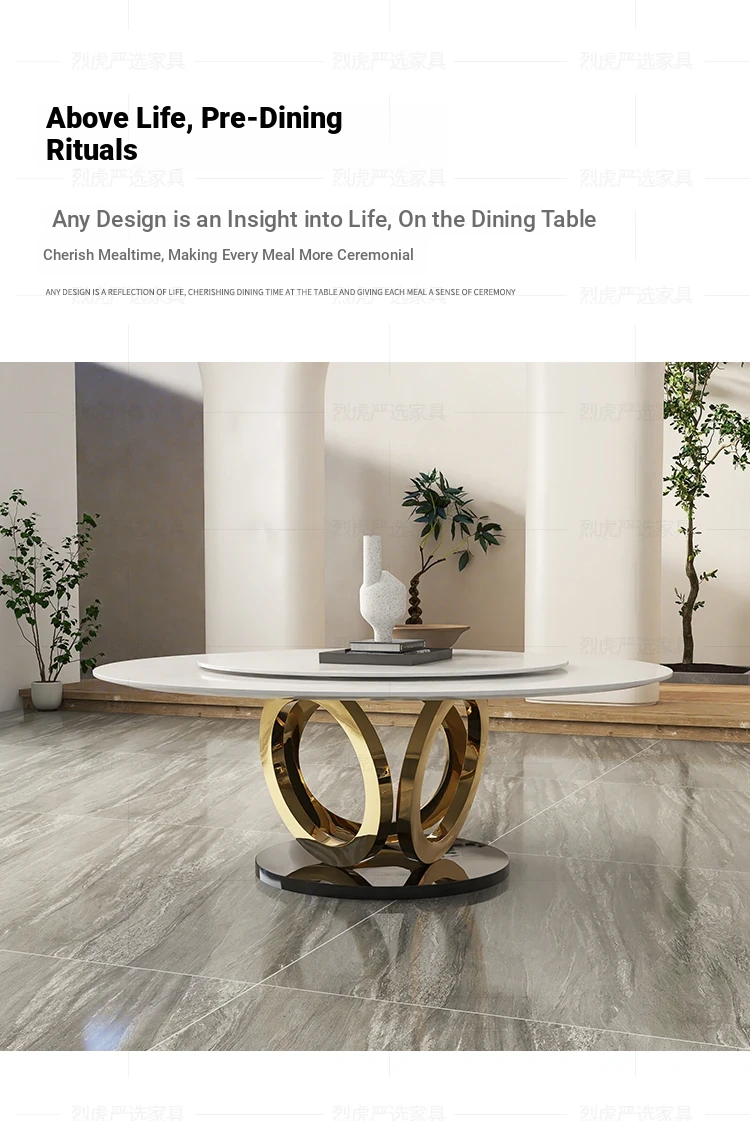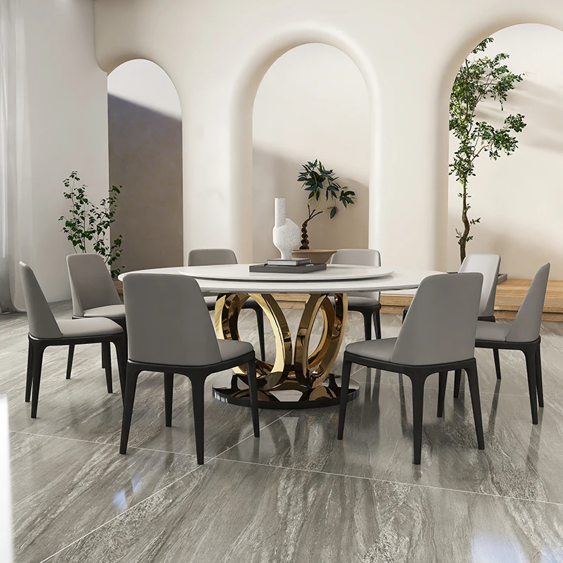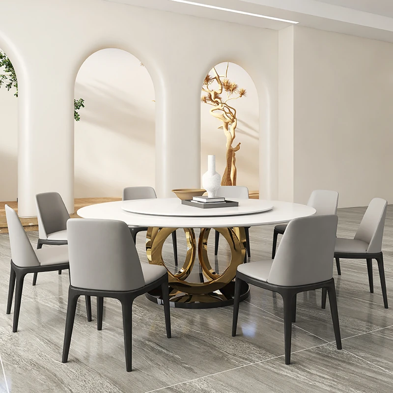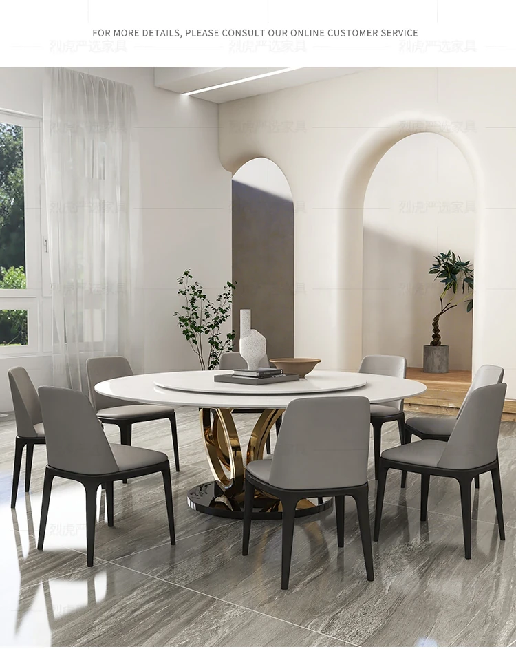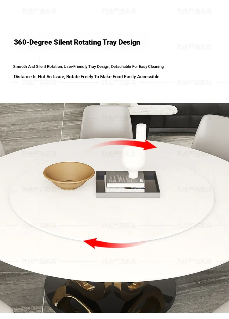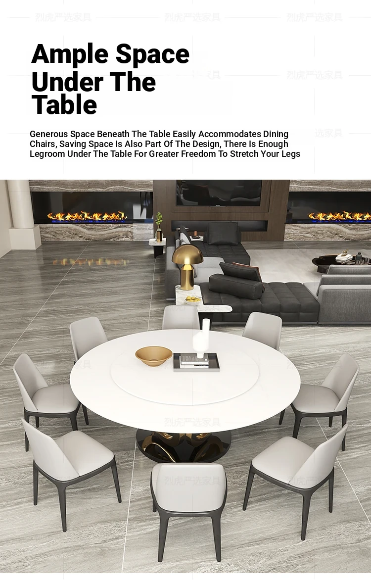 Modern Round Marble Dining Table with Lazy Susan - Stylish and Spacious Dining Set for Large Homes, Perfect for Family Meals and Entertaining.