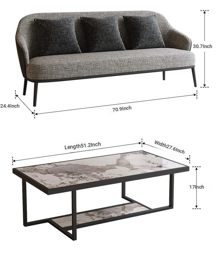 Rectangular coffee table: length 130 * width 70 * height 43 (Pandora rock plate)