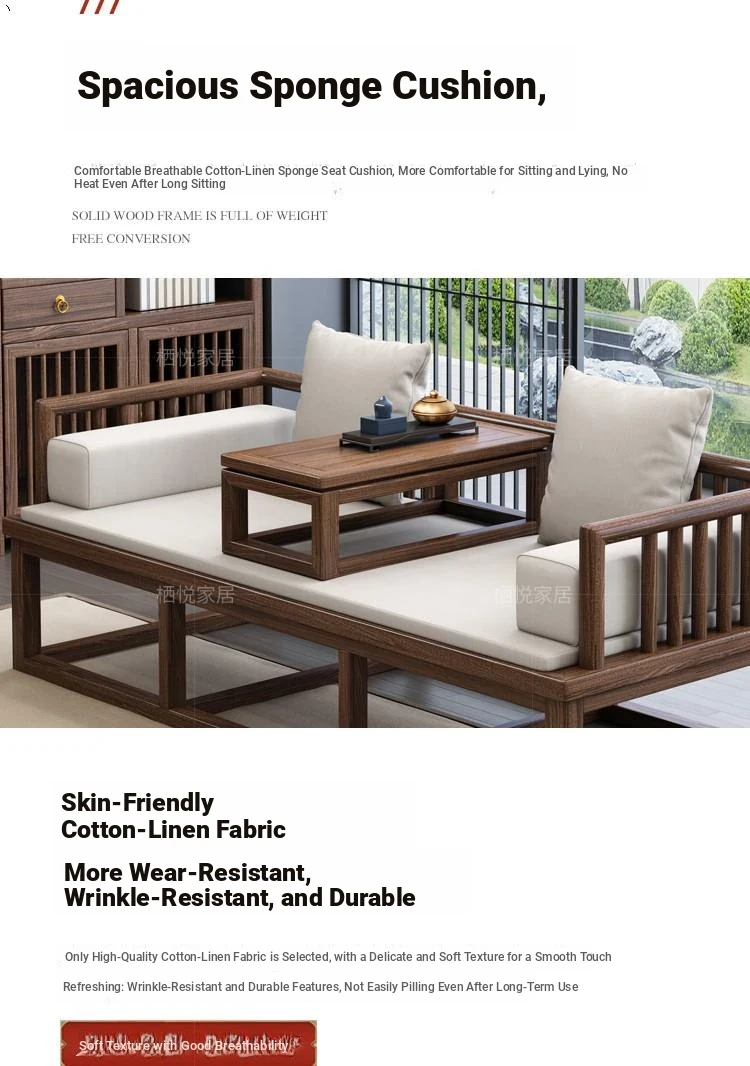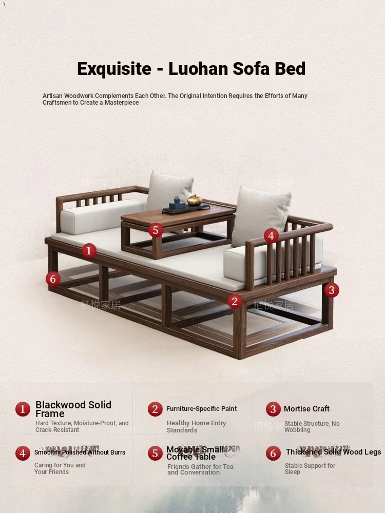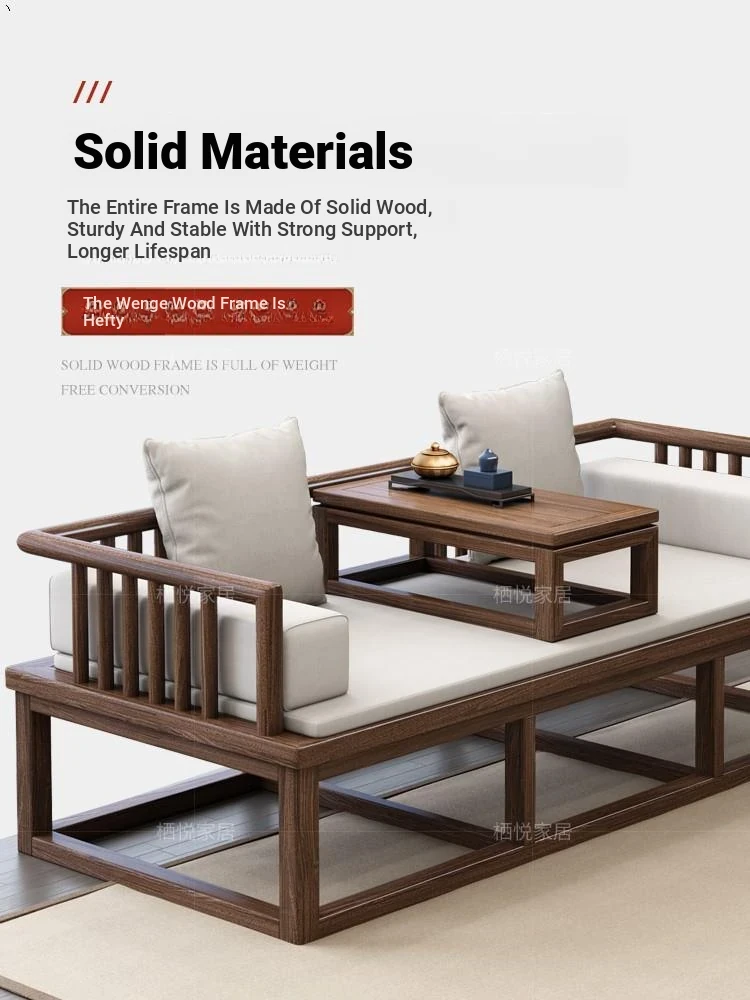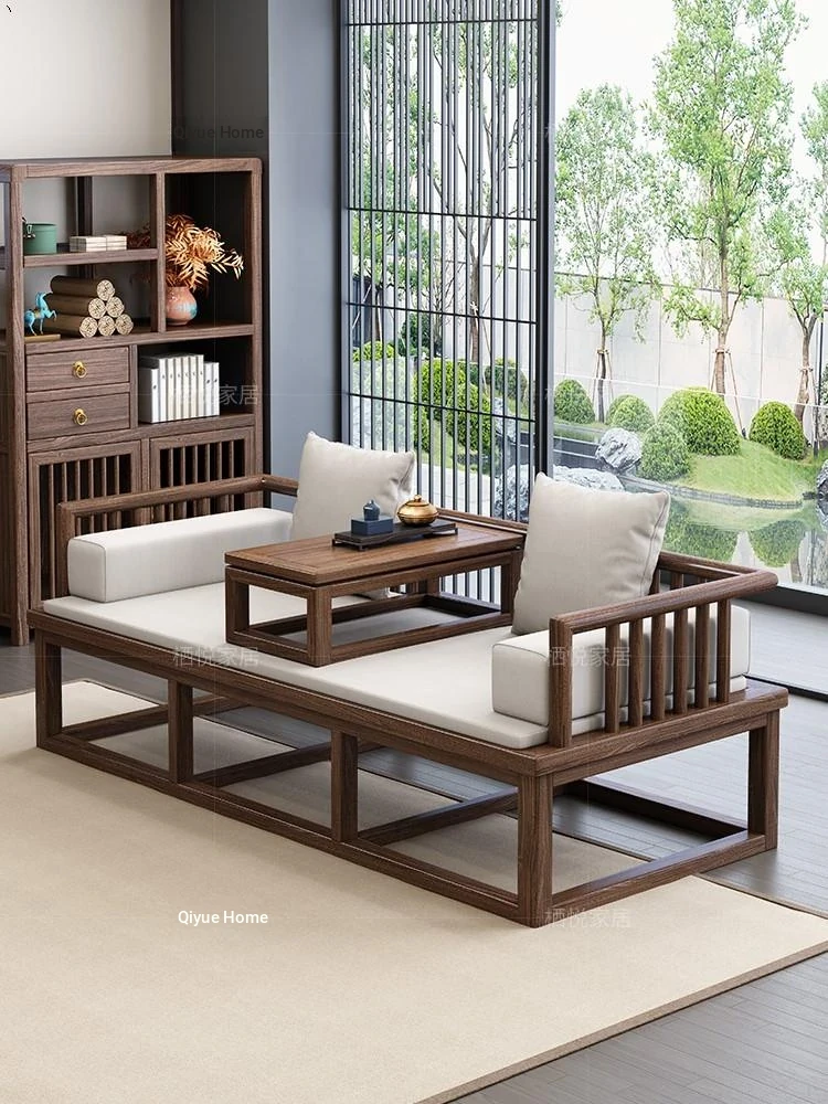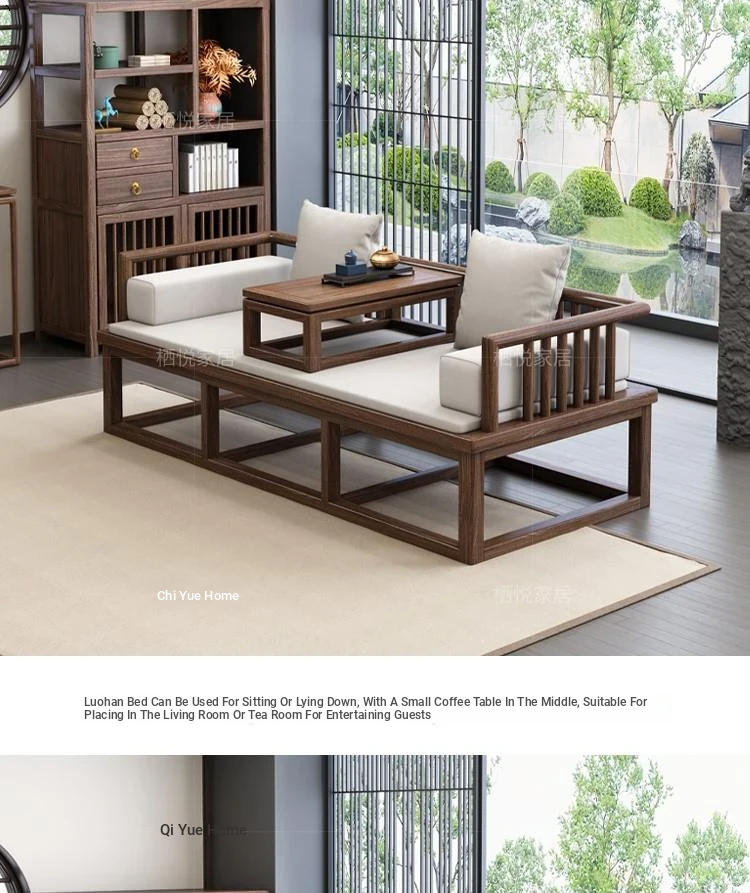 New Chinese Style Solid Wood Luohan Bed - Compact Sofa Bed for Small Living Rooms, Ming and Qing Dynasty Zen-Inspired Chaise Lounge and Recliner