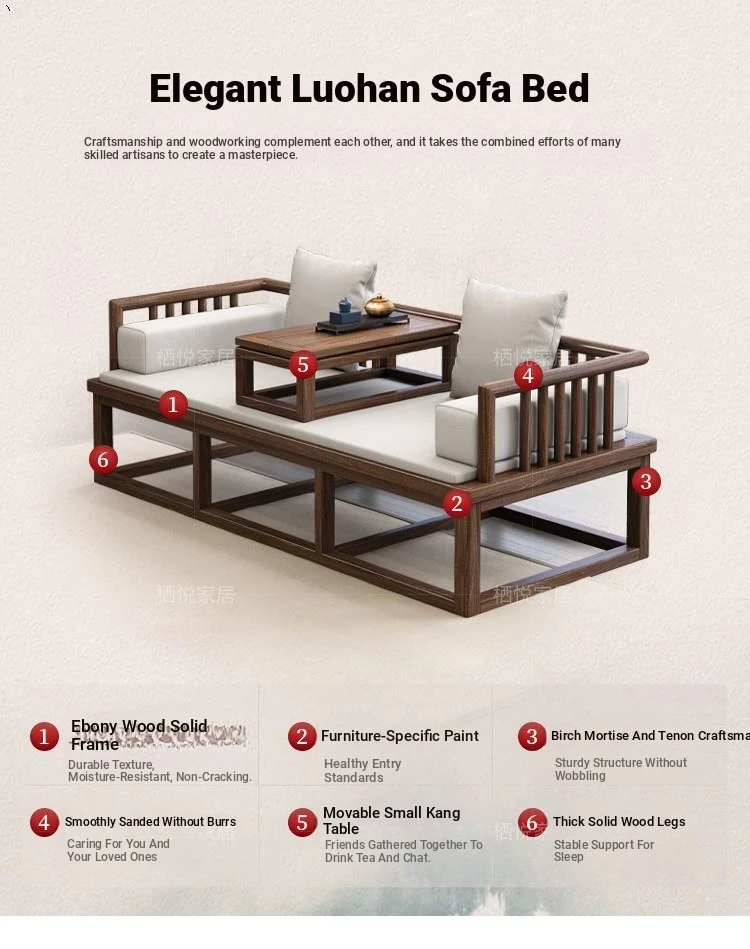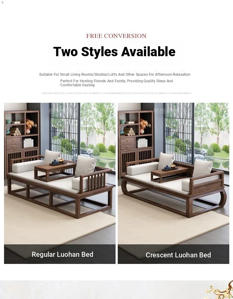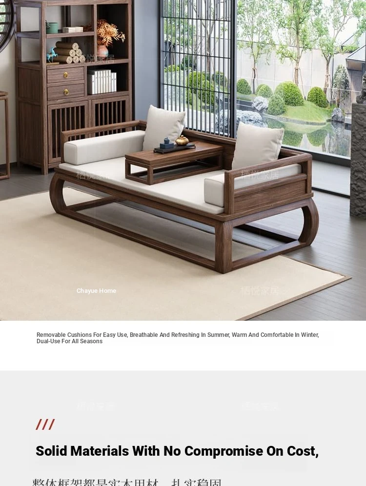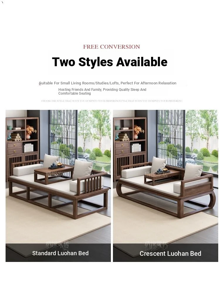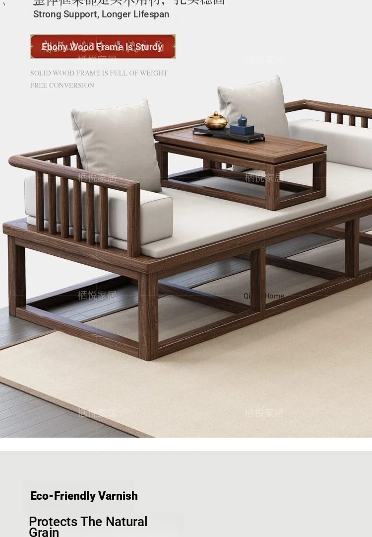 New Chinese Style Solid Wood Luohan Bed - Compact Sofa Bed for Small Living Rooms, Ming and Qing Dynasty Zen-Inspired Chaise Lounge and Recliner