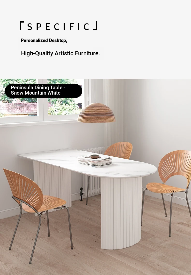 Nordic Pure White Rock Panel Dining Table - Artistic Solid Wood Design for Small Spaces, Marble Top, Wall-Mounted Study Desk, Designer Island Table, Perfect for Dining and Work!
