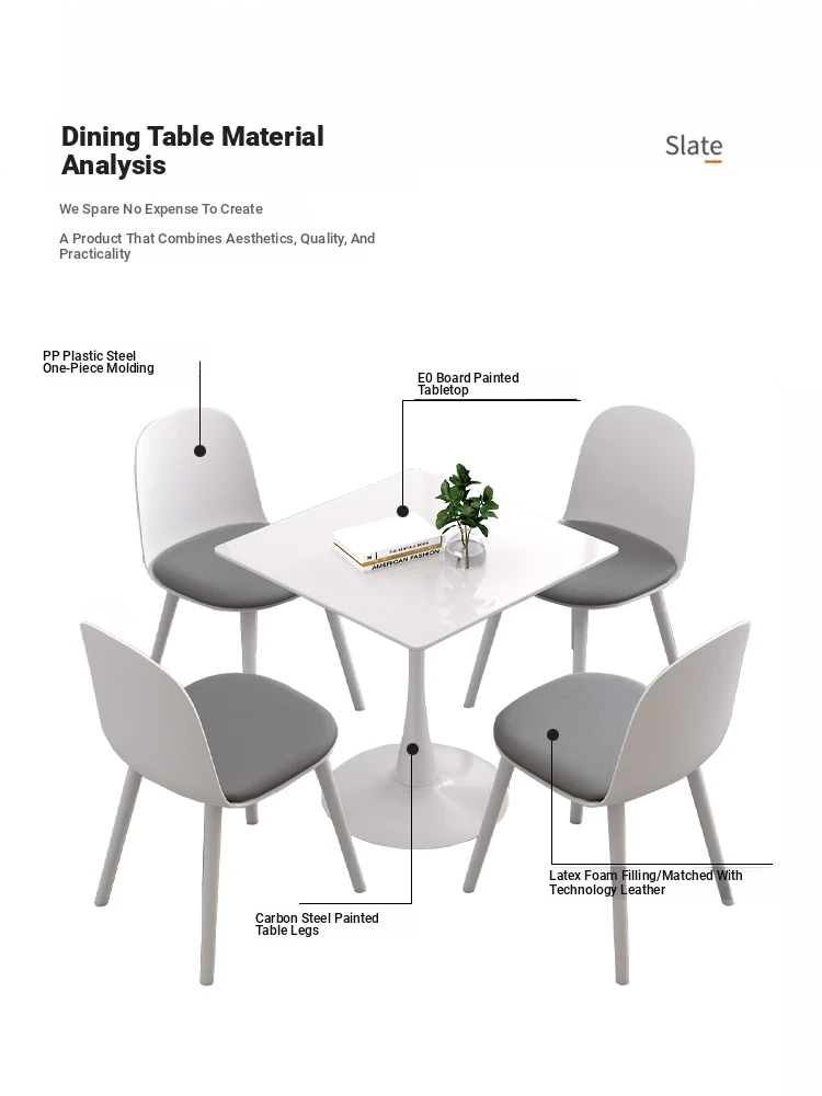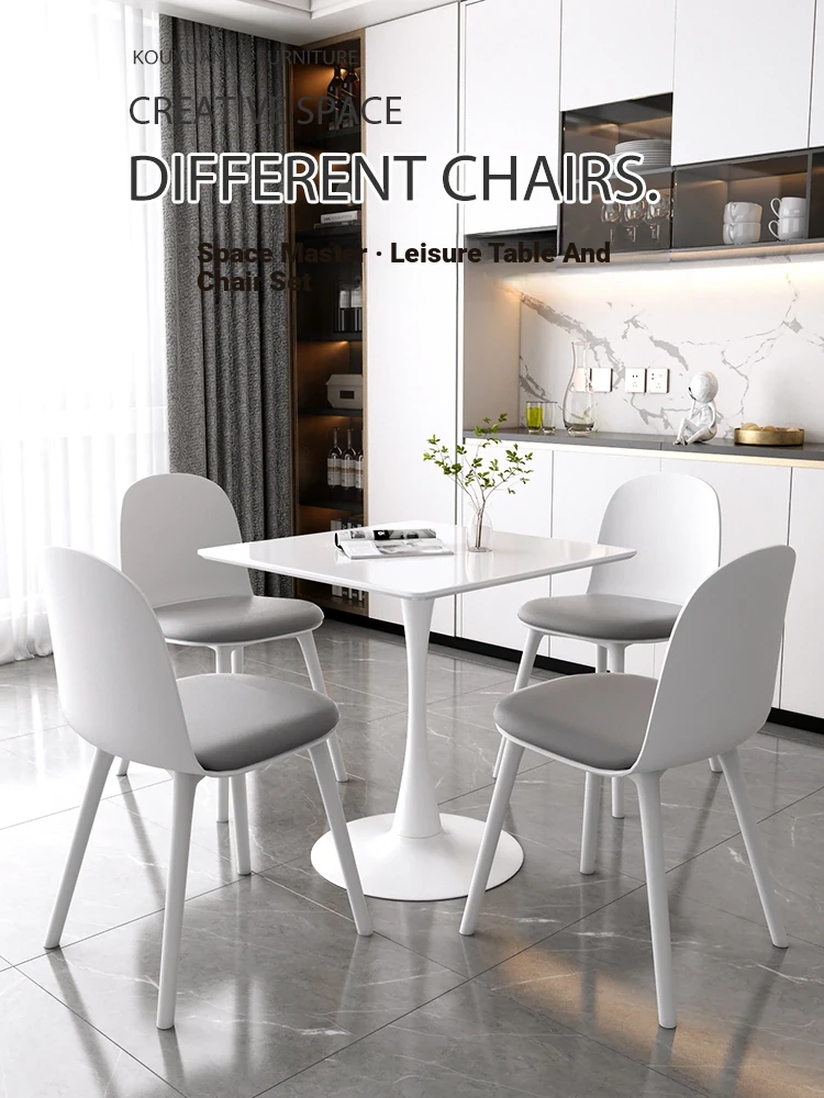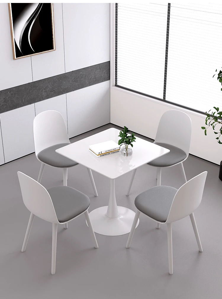 Nordic Square Dining Table Set for Small Spaces - Minimalist Casual Meeting Table with Four Chairs, Perfect for Home and Reception Areas