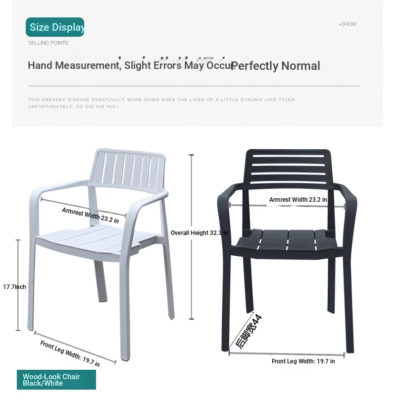 Nordic Style Plastic Chairs with Backrest - Durable and Stylish Outdoor Lounge Chairs in Thickened Black and White with Hollow Design, Stackable and Armrest Features for Home Use