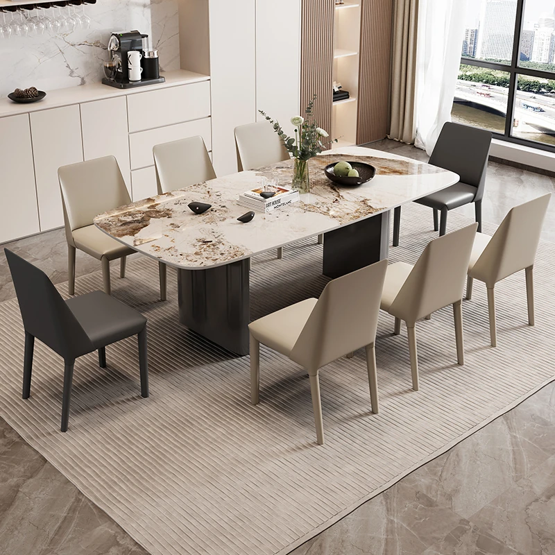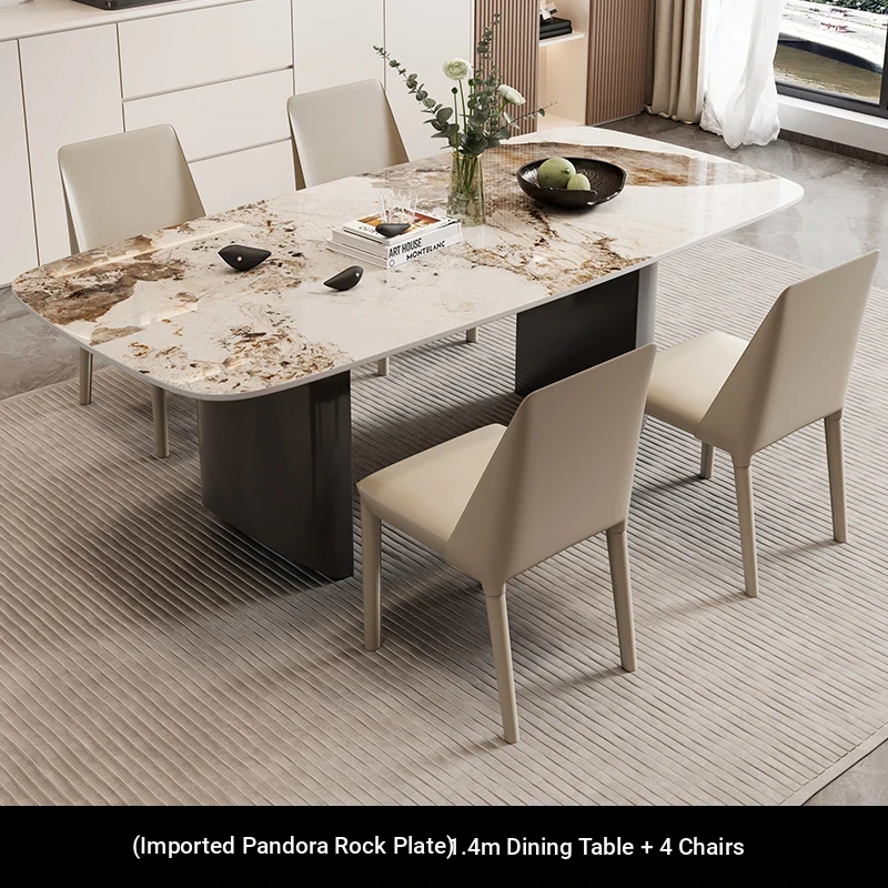 Pandora Light Luxury Italian Porcelain Dining Table Set - Modern Minimalist White Table and Chairs for Small Spaces, Perfect for Home Use
