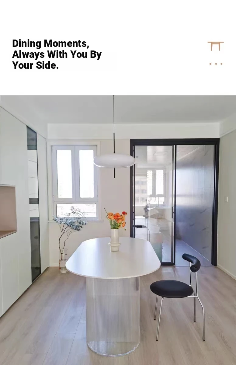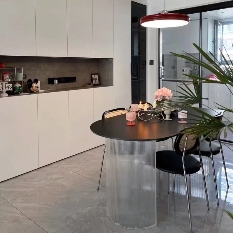 Premium Cream Acrylic Floating Rock Island Dining Table - Elegant Half-Round Oval Table for Small Homes