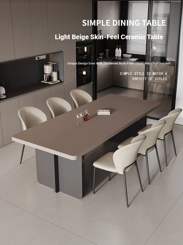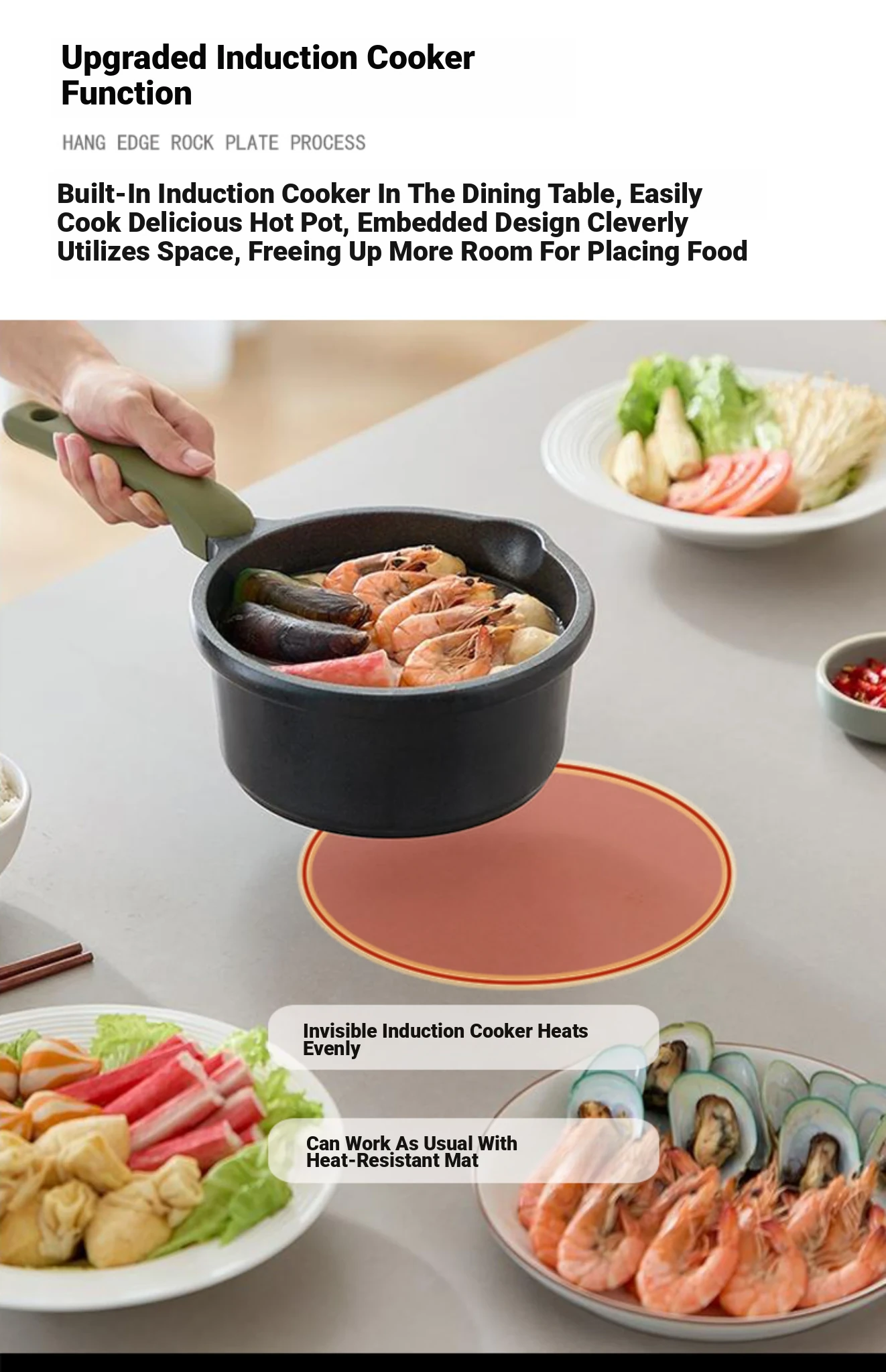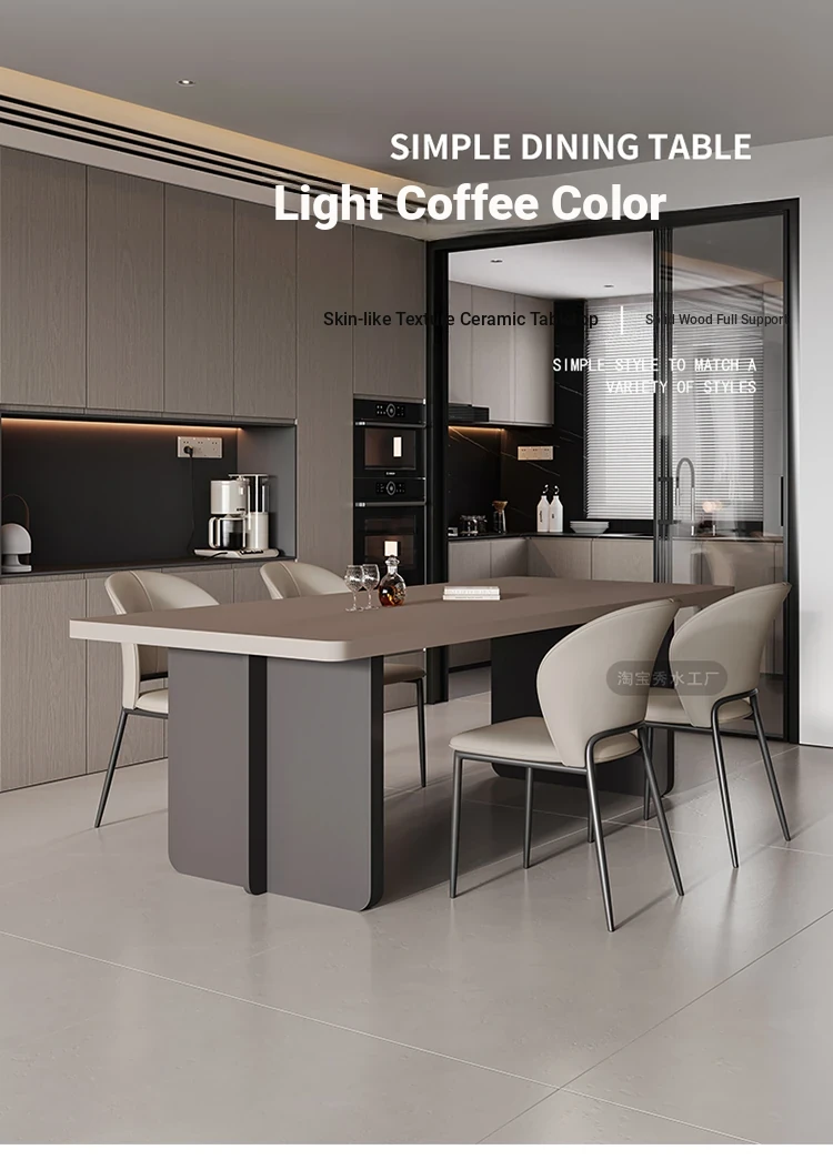 Premium Thick Brown Ceramic Dining Table with Hidden Induction Cooker – Italian Minimalist Design for Modern Living Rooms, Perfect for High-End Homes.