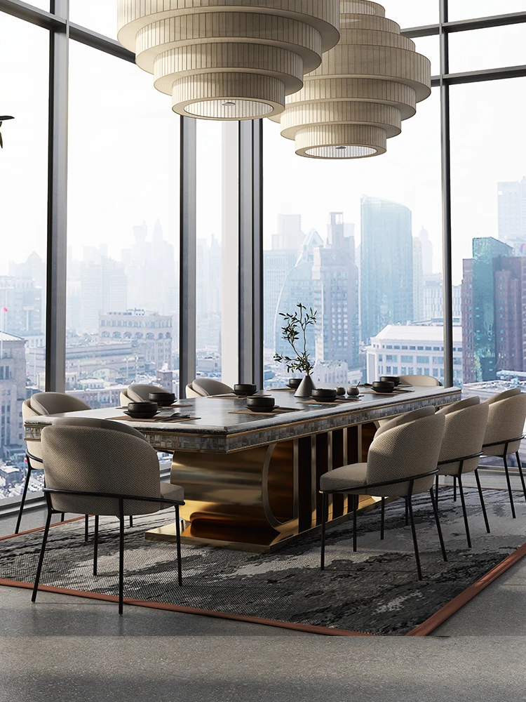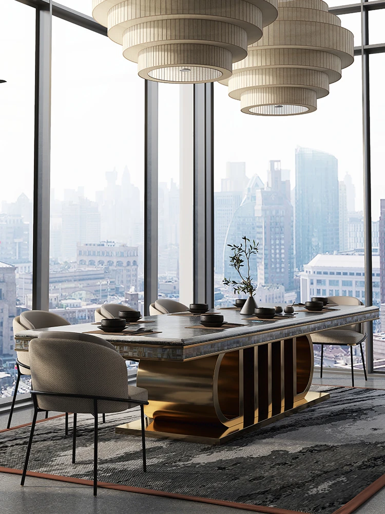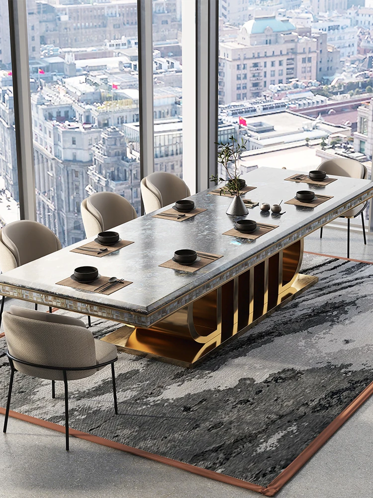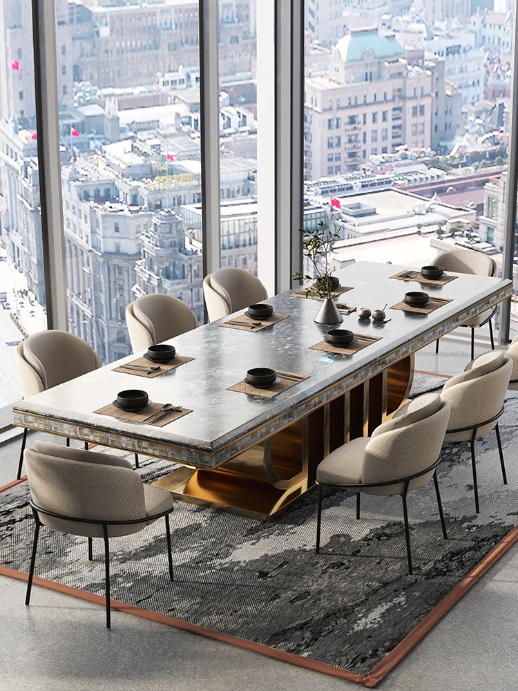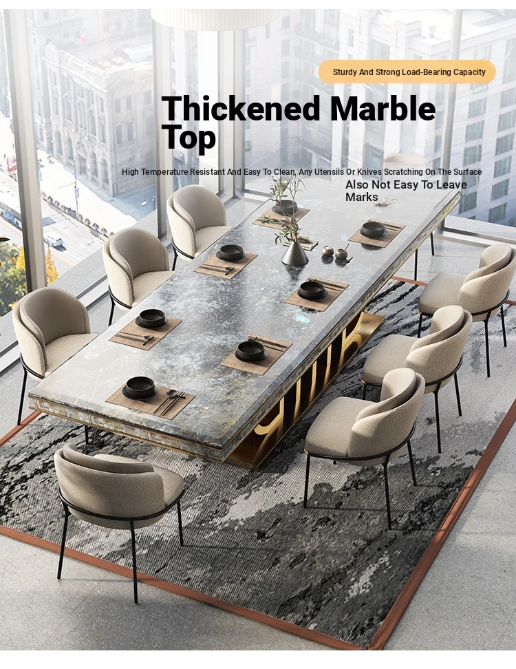 Rectangular Marble Dining Table Set – Luxury Villa Style for Home & Hotel Use, Elegant Dining Solution with Chairs for Restaurants and Clubs