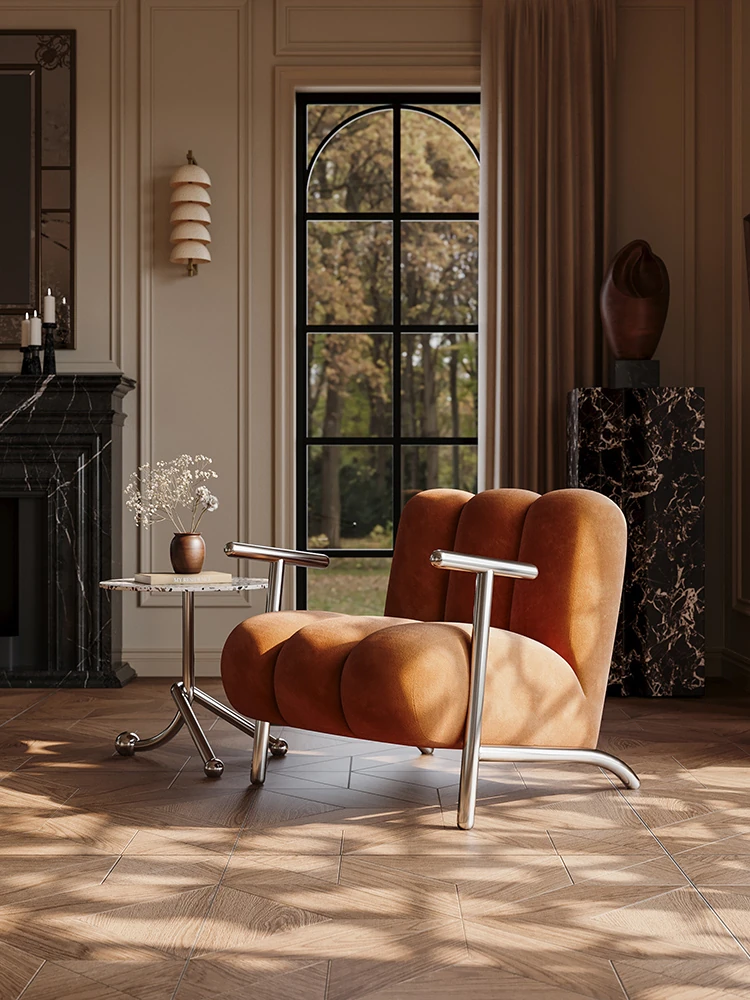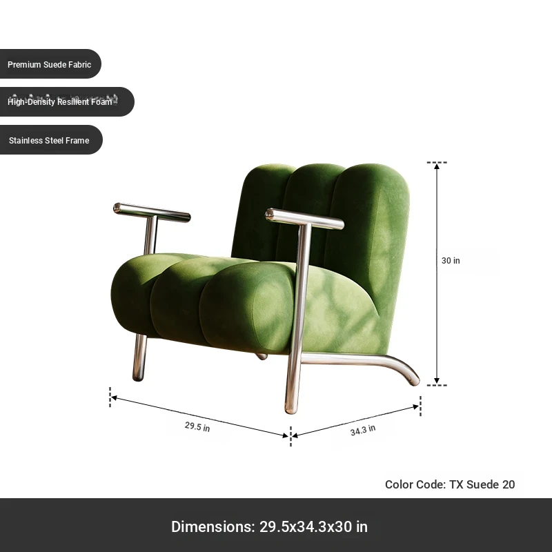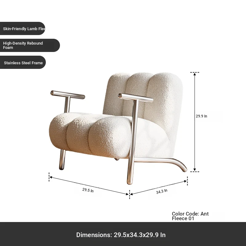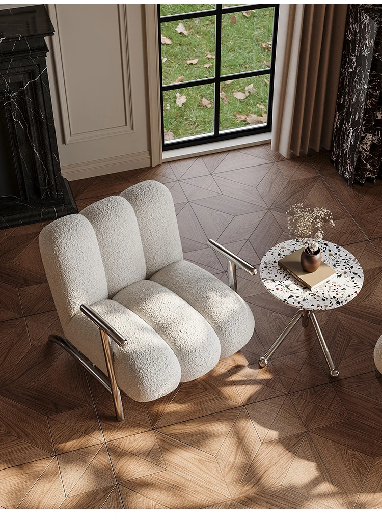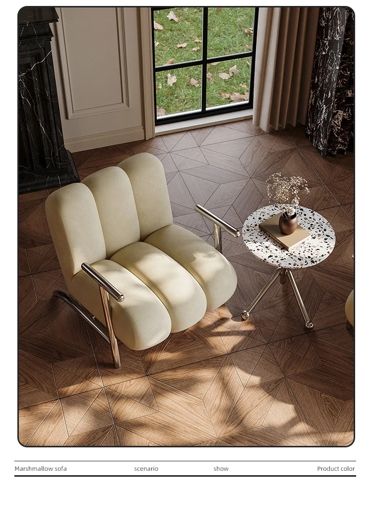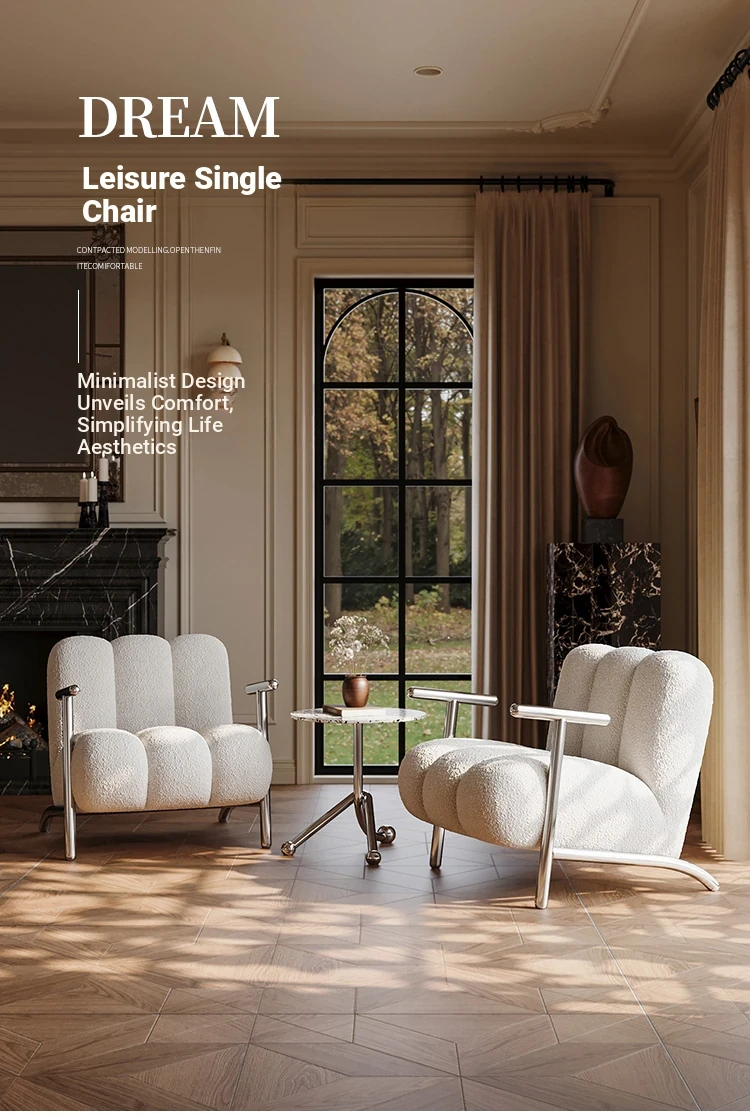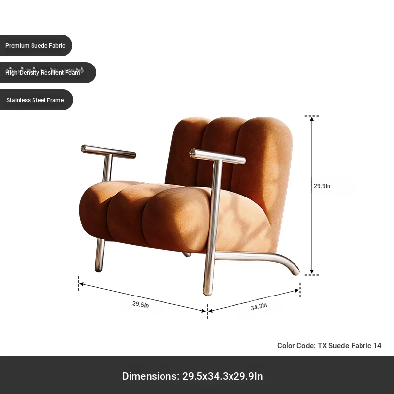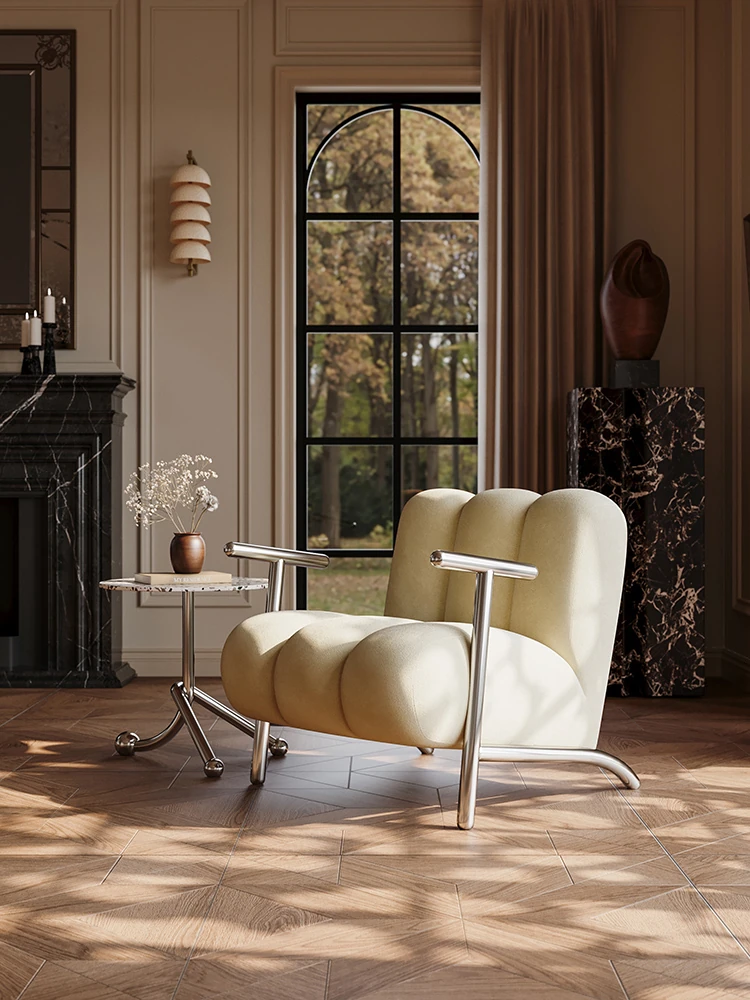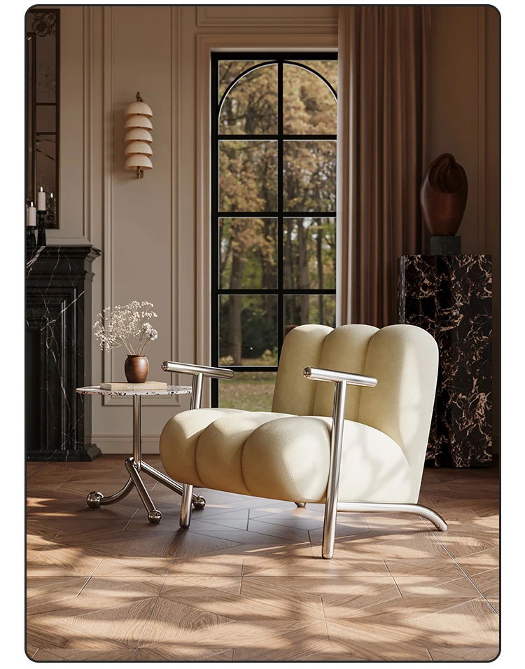 Rustic Wabi-Sabi Style Single Sofa Chair - Designer Creative Armchair for Living Room, Ideal for Boutique Hotels and Beauty Salons, Featuring Durable Stainless Steel Frame for Ultimate Relaxation.