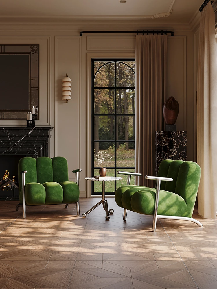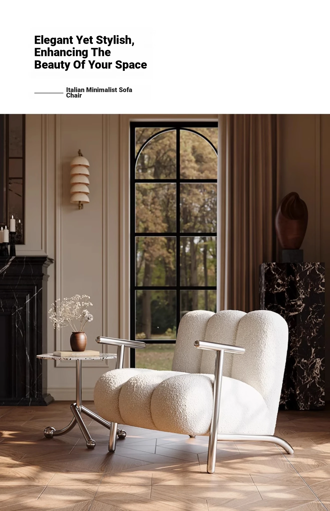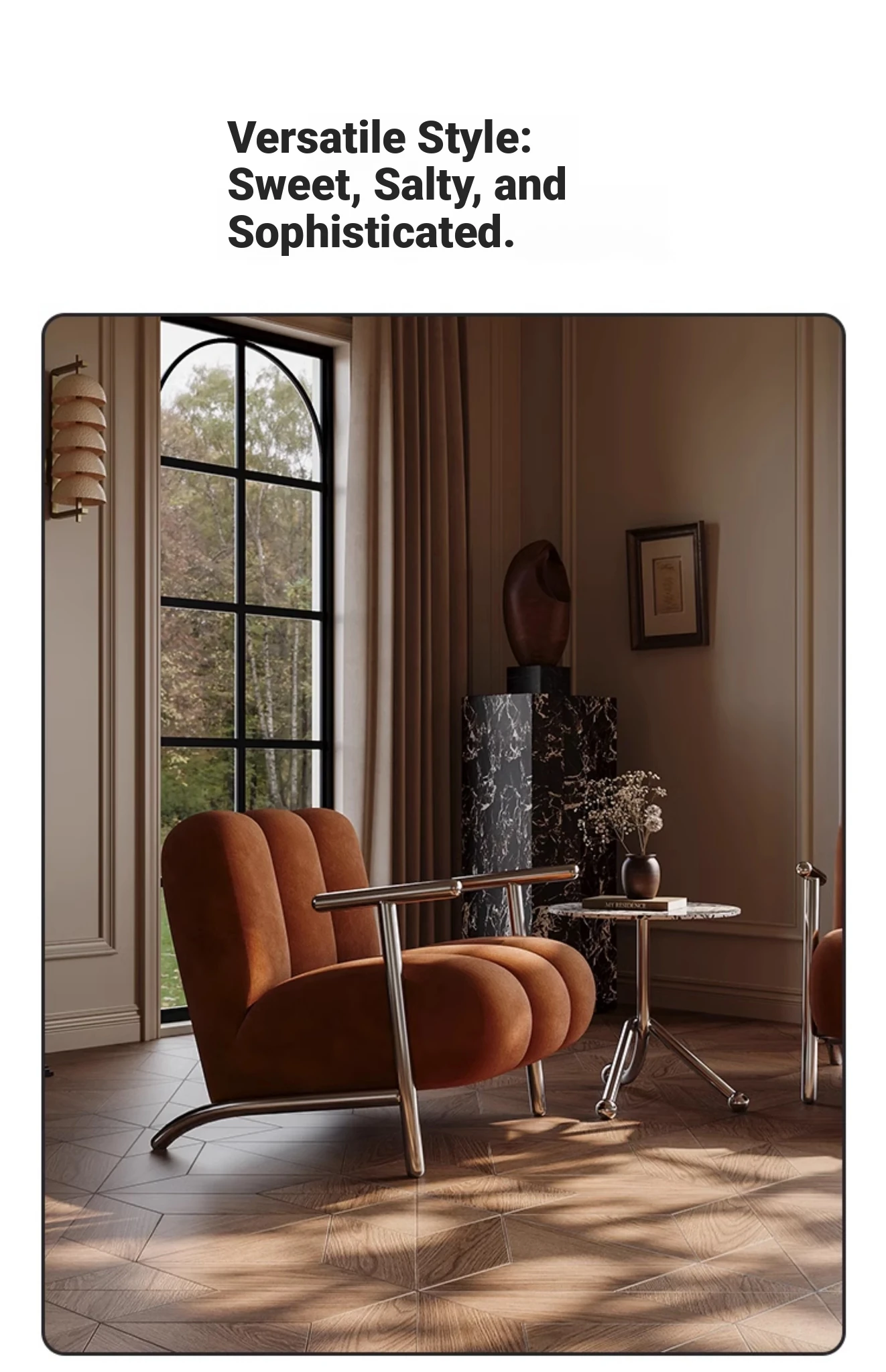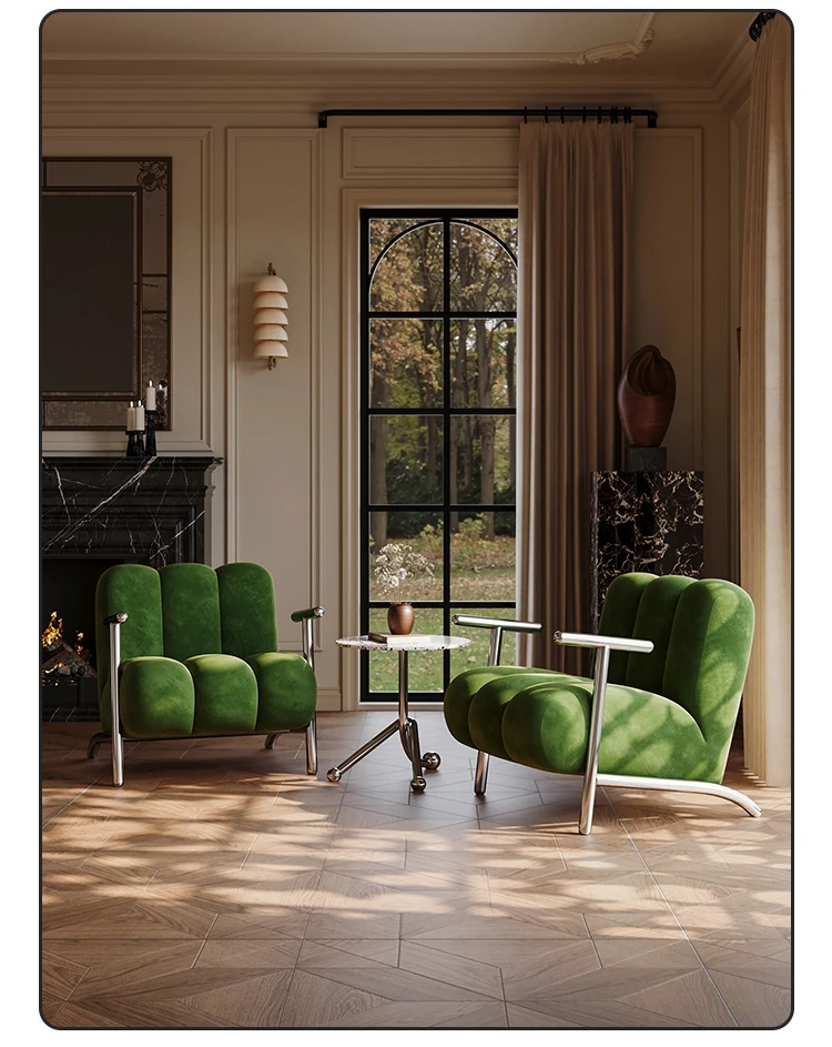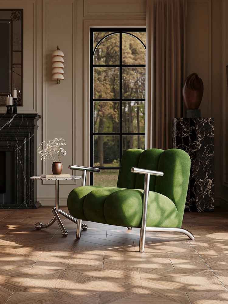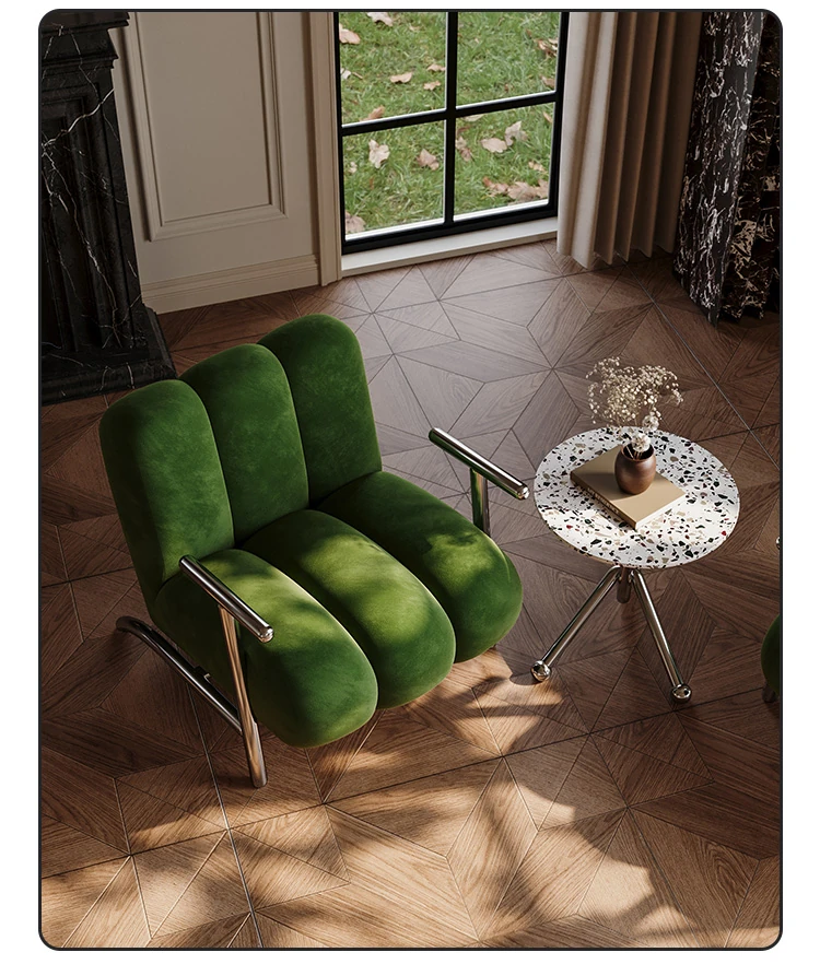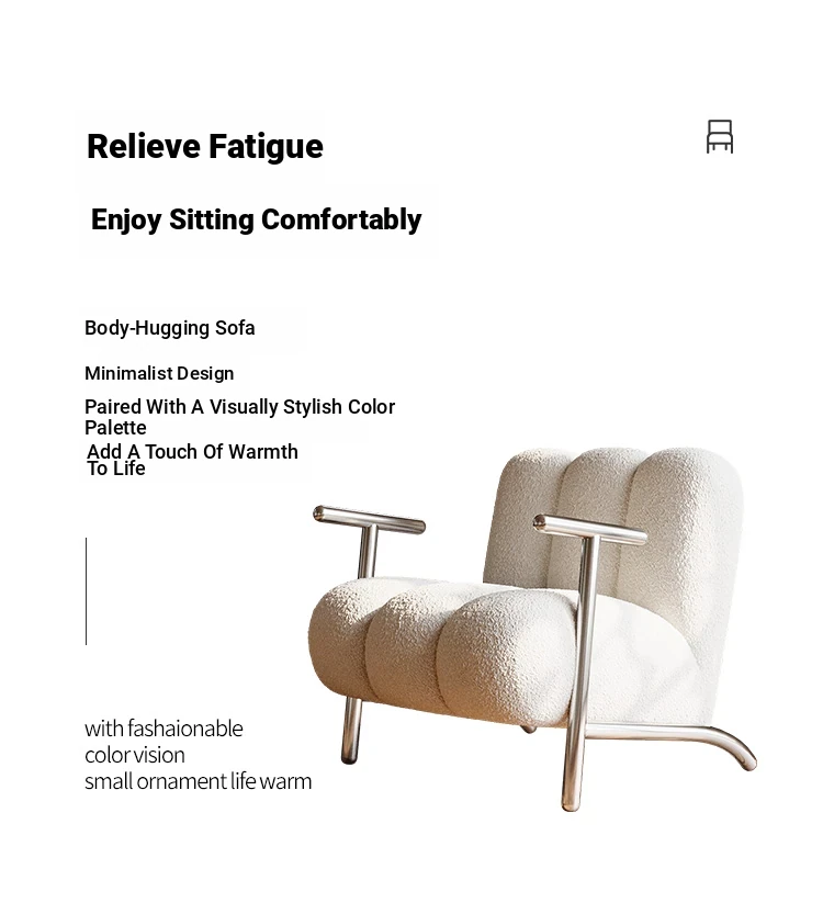 Rustic Wabi-Sabi Style Single Sofa Chair - Designer Creative Armchair for Living Room, Ideal for Boutique Hotels and Beauty Salons, Featuring Durable Stainless Steel Frame for Ultimate Relaxation.