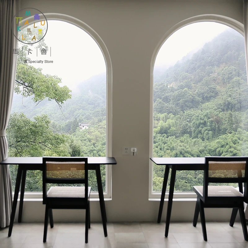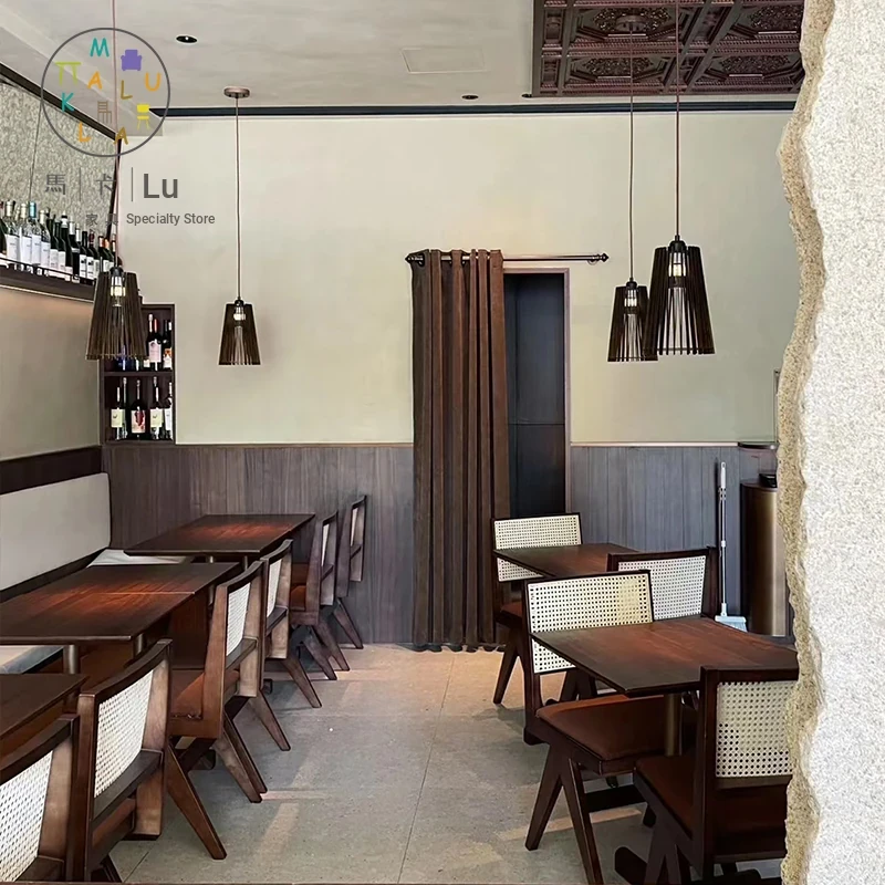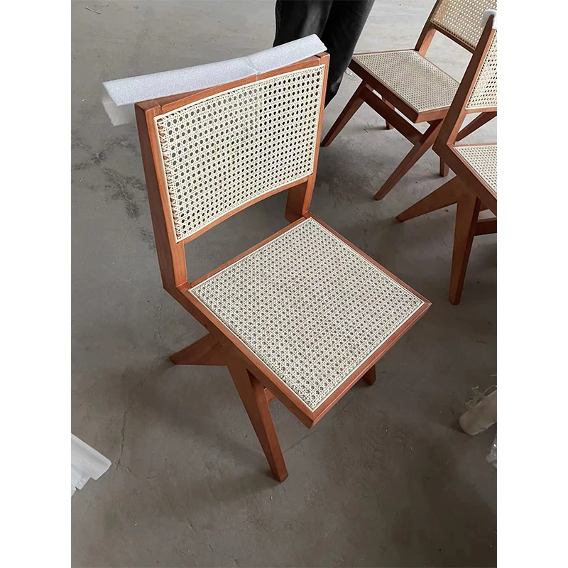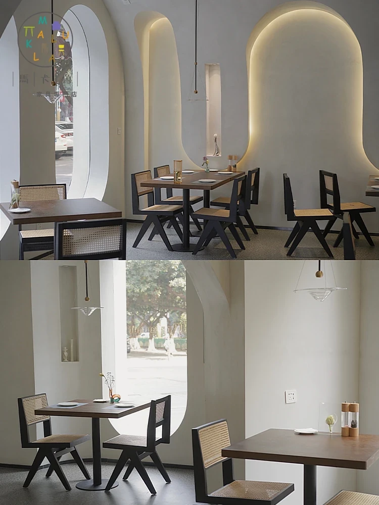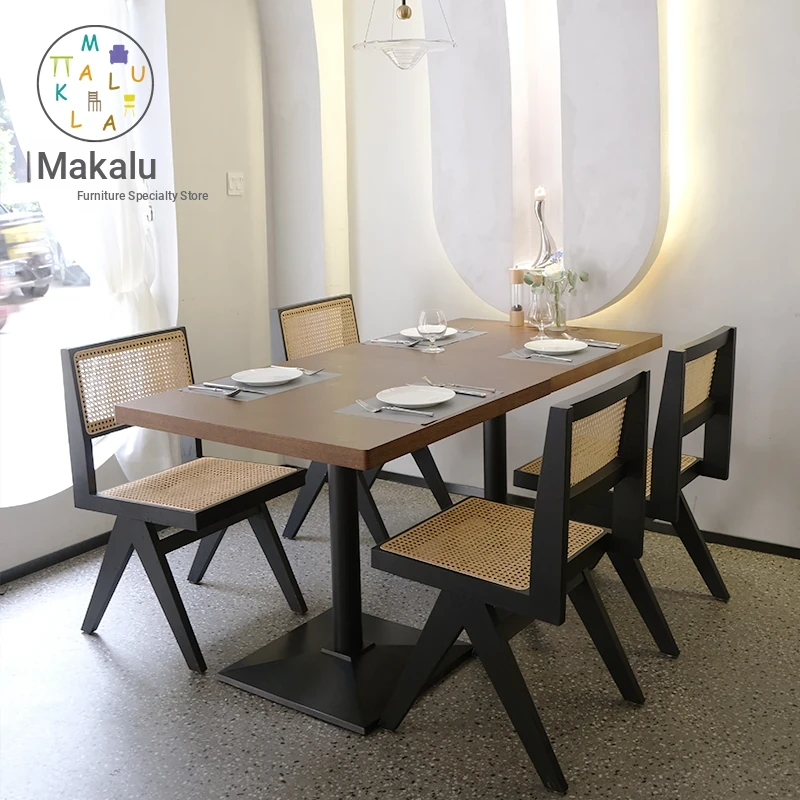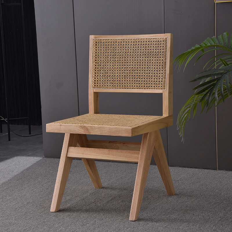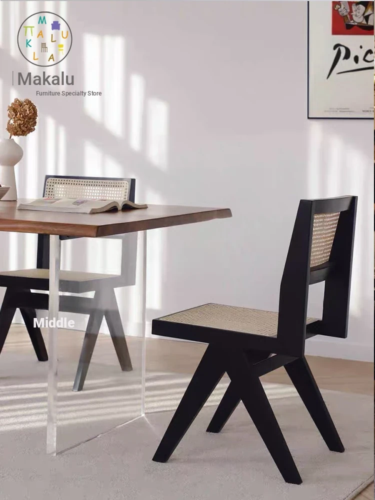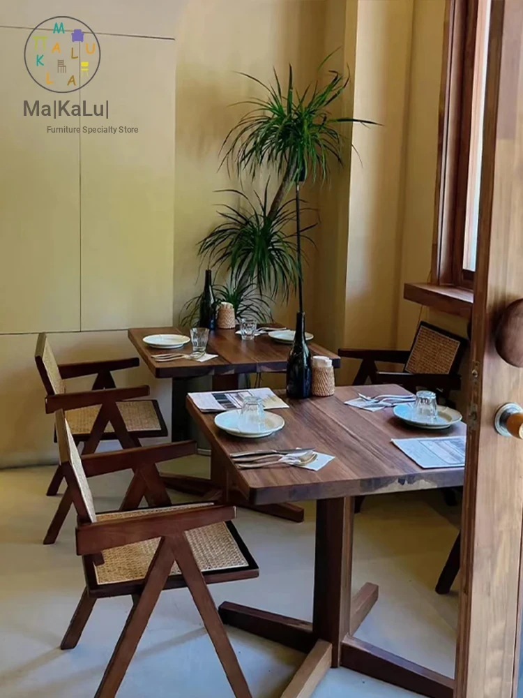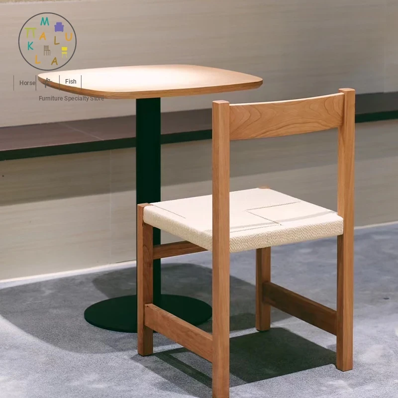 Scandinavian Design Rattan-Woven Solid Wood Dining Chair - Perfect for Cafes, Guesthouses, and Trendy Restaurants - Stylish Dining Set Combination