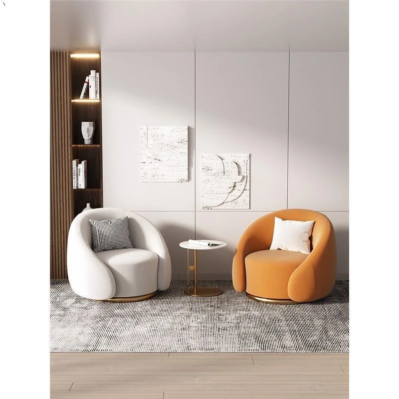 Stylish Minimalist Designer Lounge Chair - Nordic Fabric Lazy Sofa Chair with Rotating Feature for Living Room - Perfect for Relaxation and Comfort!