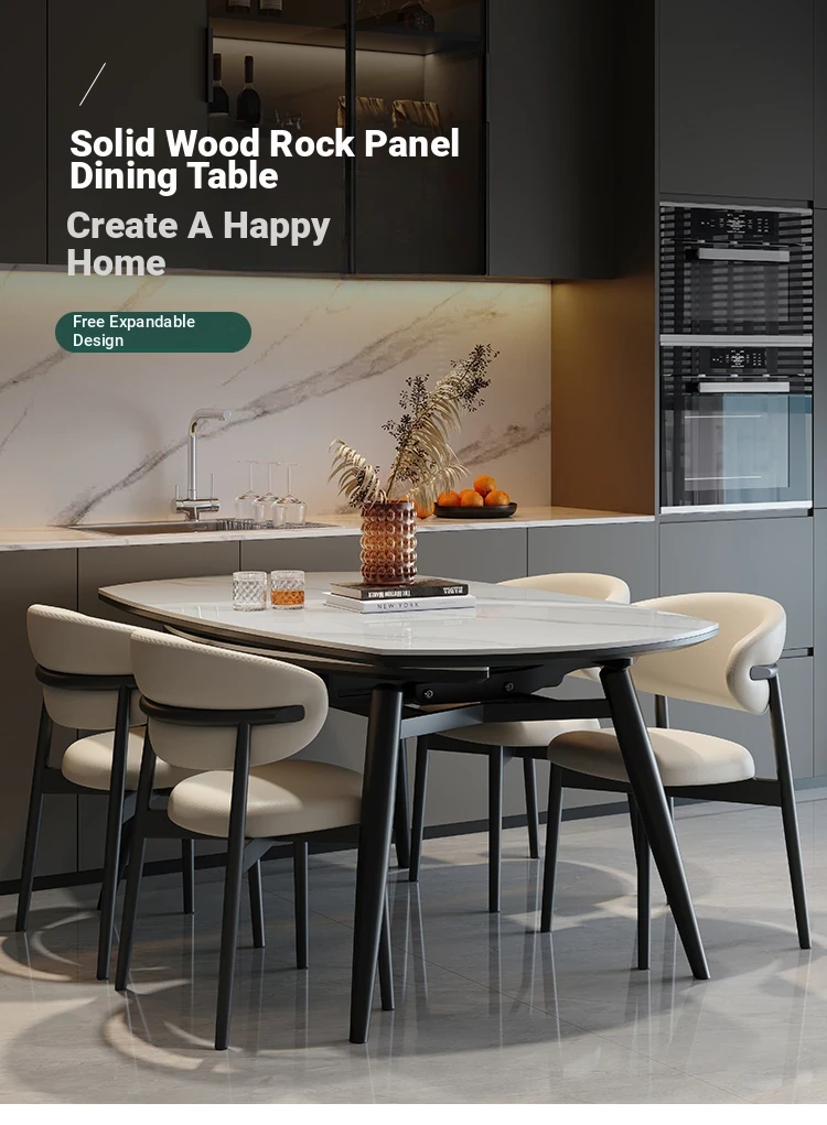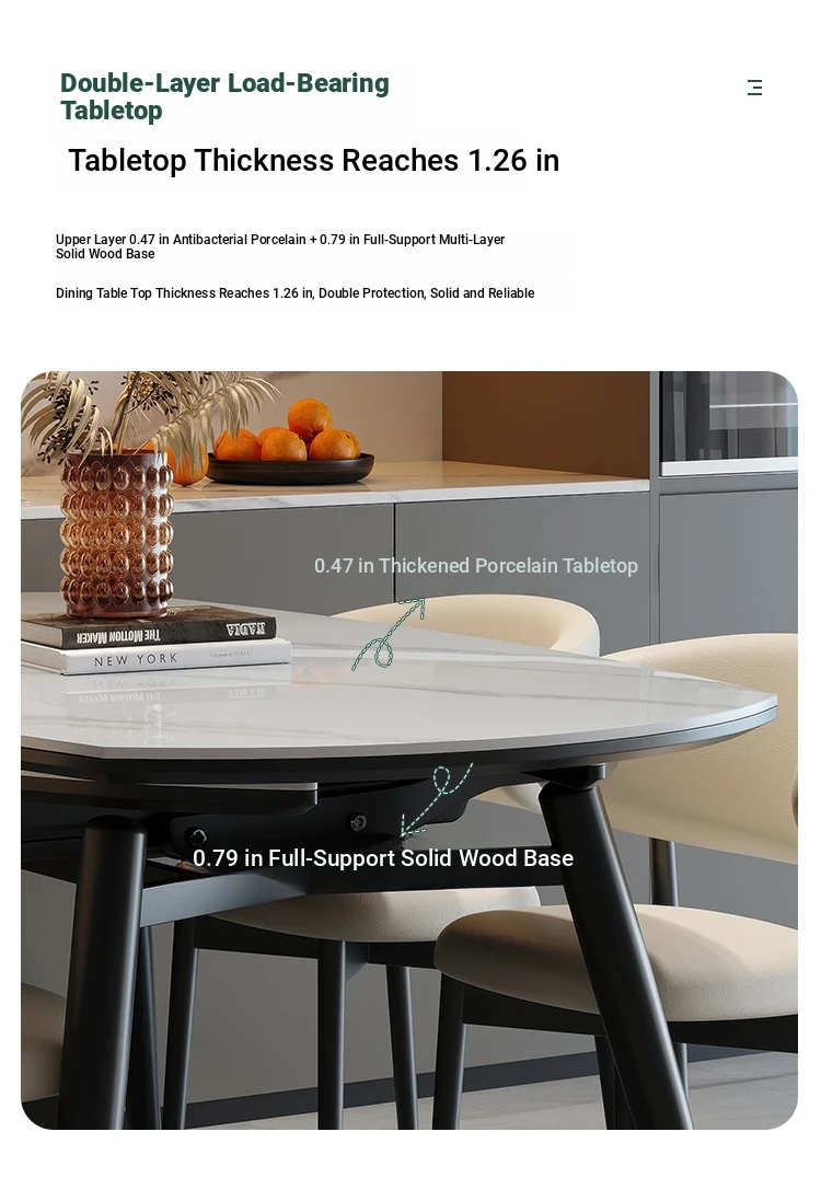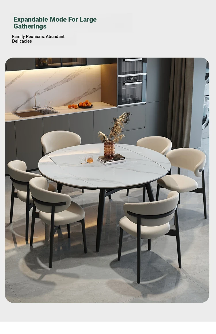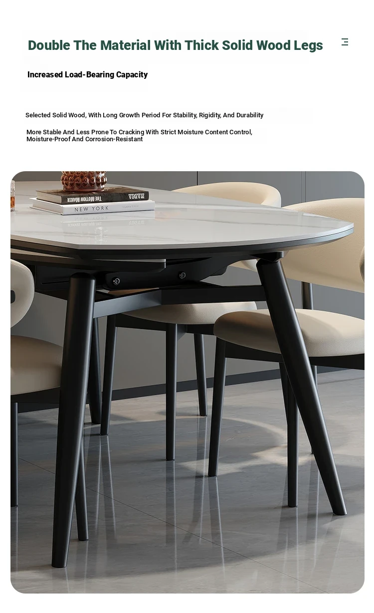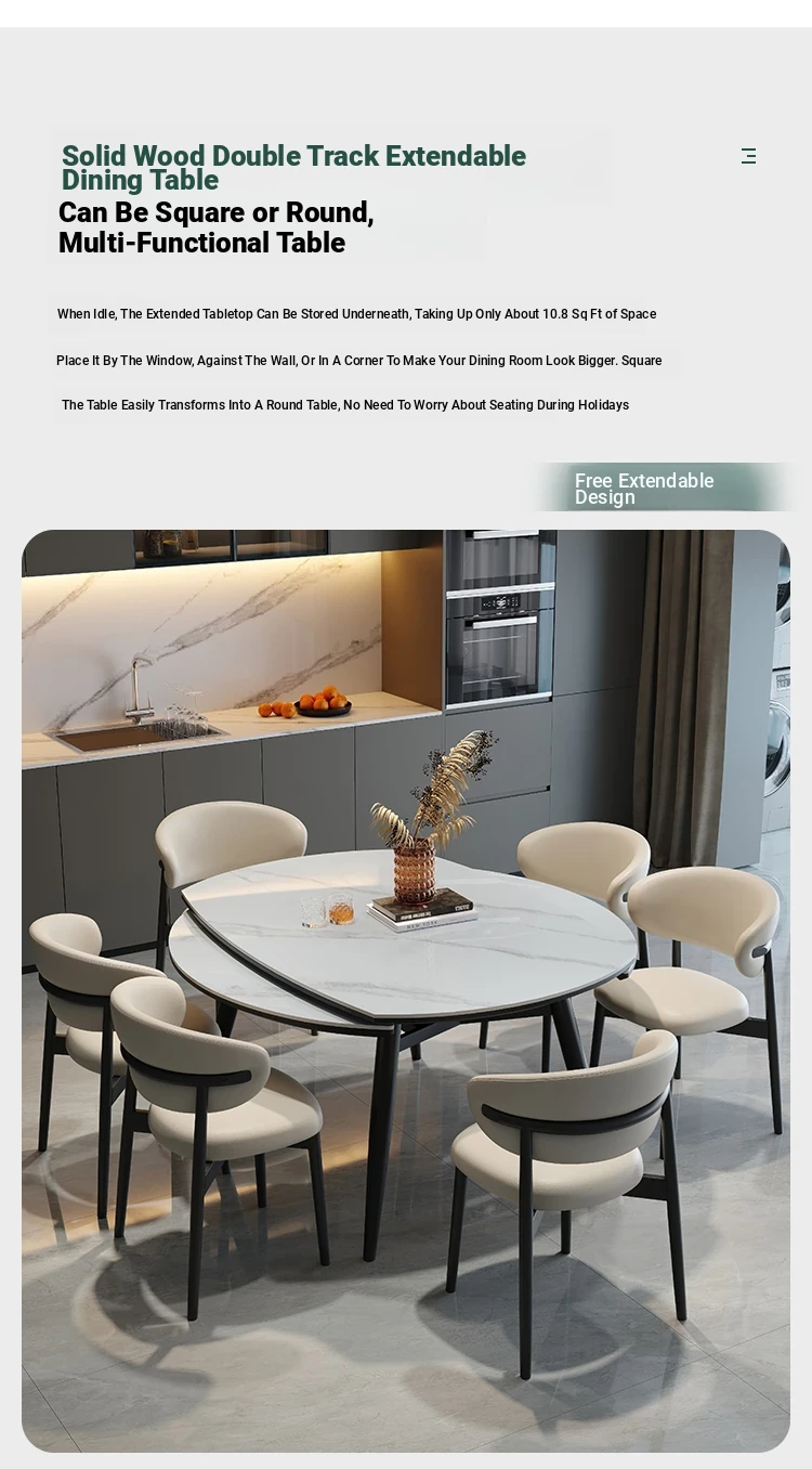 Versatile Solid Wood Dining Table – Expandable Round & Square Design, Crafted from Ash Wood, Italian Minimalist Style, Foldable for Space-Saving Dining Solutions