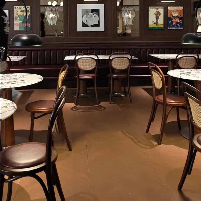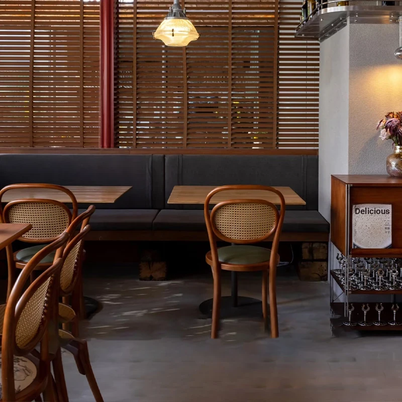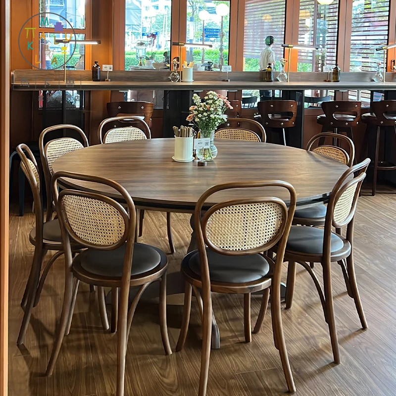 Vintage Rattan Dining Chair with Solid Wood Frame - French Style Backrest for Bar, Café, and Western Restaurant Dining Set