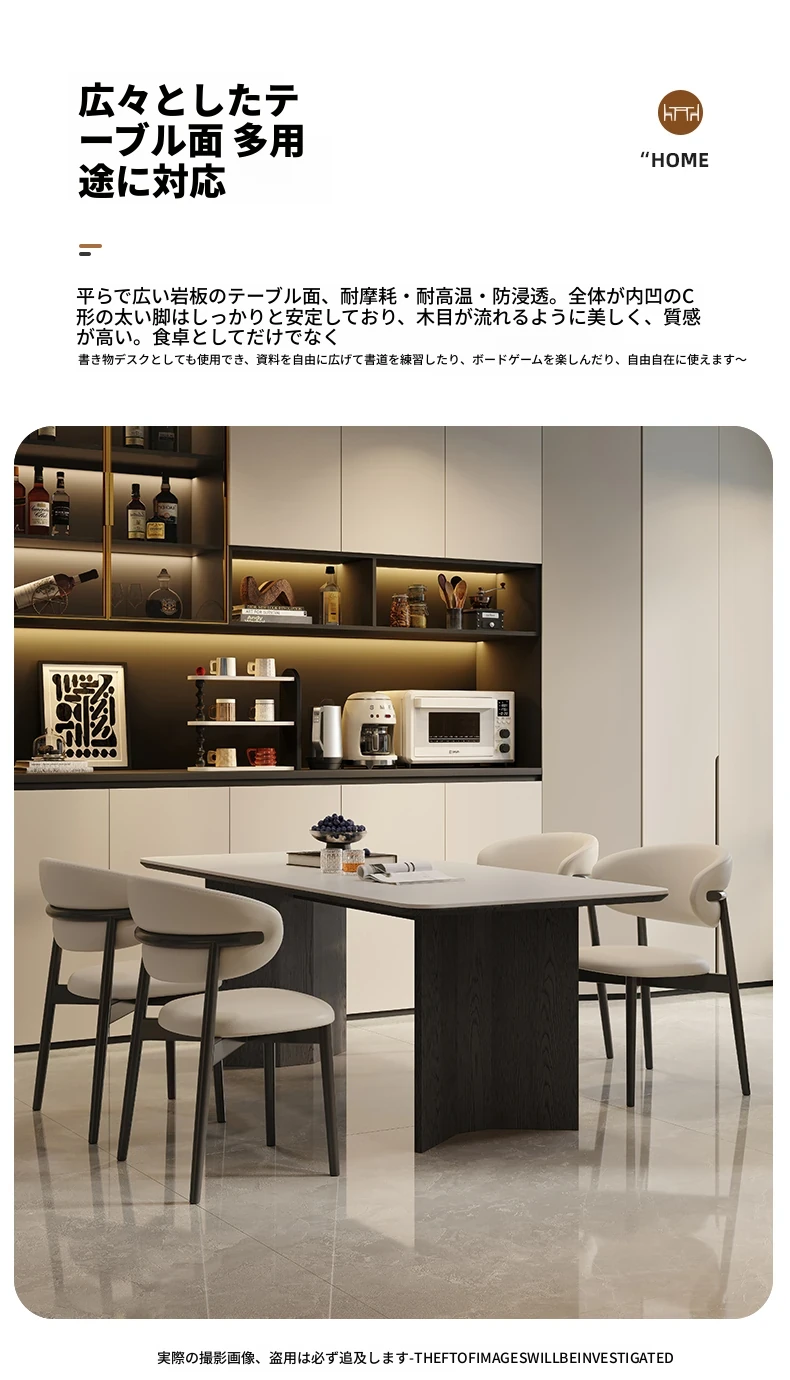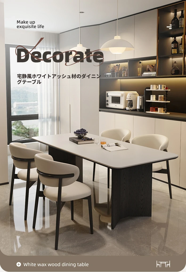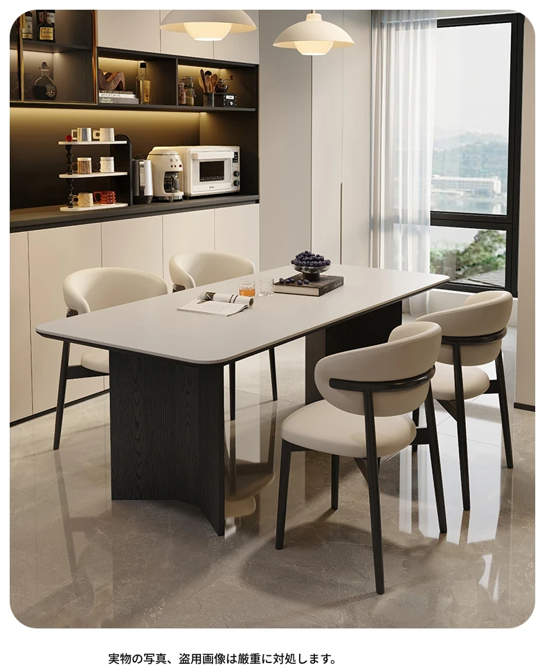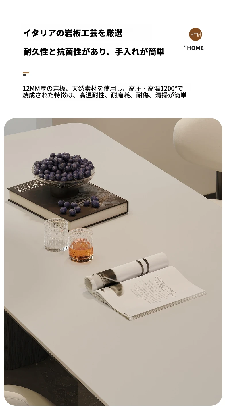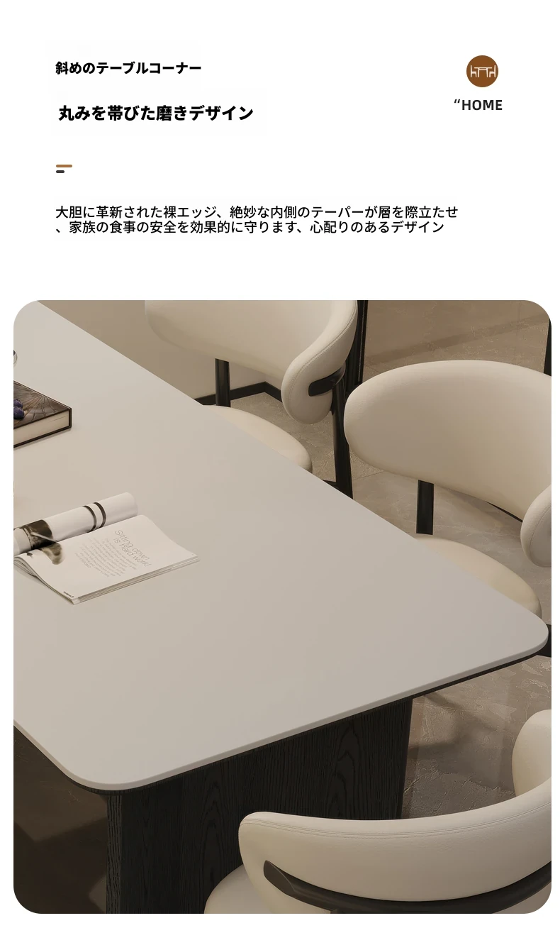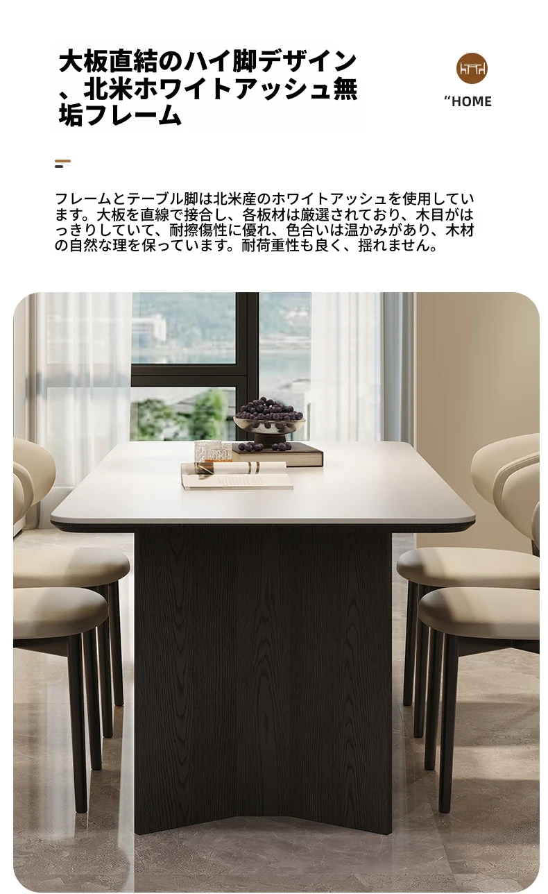 2025新作!洗練された高級感のある岩板ダイニングテーブル、現代的でシンプルなフレンチスタイル、小さなスペースにもぴったりのホワイトアッシュ材使用。おしゃれな食卓を演出し、毎日の食事を特別なひとときに!