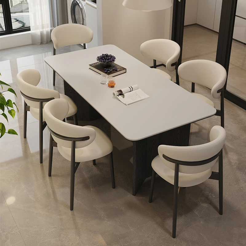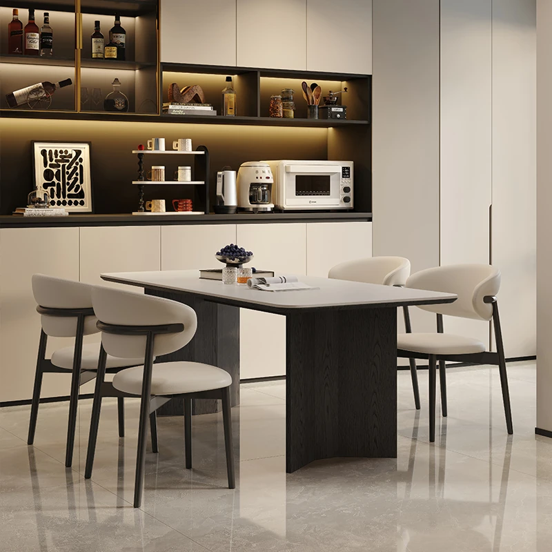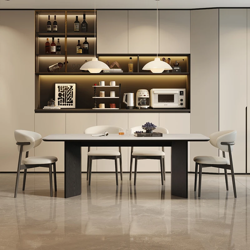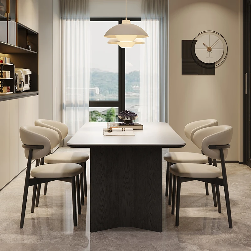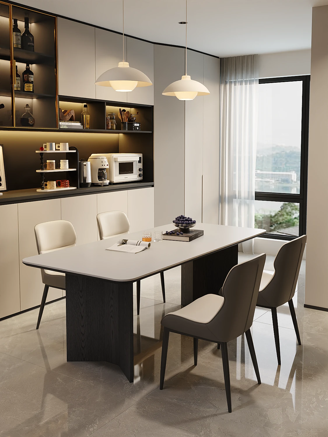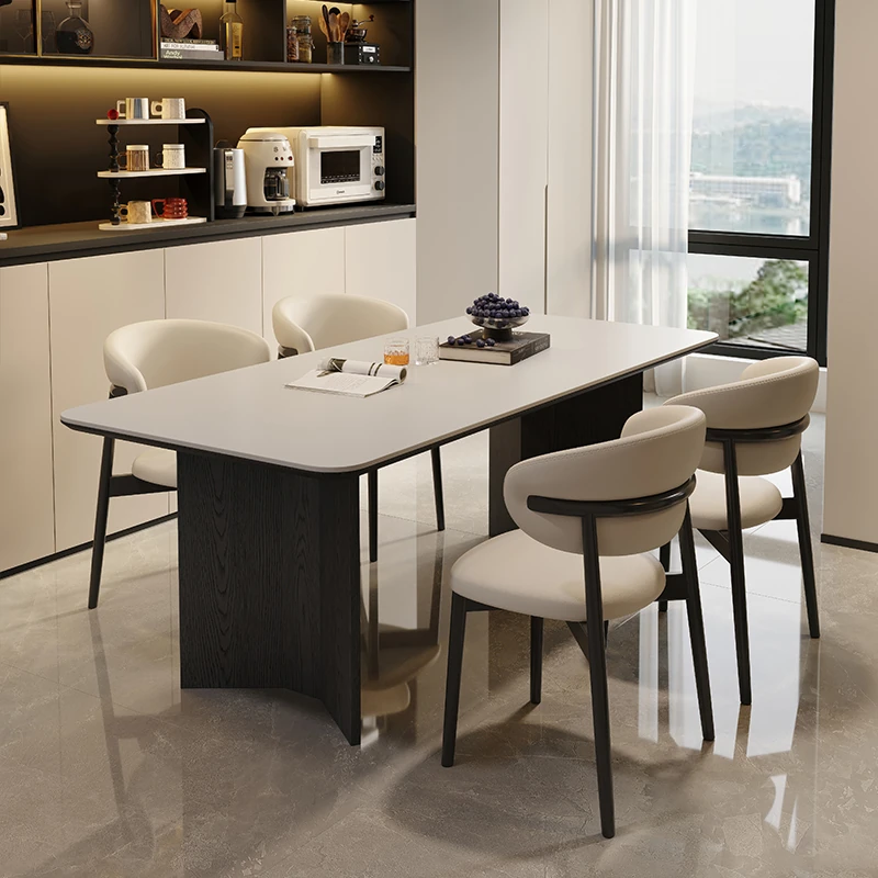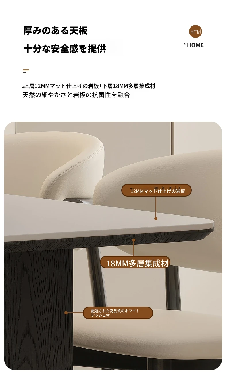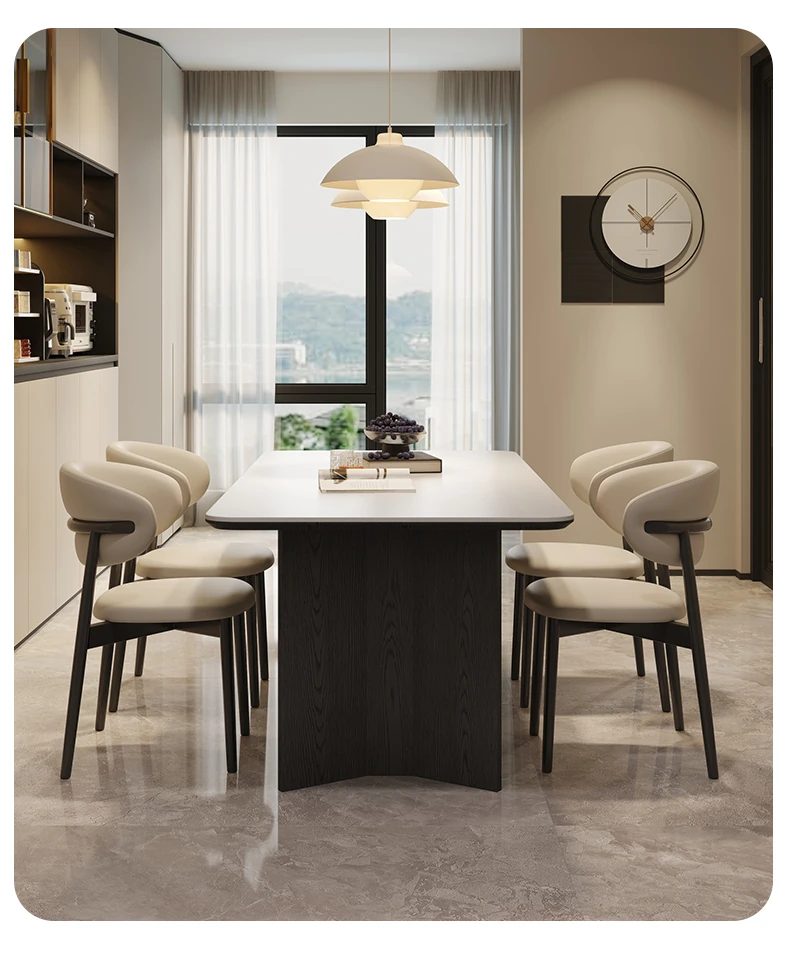 2025新作!洗練された高級感のある岩板ダイニングテーブル、現代的でシンプルなフレンチスタイル、小さなスペースにもぴったりのホワイトアッシュ材使用。おしゃれな食卓を演出し、毎日の食事を特別なひとときに!