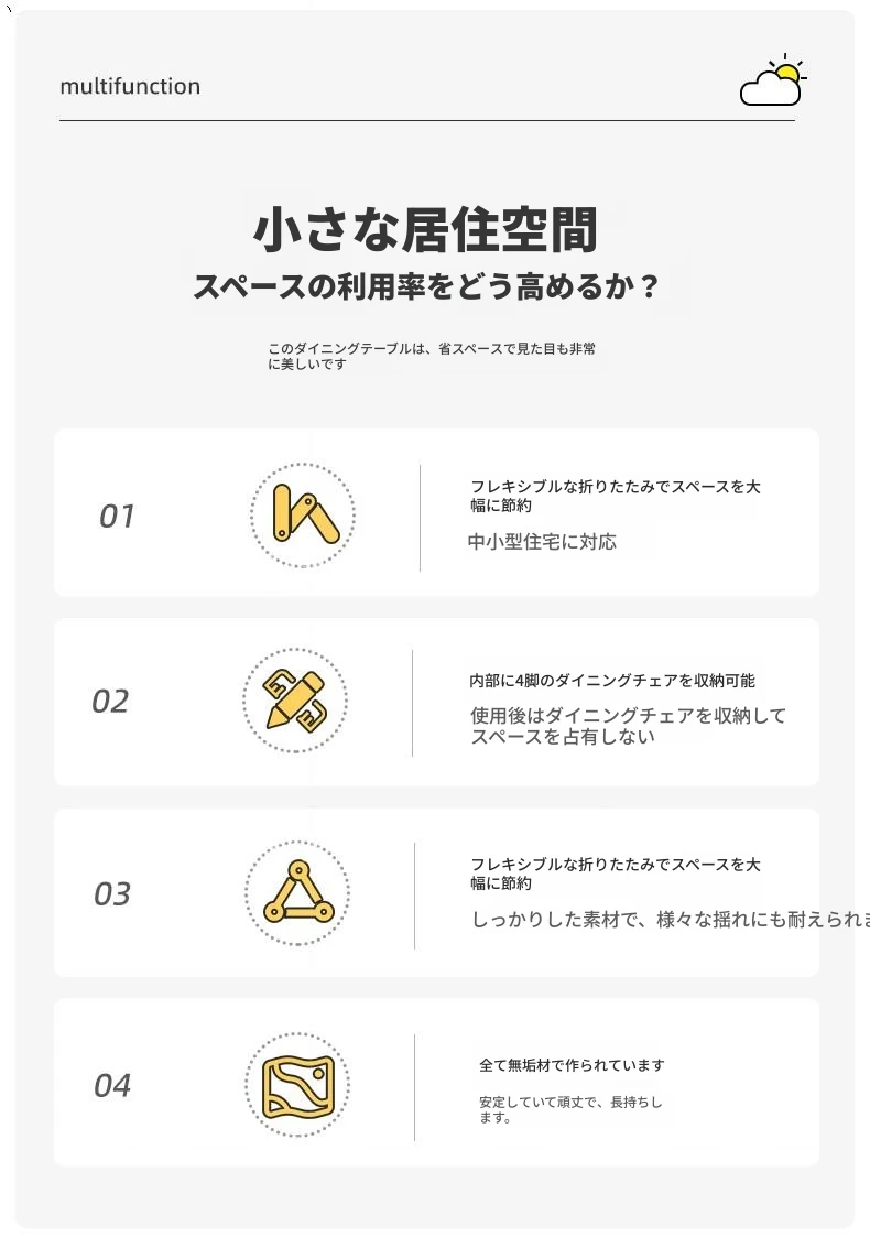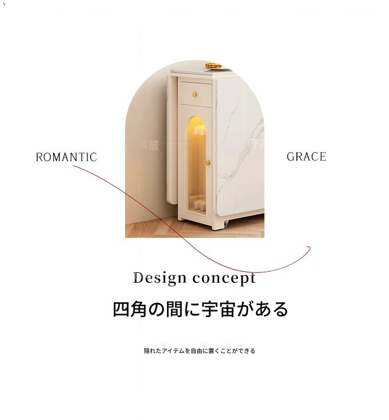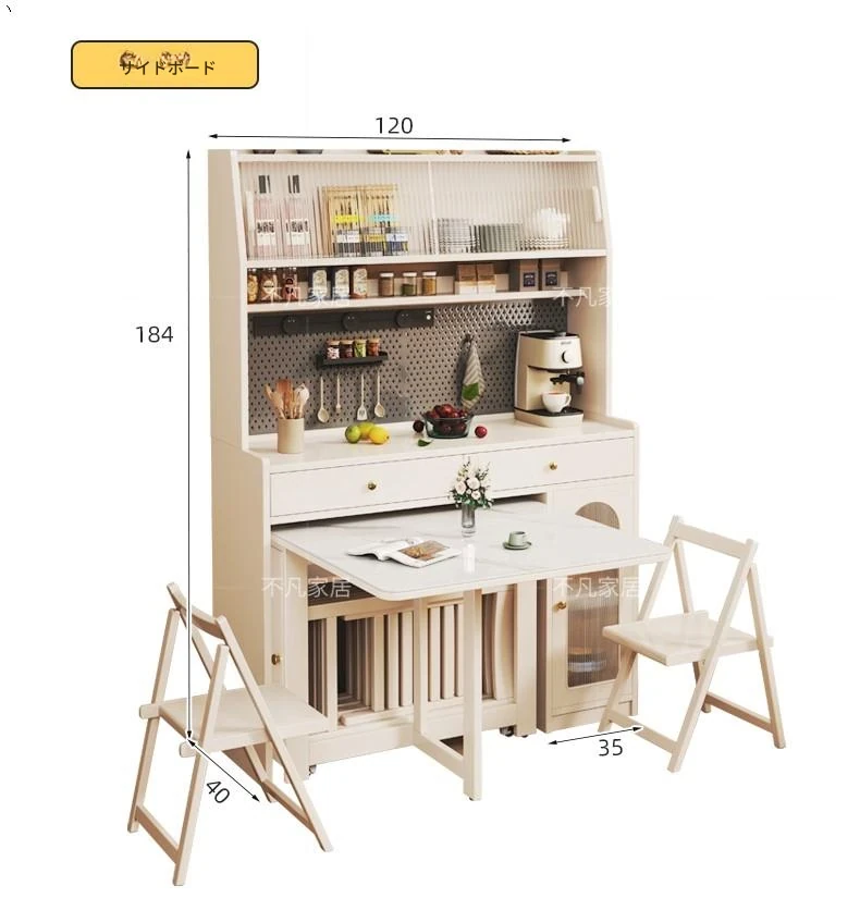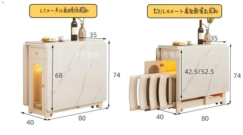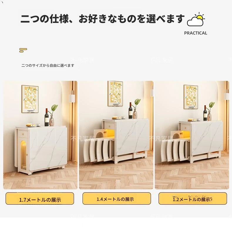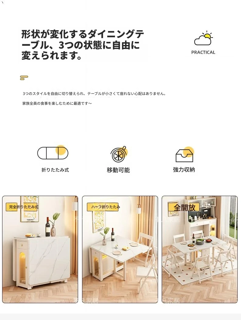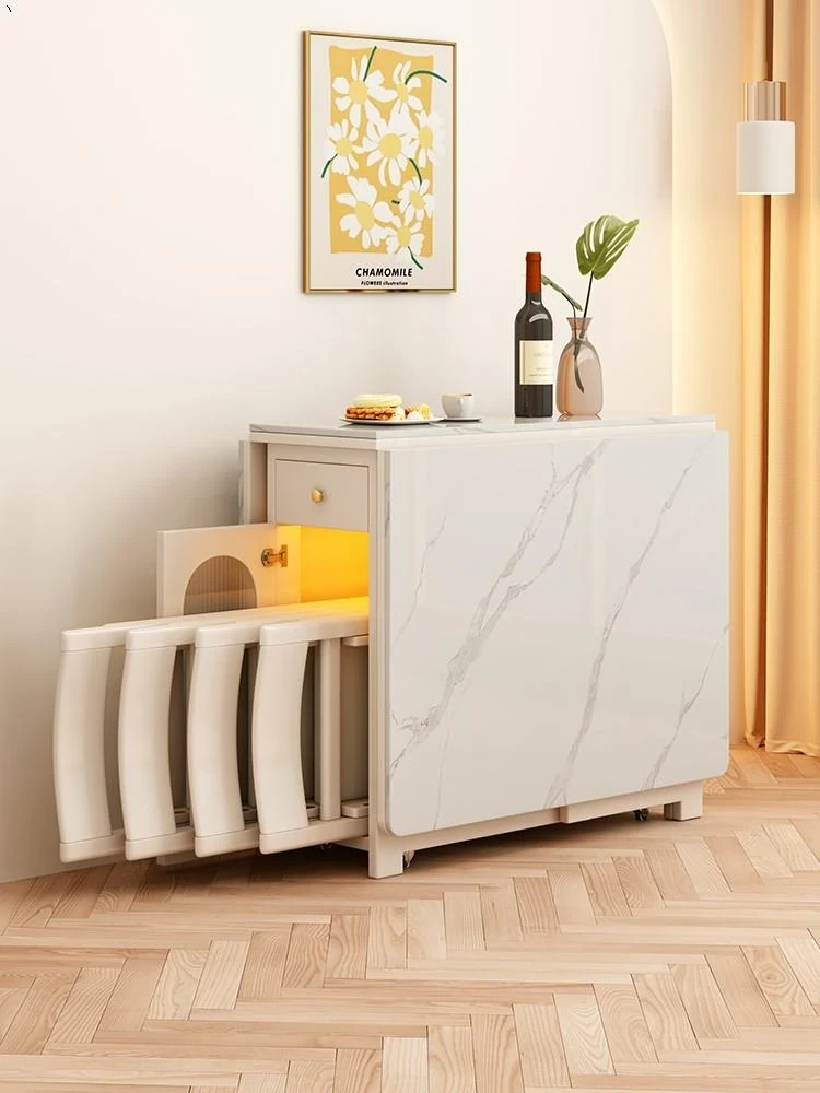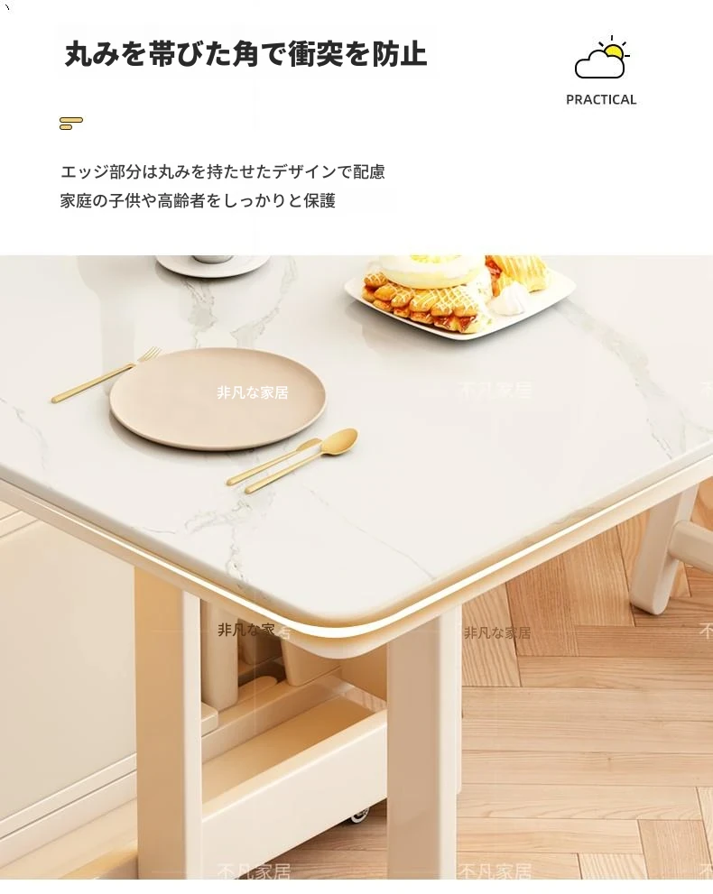 クリーム風折りたたみ岩板ダイニングテーブル&チェアセット - シンプルでスタイリッシュな白色、家庭に最適!多機能で移動可能な無垢材製の食卓で、毎日の食事を特別な時間に演出します。