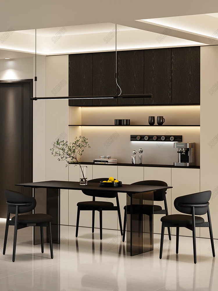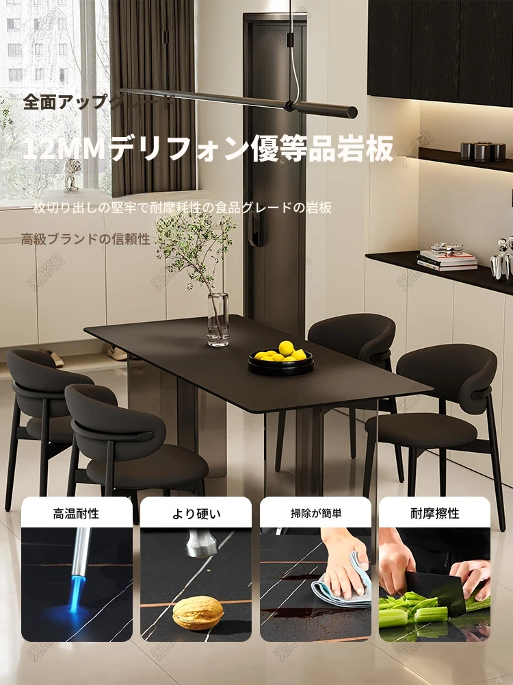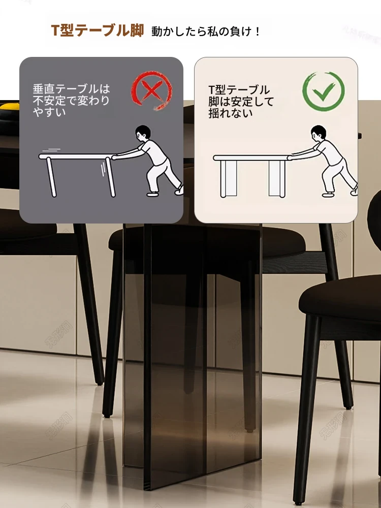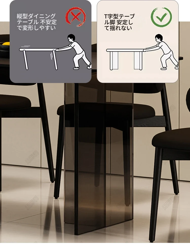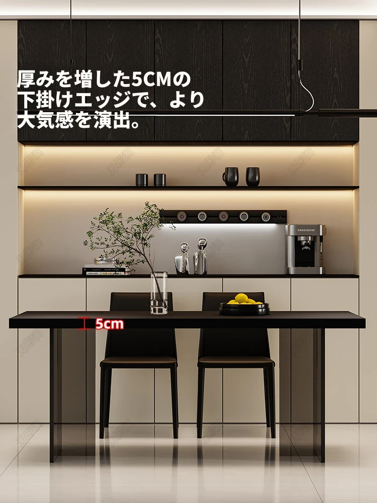 デリフォン岩板ダイニングテーブル アクリル浮遊透明 ブラック イタリアンミニマルデザイン 厚手の下掛けデザイナーテーブル - おしゃれで洗練された空間を演出し、特別なひとときをお届けします。