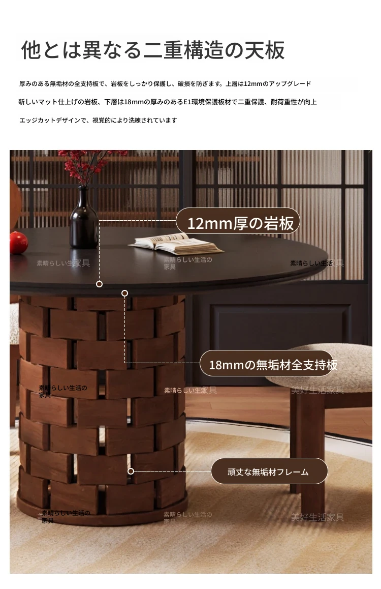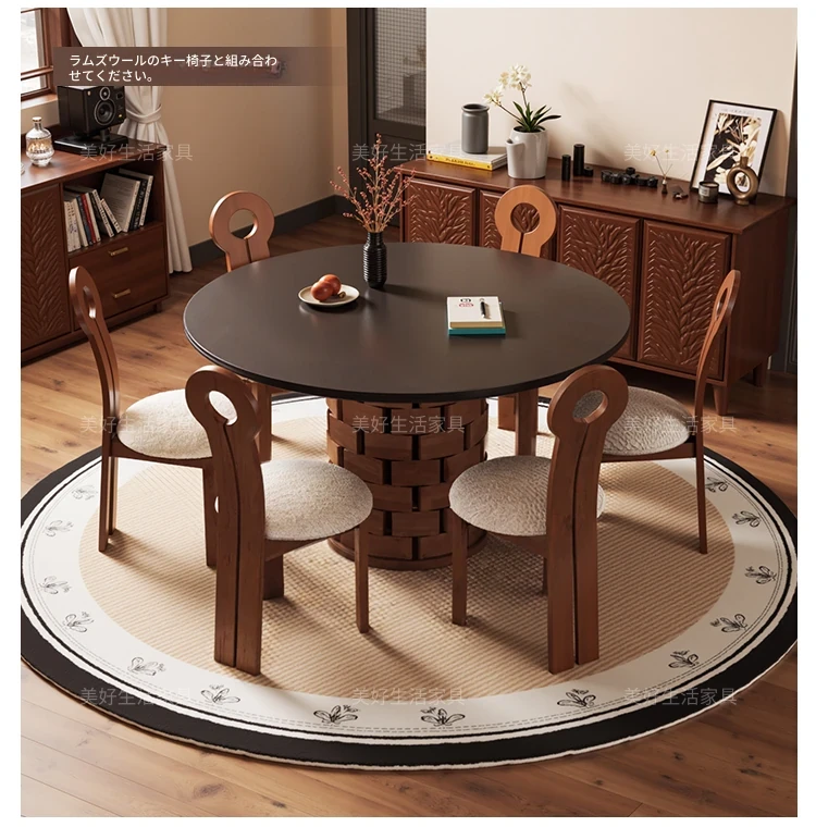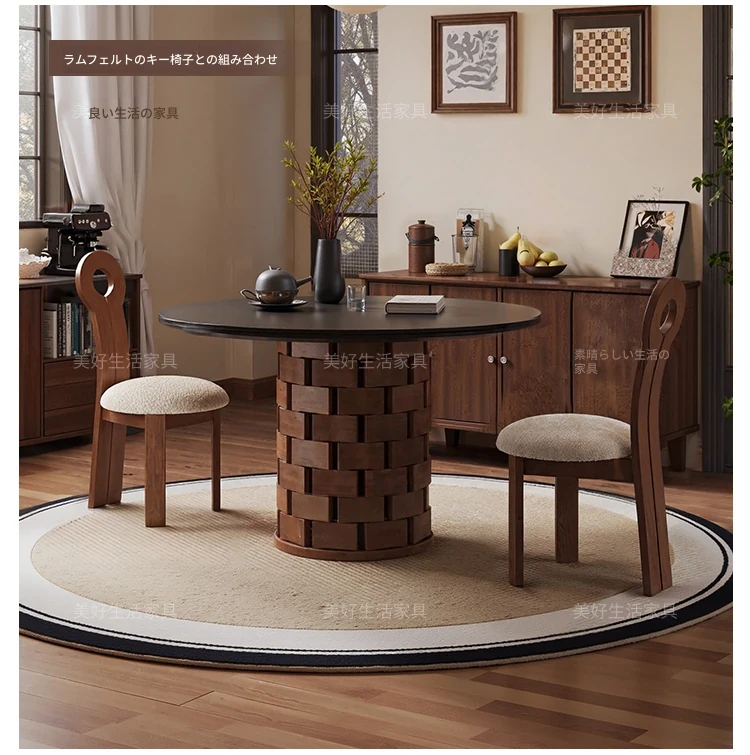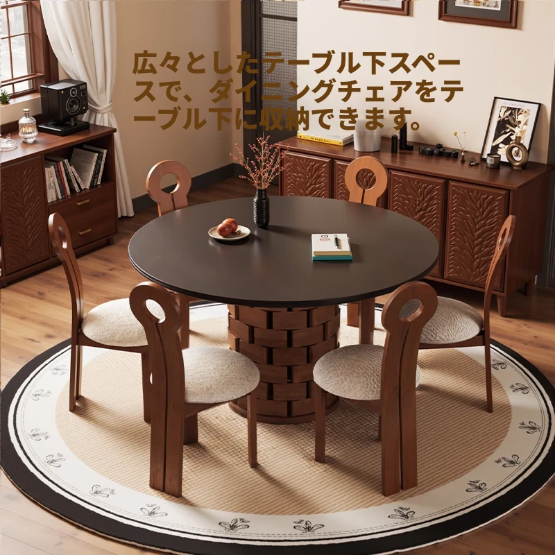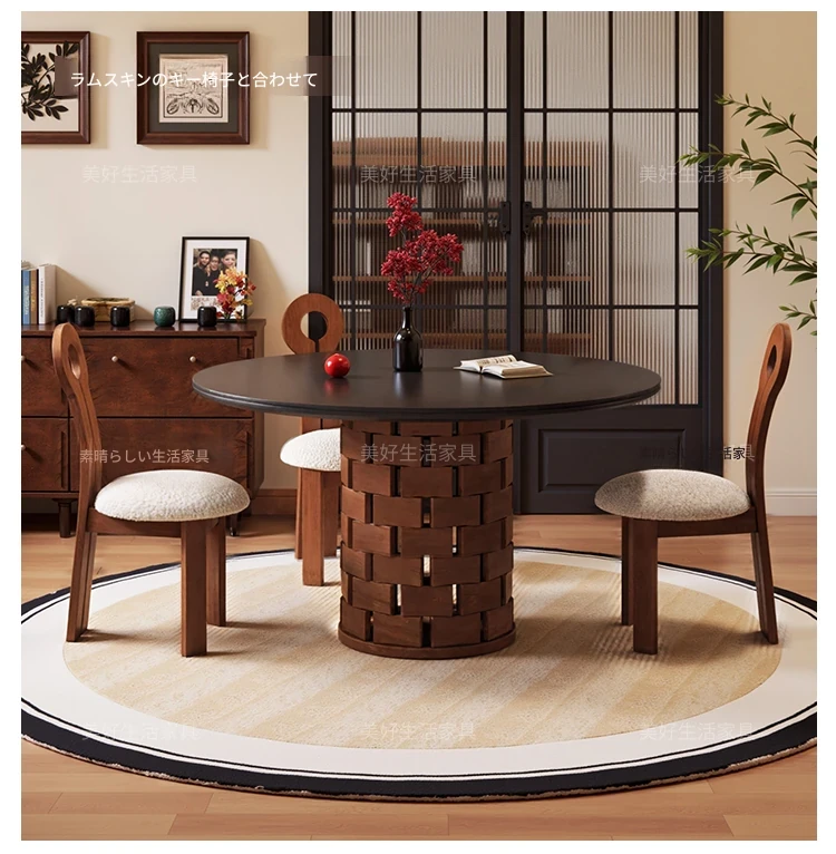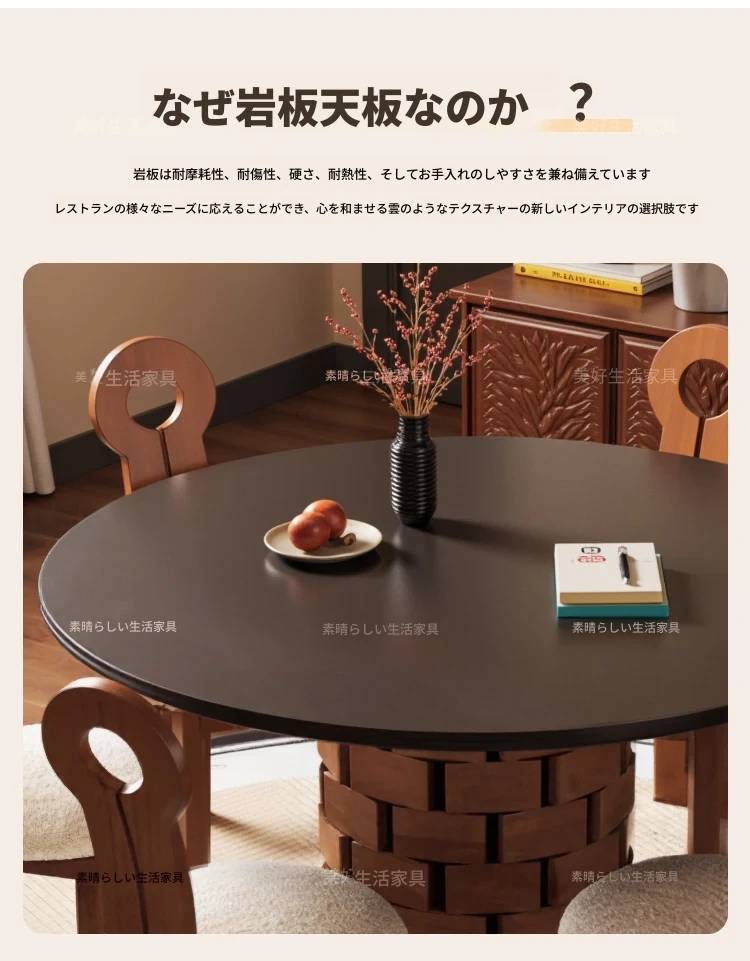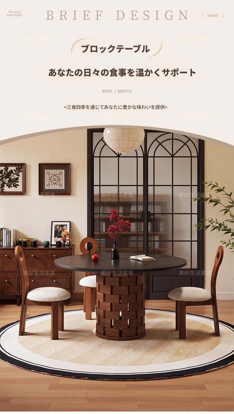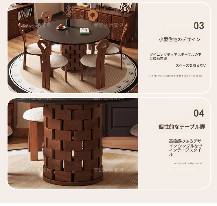 フレンチアンティークスタイルのブラックストーンテーブルセット - デザイナー新作!家庭用のブロック型円形テーブル、レトロな雰囲気の無垢材ダイニングテーブルで、食卓を華やかに演出します。