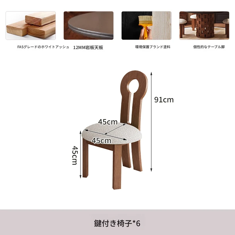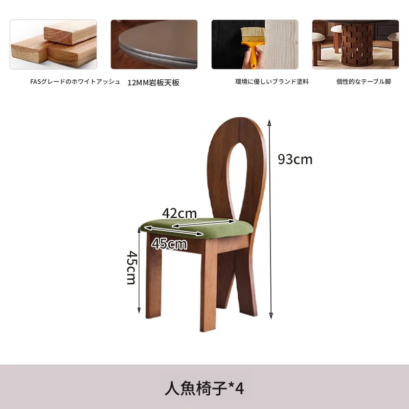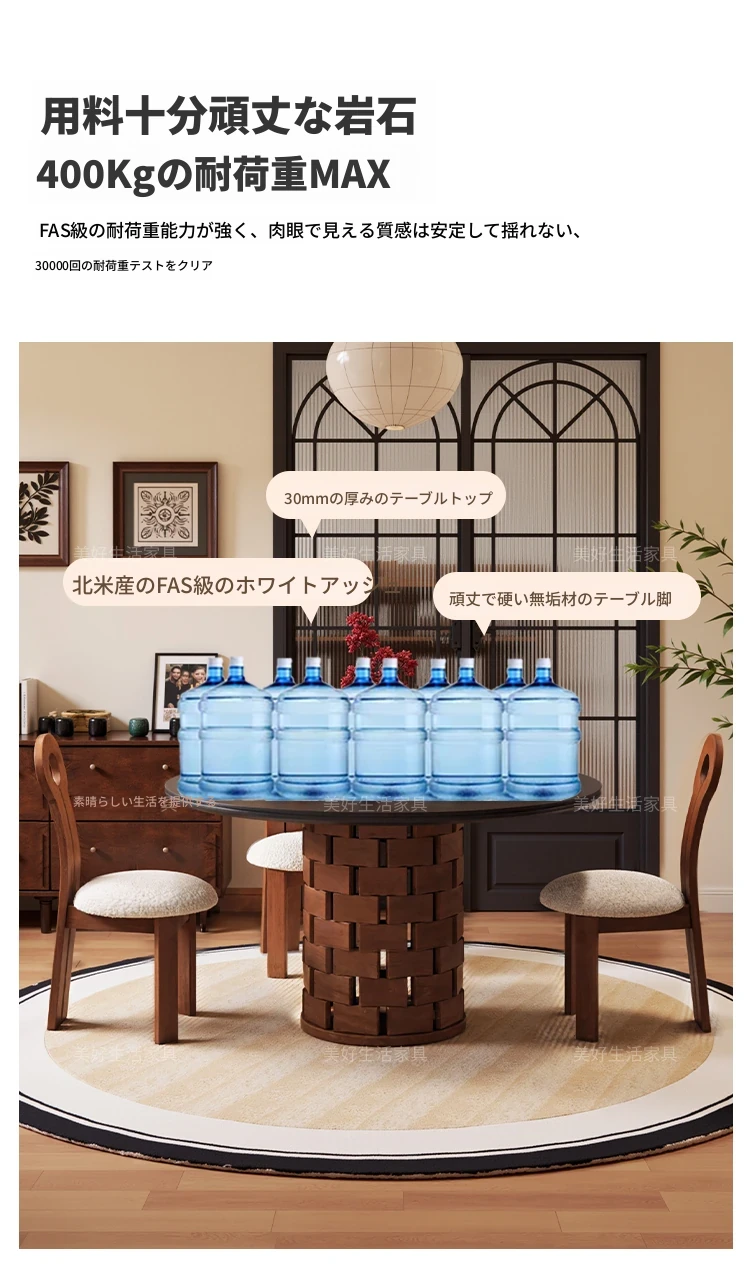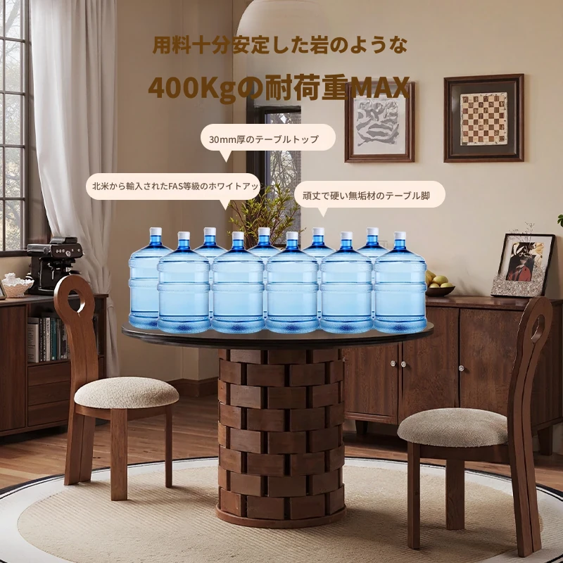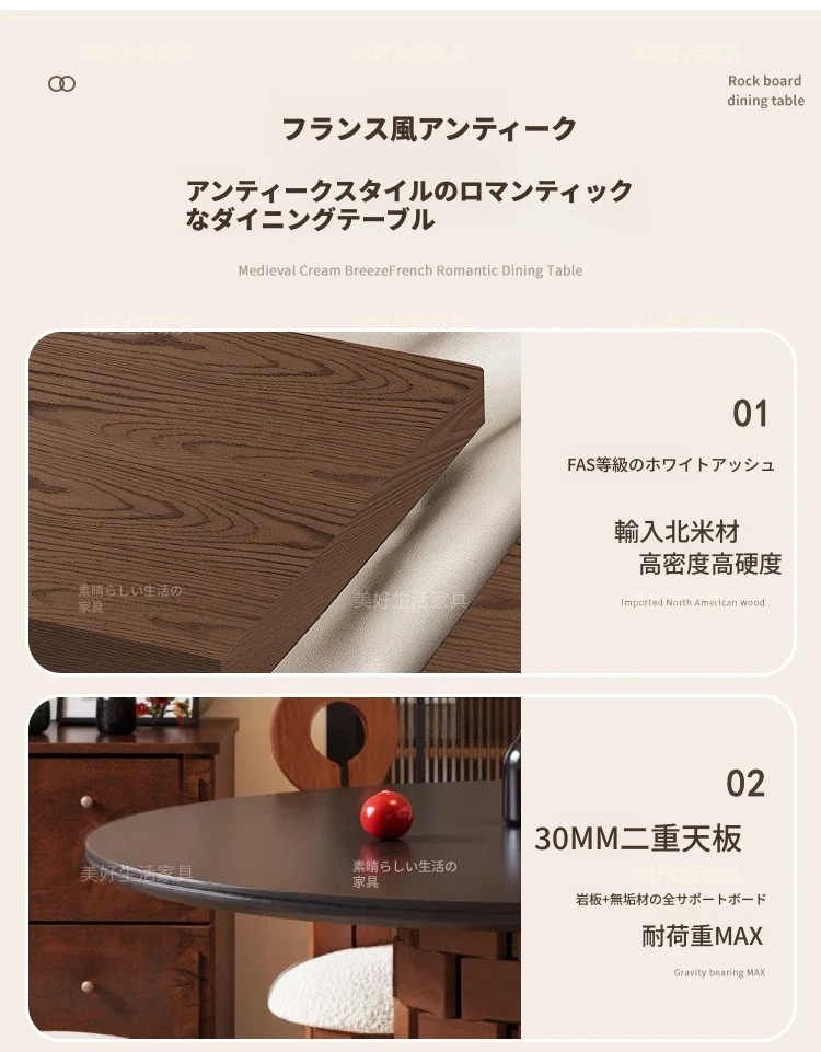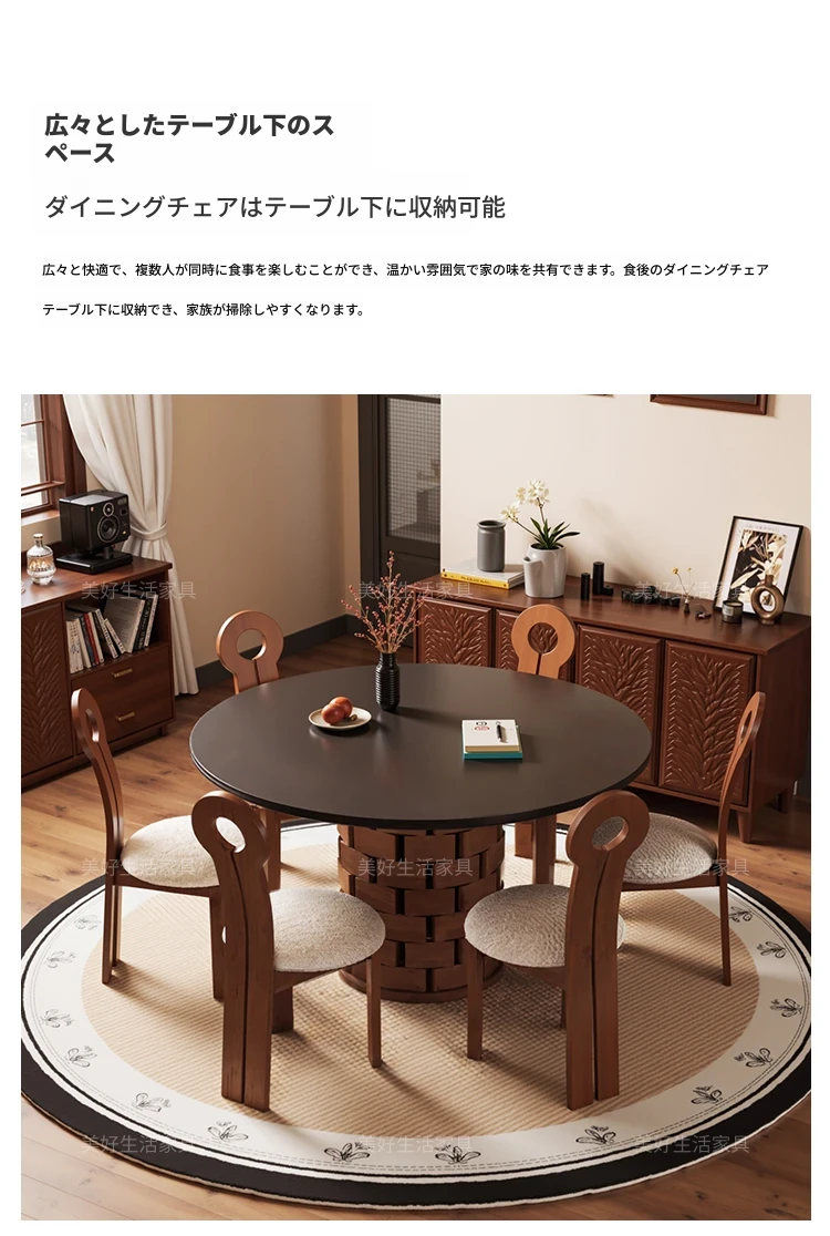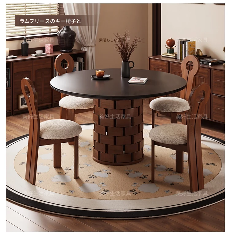 フレンチアンティークスタイルのブラックストーンテーブルセット - デザイナー新作!家庭用のブロック型円形テーブル、レトロな雰囲気の無垢材ダイニングテーブルで、食卓を華やかに演出します。