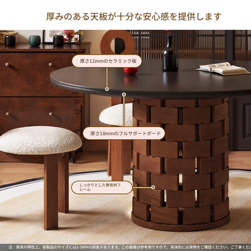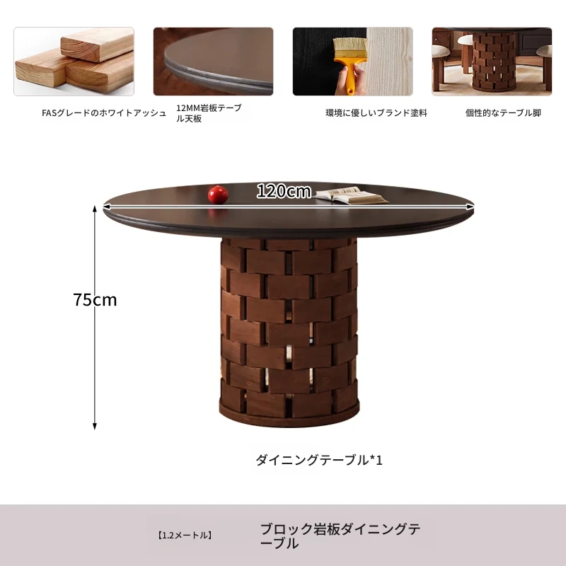 【1.2メートル】ブロック岩板ダイニングテーブル