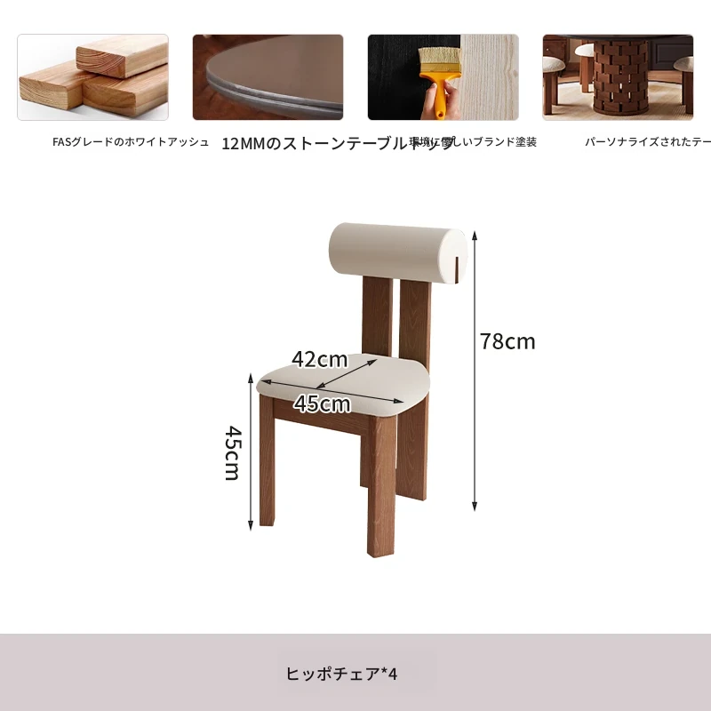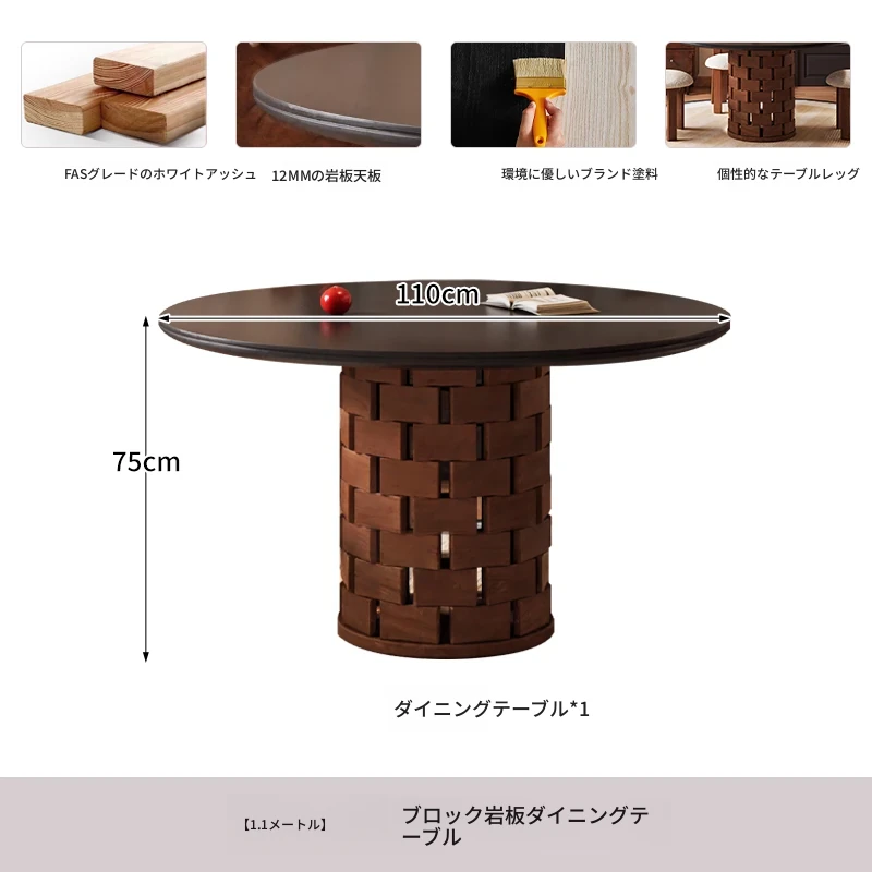 【1.1メートル】ブロック岩板ダイニングテーブル