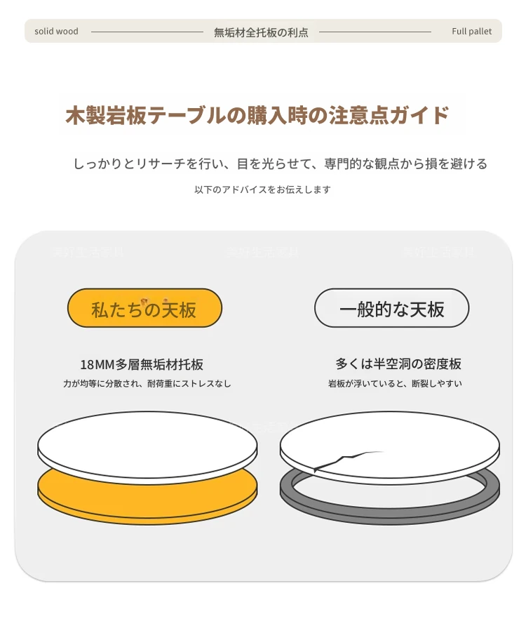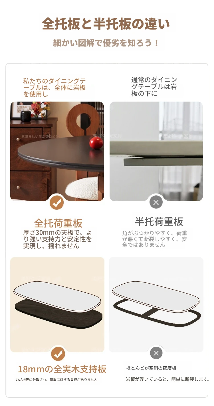 【1.3メートル】ブロック岩板ダイニングテーブル