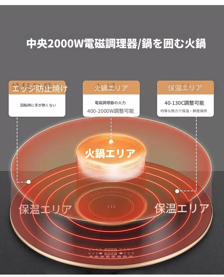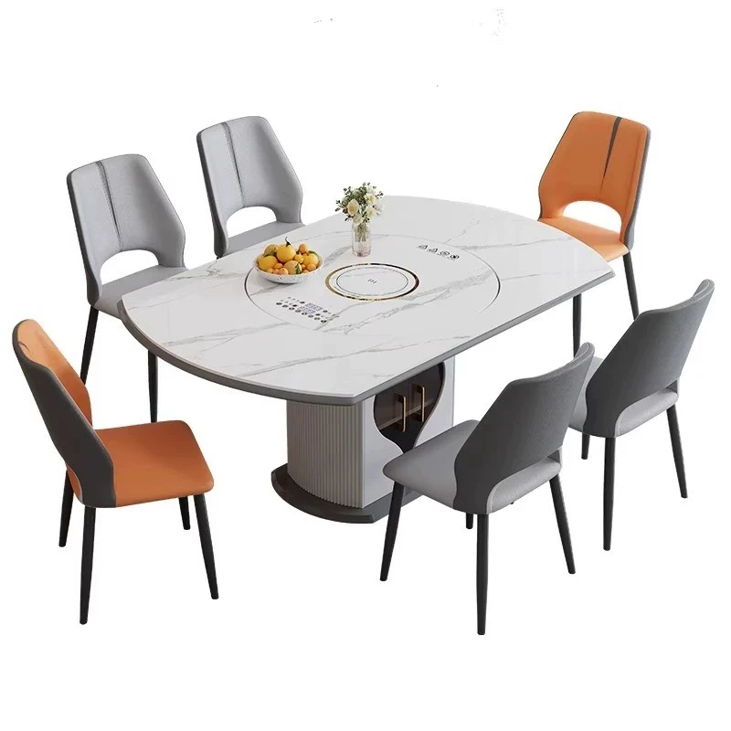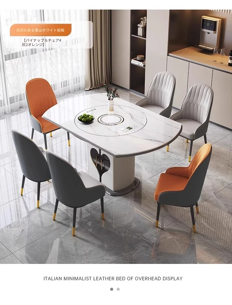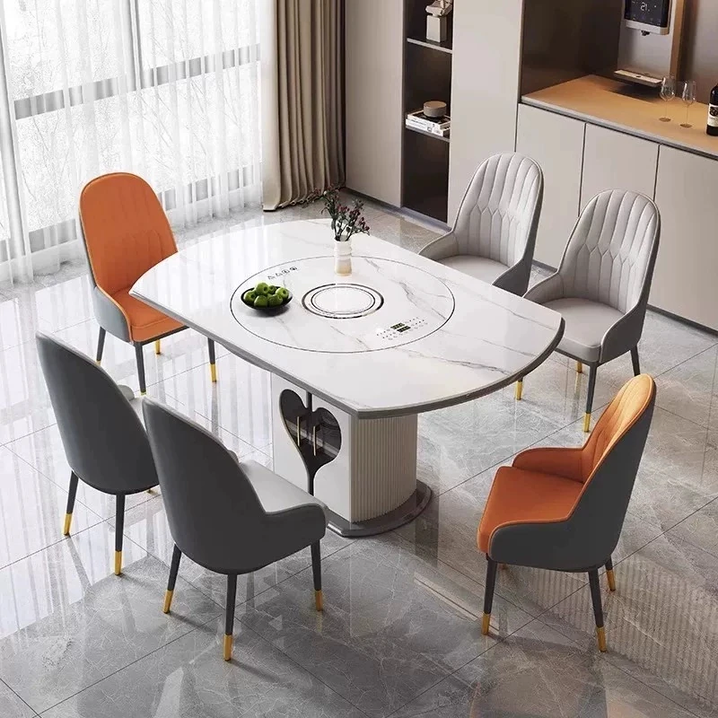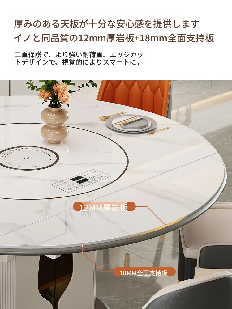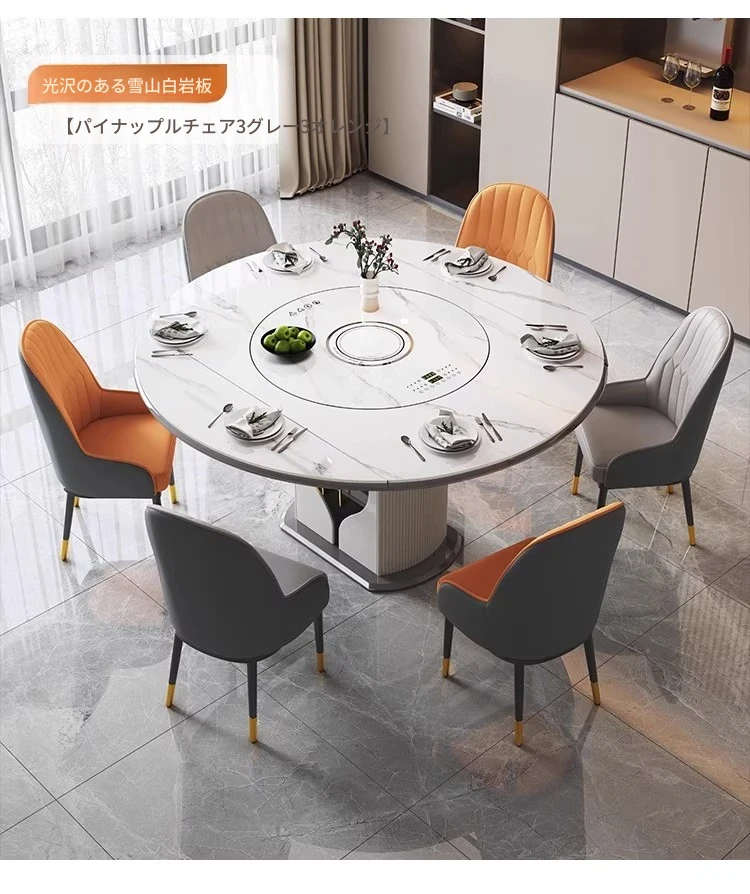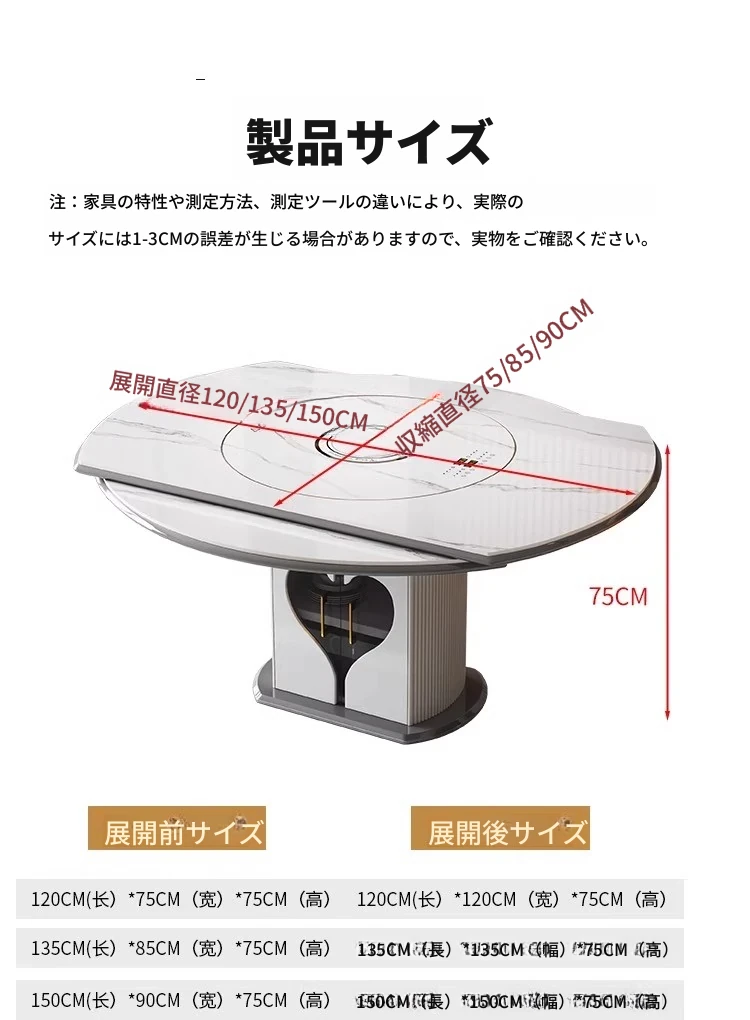 軽やかな高級感のある光沢仕上げ、伸縮可能な方形・円形両用デザイン!電磁調理器対応の温菜回転トレイ付き、モダンシンプルな家庭用ラウンドダイニングテーブル。あなたの食卓を華やかに演出します!