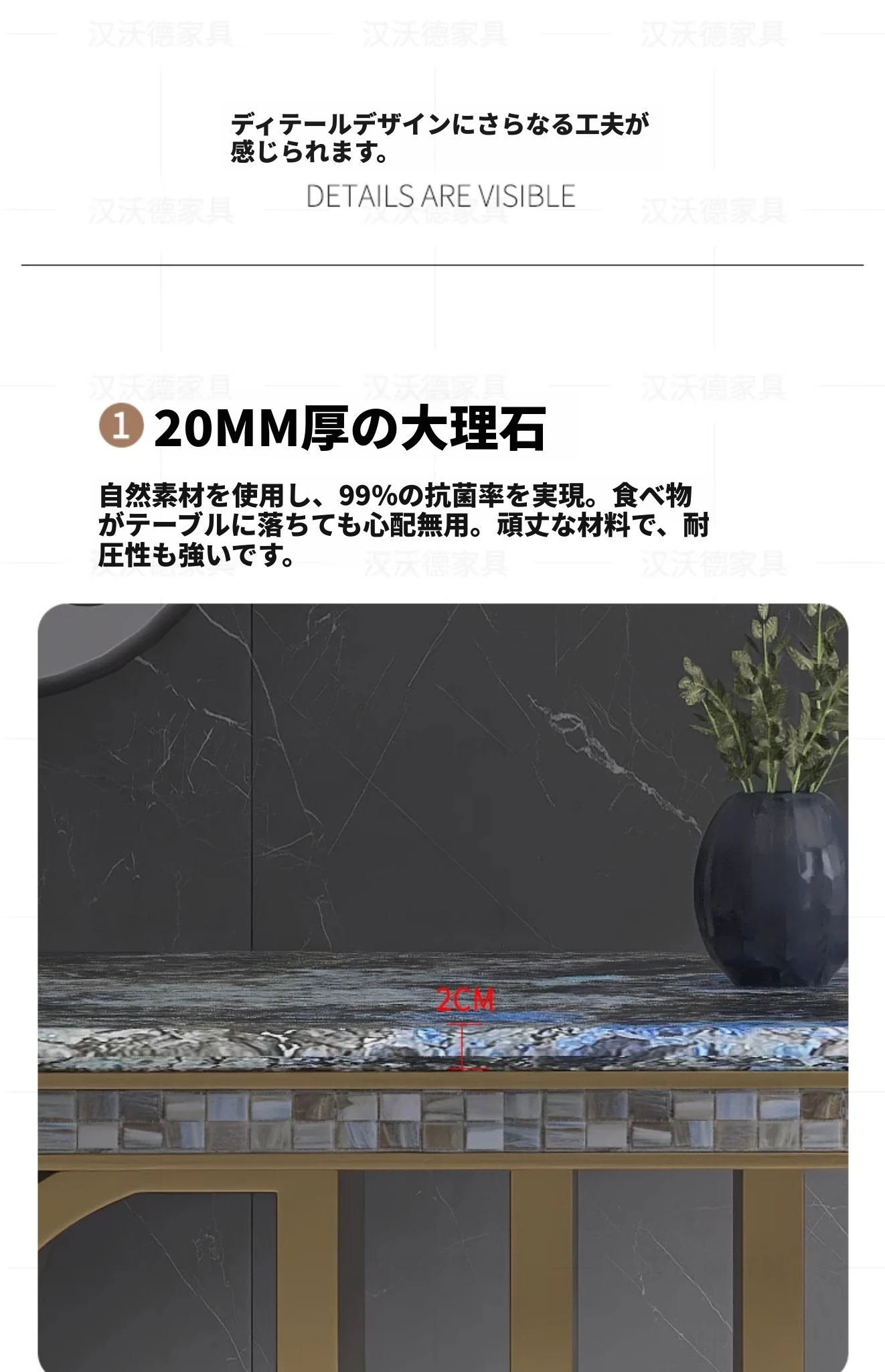 【ブルージェイド】大理石ダイニングテーブル+6椅子
