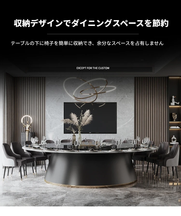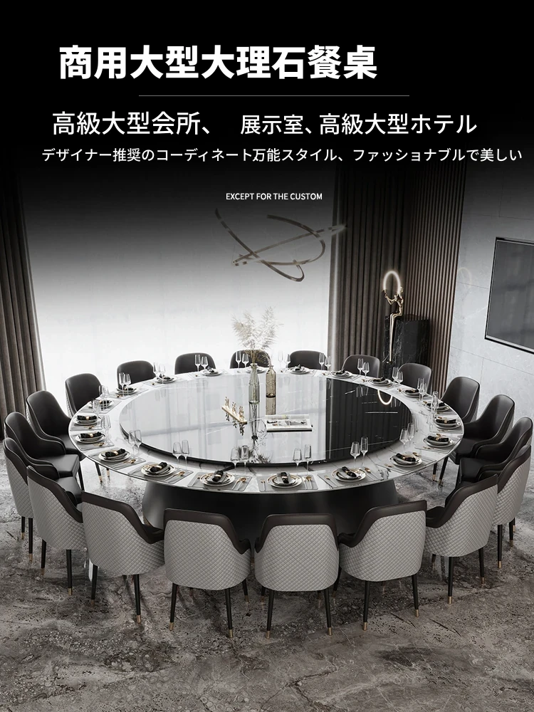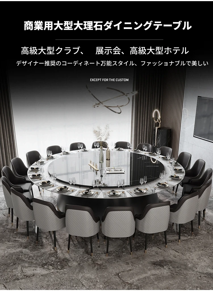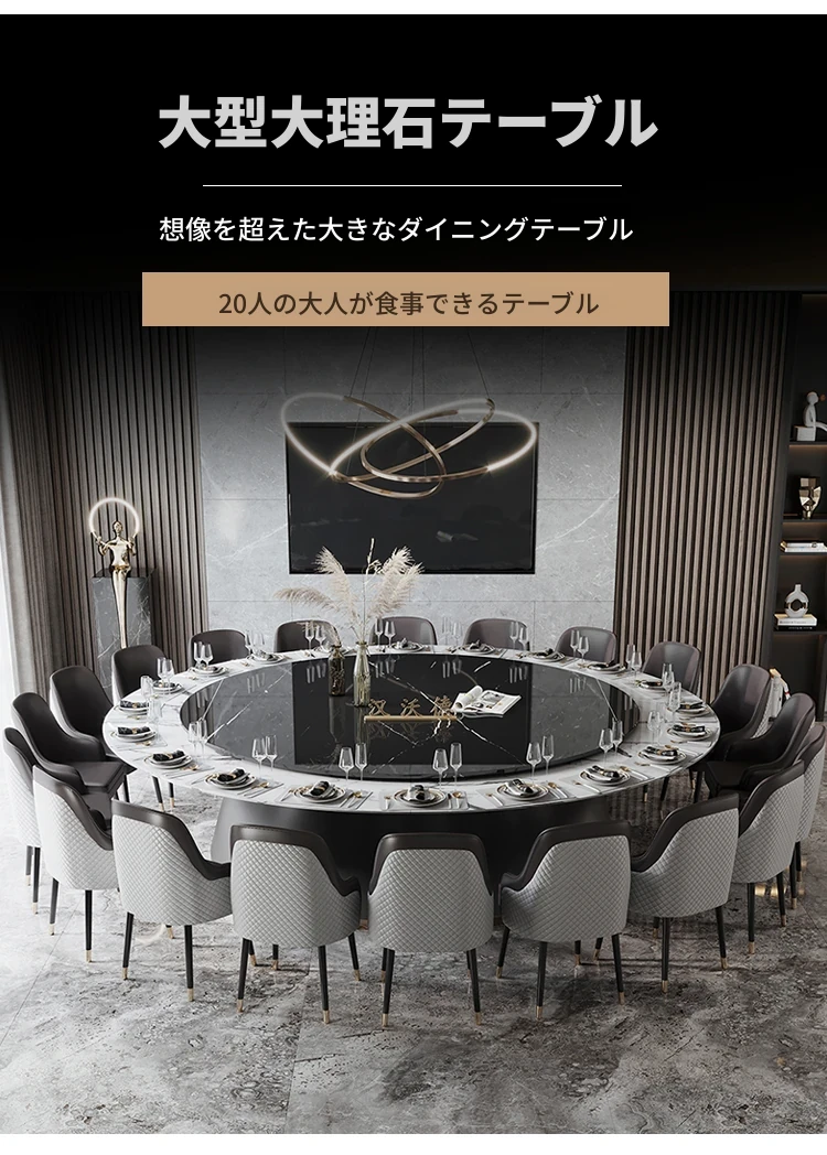 豪華大理石円形ダイニングテーブル - 大型住宅向け、最大20人用、12人用に最適!自宅や別荘、ホテルにぴったりの電動式ラウンドテーブル。洗練されたデザインで、特別なひとときを演出します。