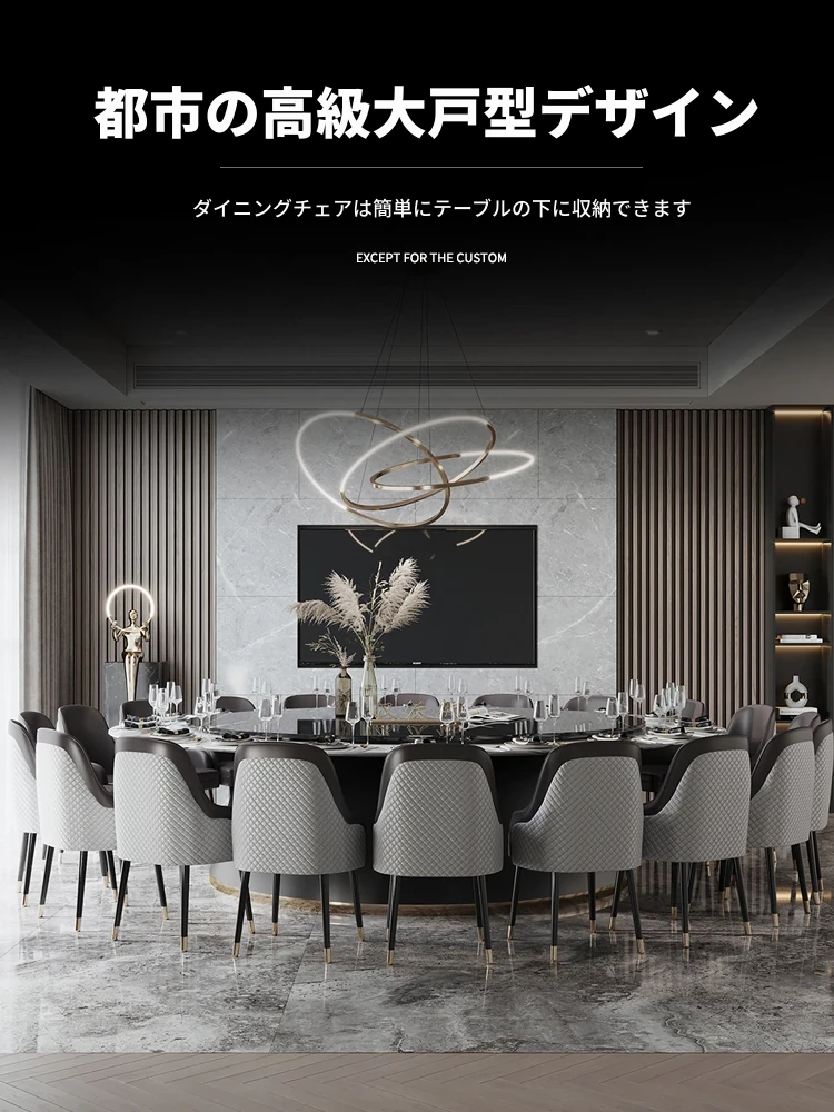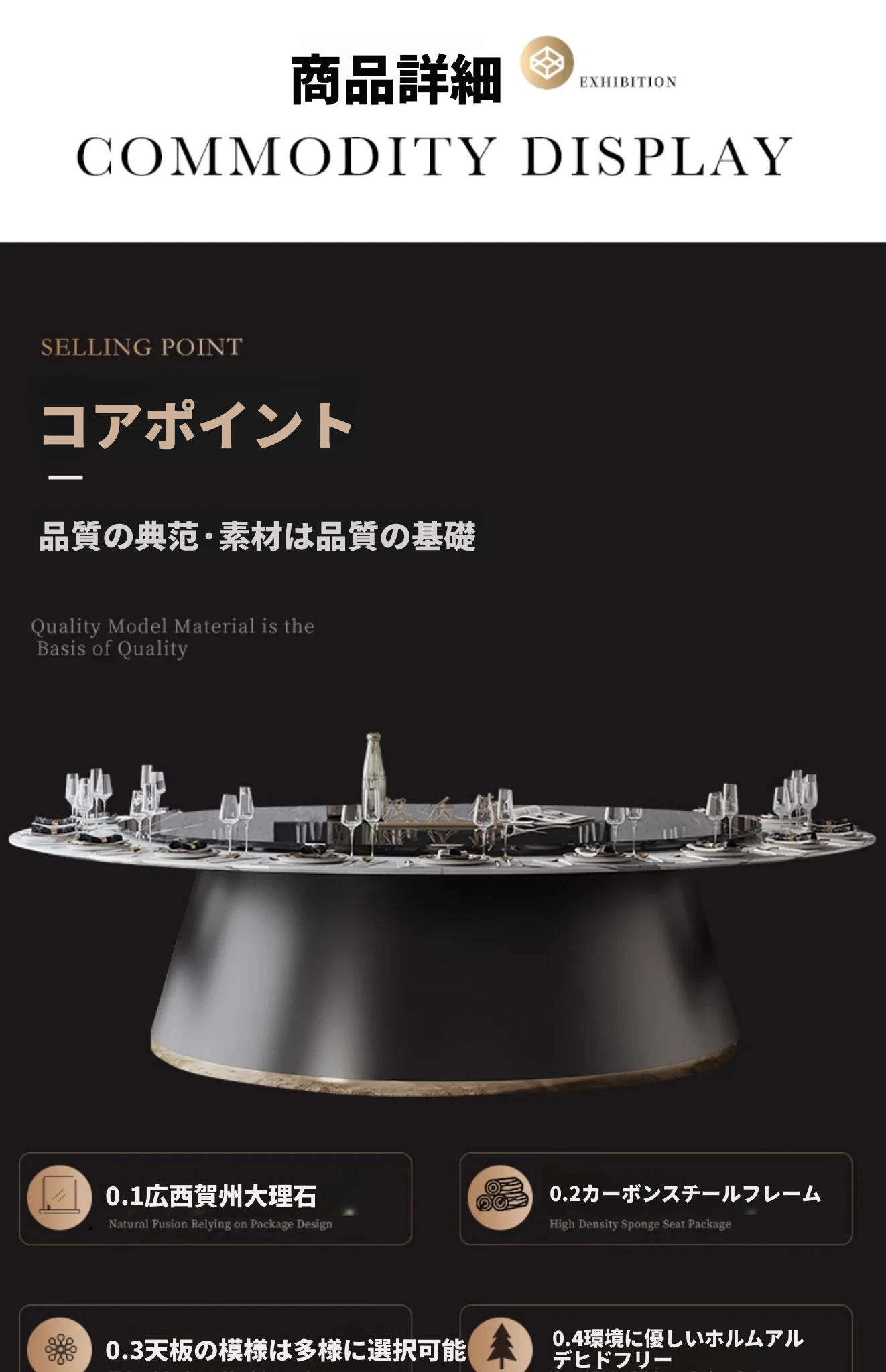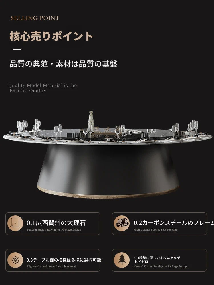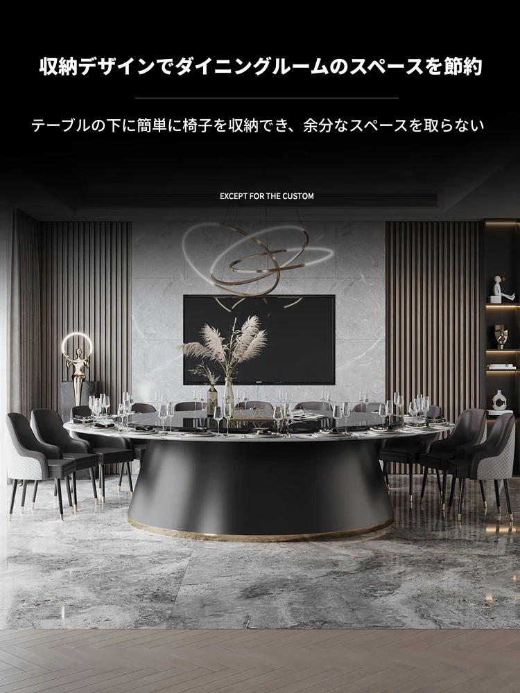 豪華大理石円形ダイニングテーブル - 大型住宅向け、最大20人用、12人用に最適!自宅や別荘、ホテルにぴったりの電動式ラウンドテーブル。洗練されたデザインで、特別なひとときを演出します。