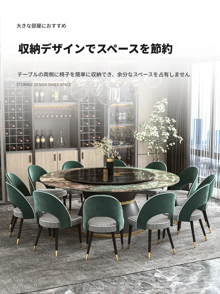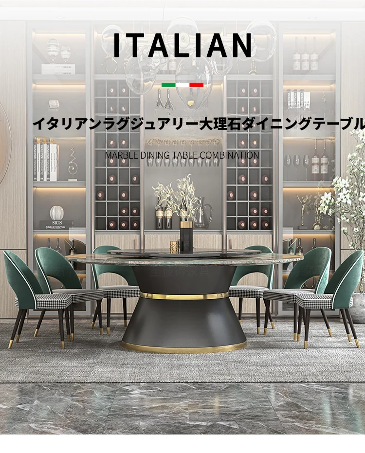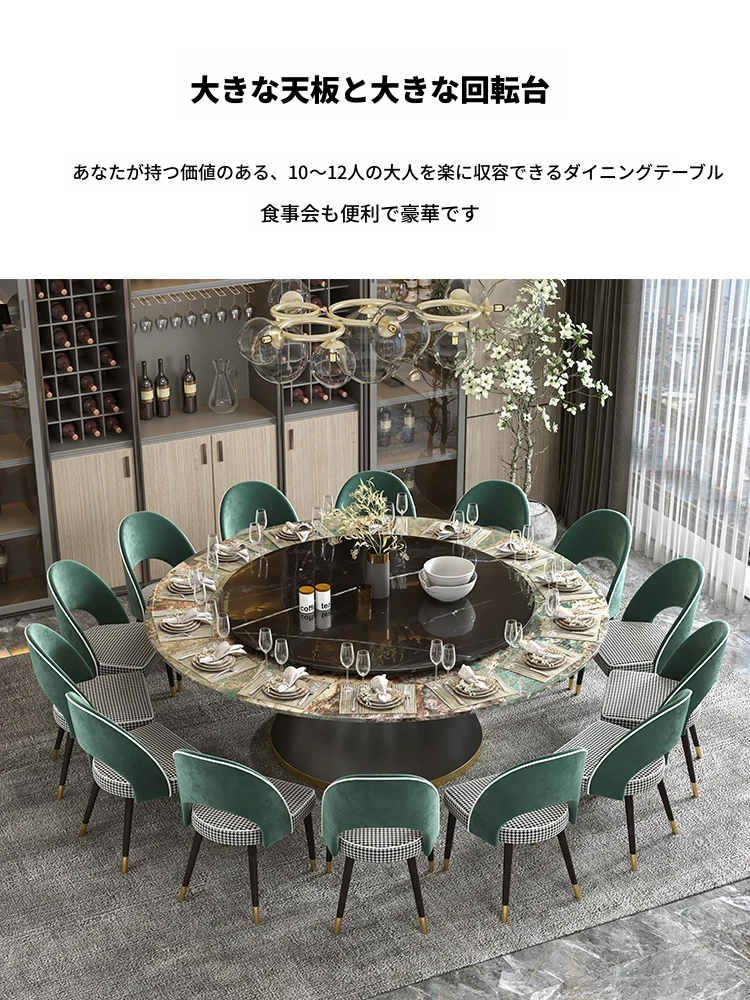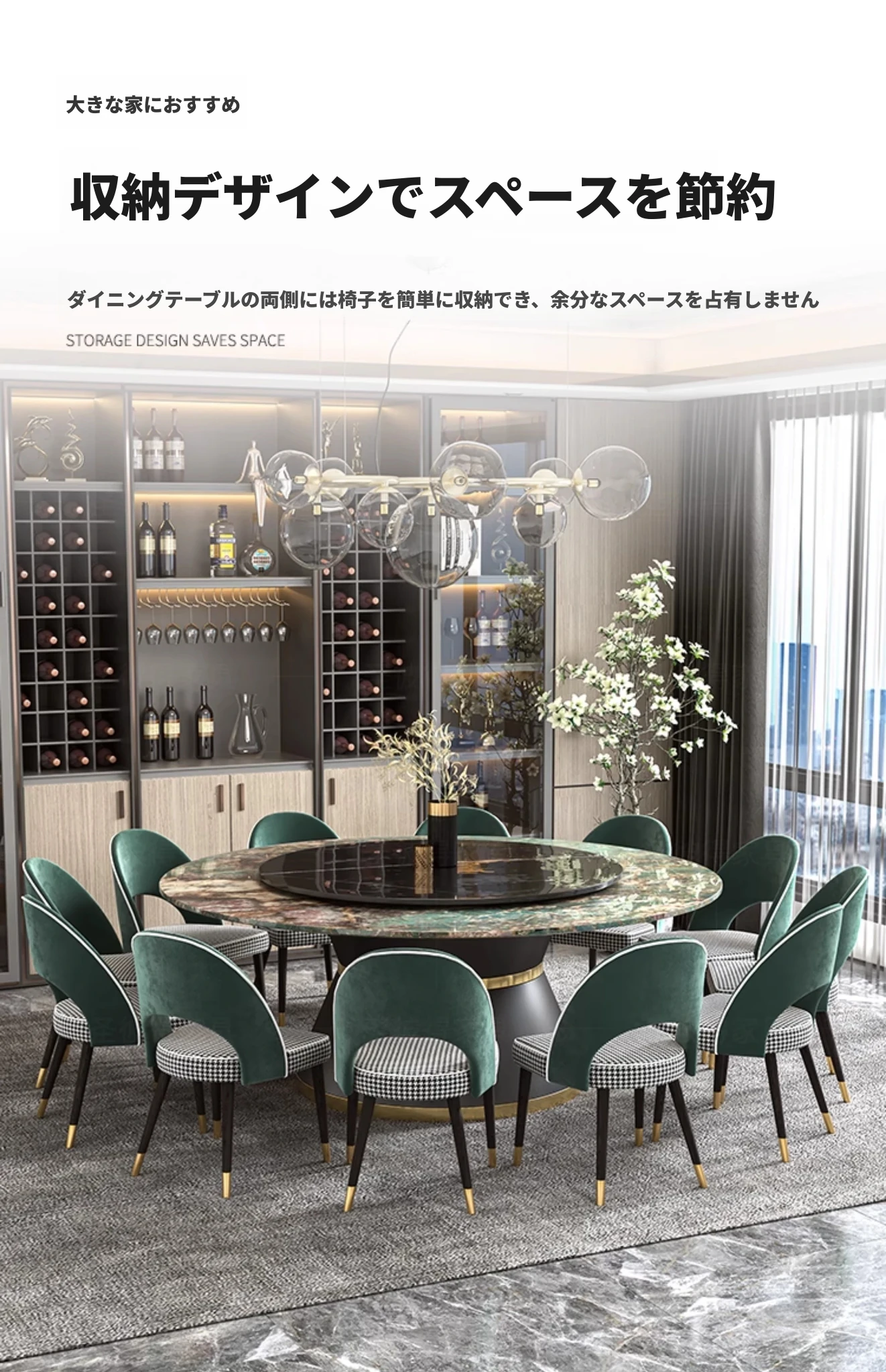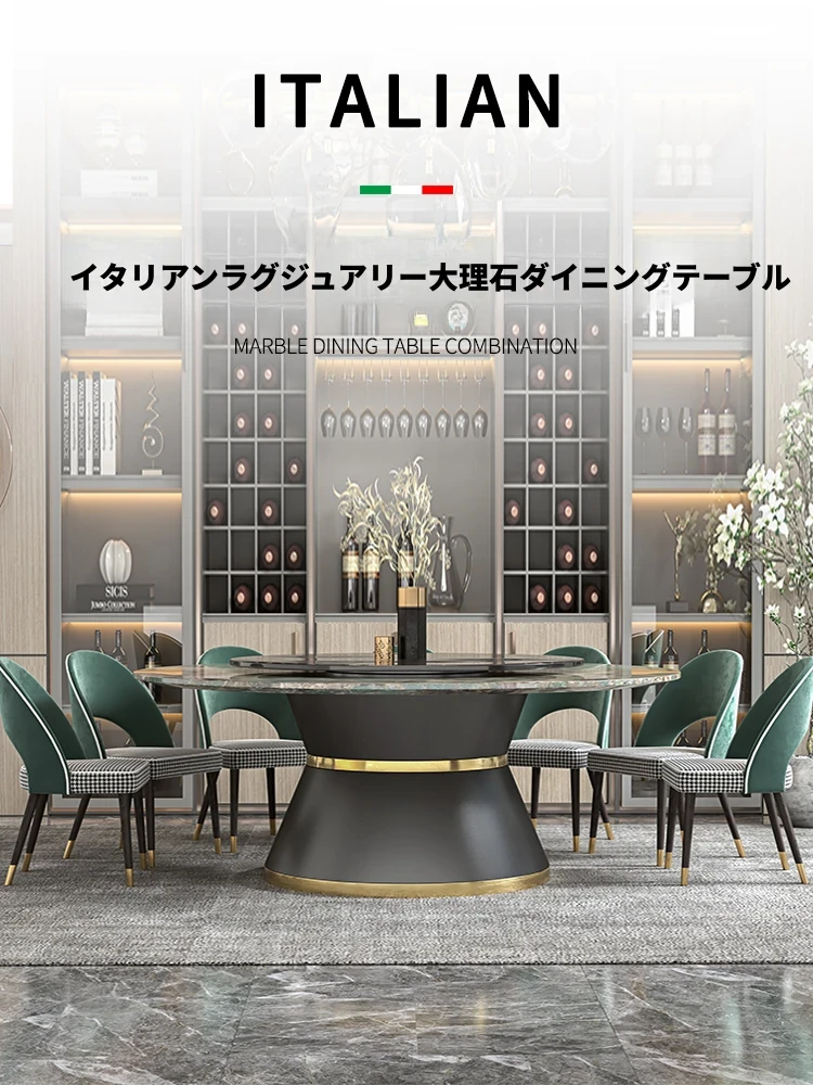 イタリアンデザインの大理石ラウンドテーブル、電動回転式で10人座れる豪華なダイニングテーブル。別荘や広いリビングにぴったりの家用食卓。美しい外観で、食事の時間を特別なひとときに演出します!