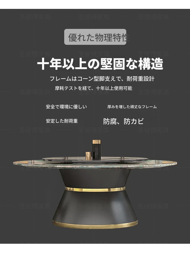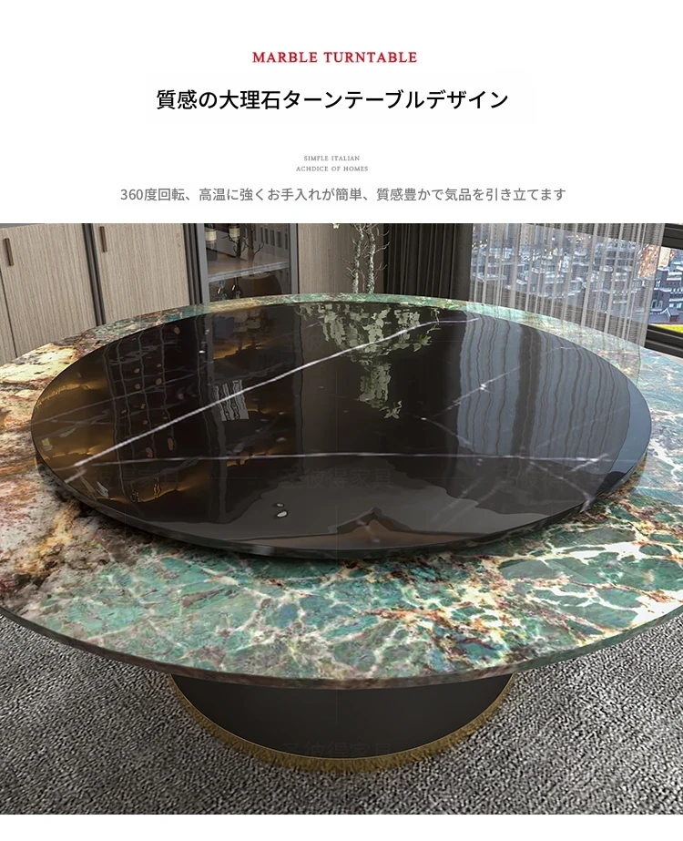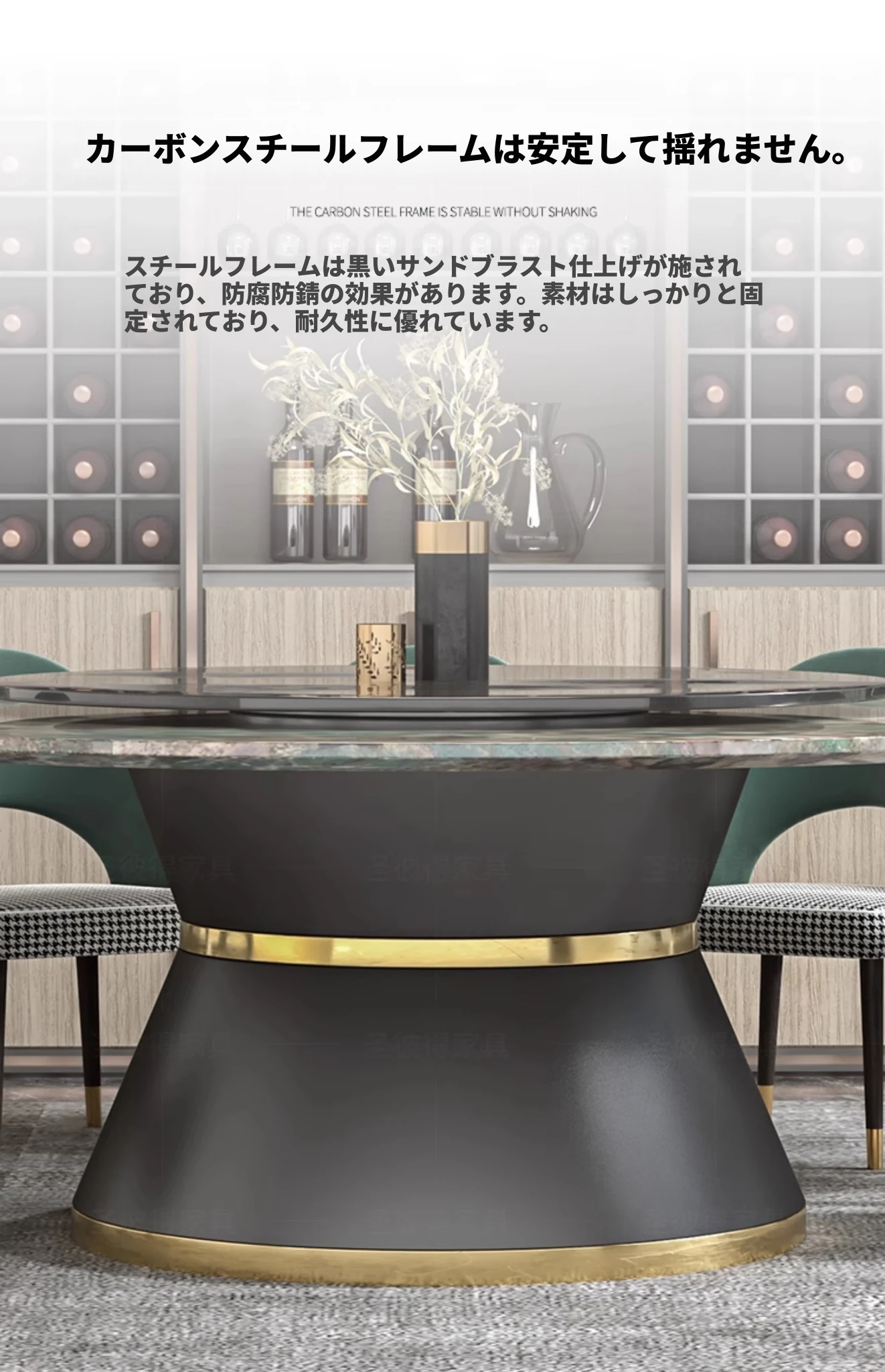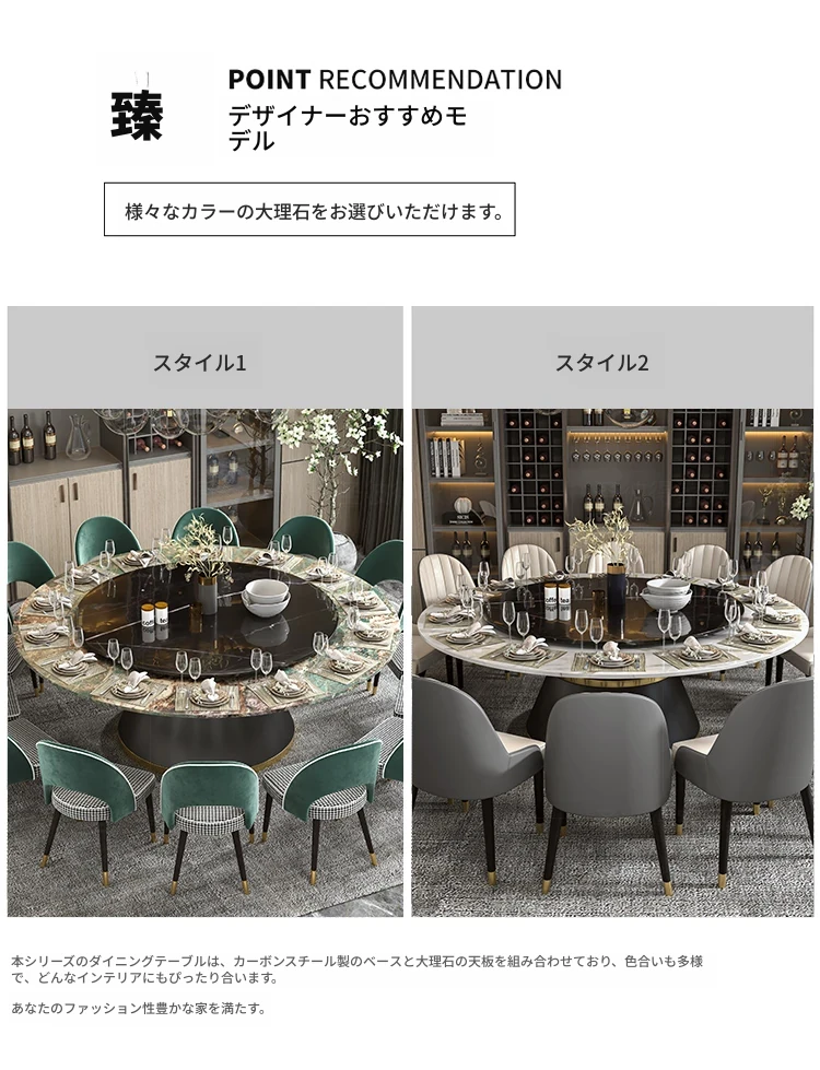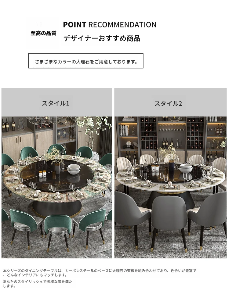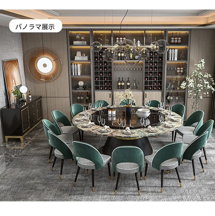 イタリアンデザインの大理石ラウンドテーブル、電動回転式で10人座れる豪華なダイニングテーブル。別荘や広いリビングにぴったりの家用食卓。美しい外観で、食事の時間を特別なひとときに演出します!