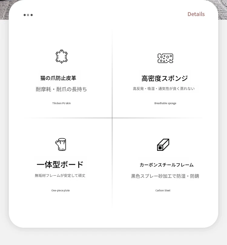 Aタイプ【浅灰色】無垢材背もたれ猫抓皮