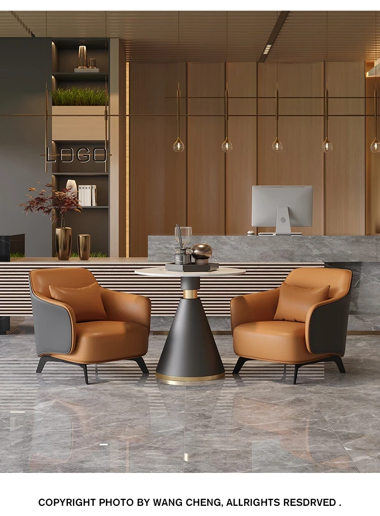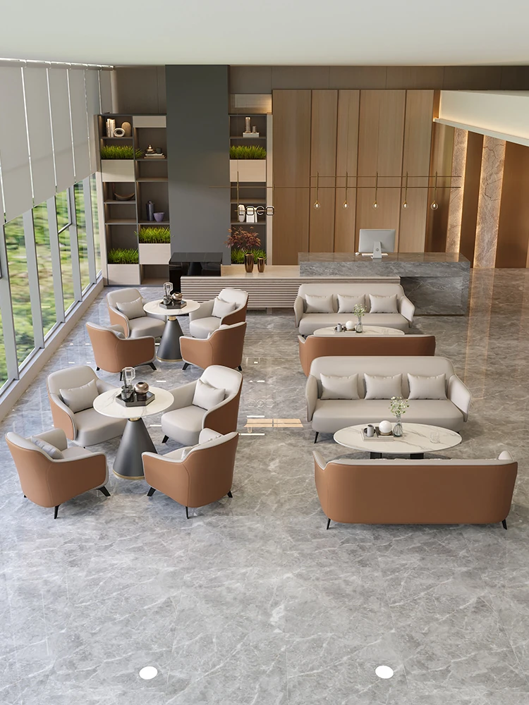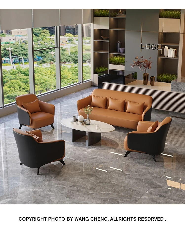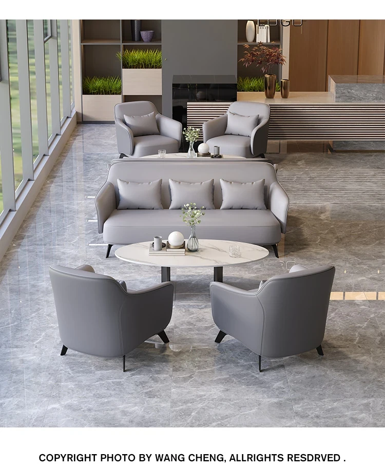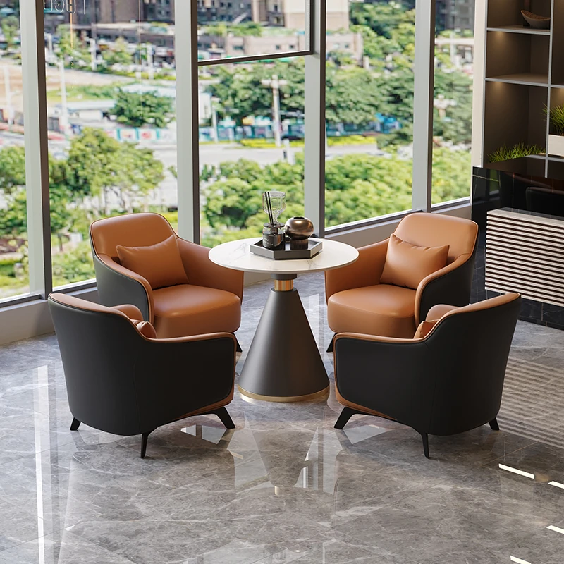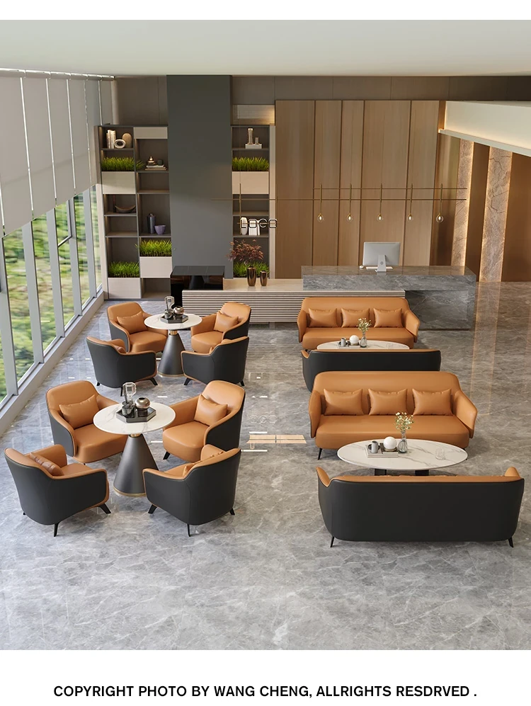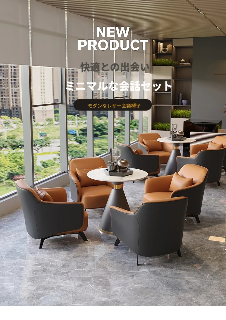 高級感溢れる現代的なビジネスソファセット - 美容院やサロンの受付に最適な洽談ソファとテーブルのコンビネーションで、優雅な空間を演出します。お客様をお迎えする際の完璧な選択です!