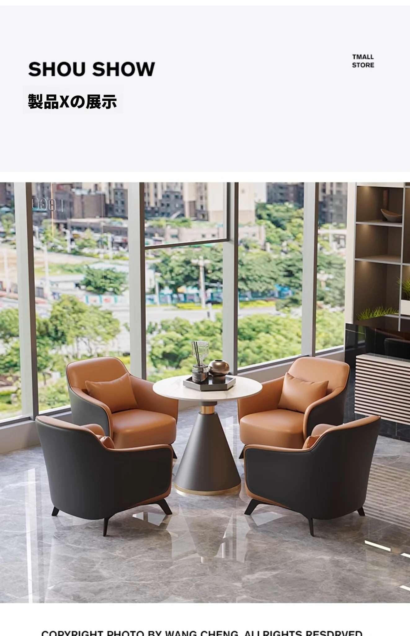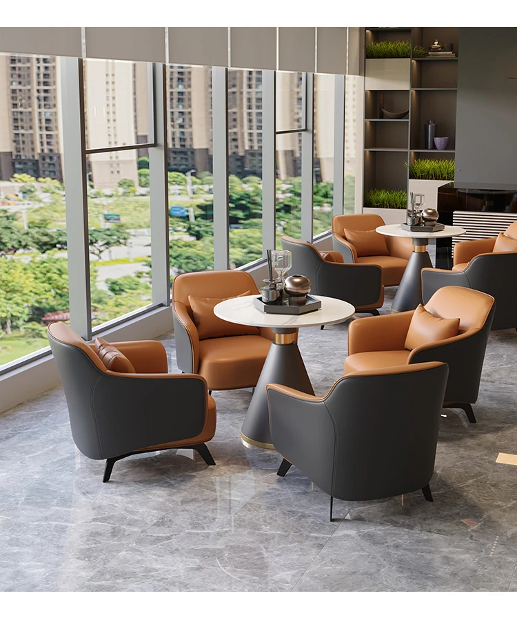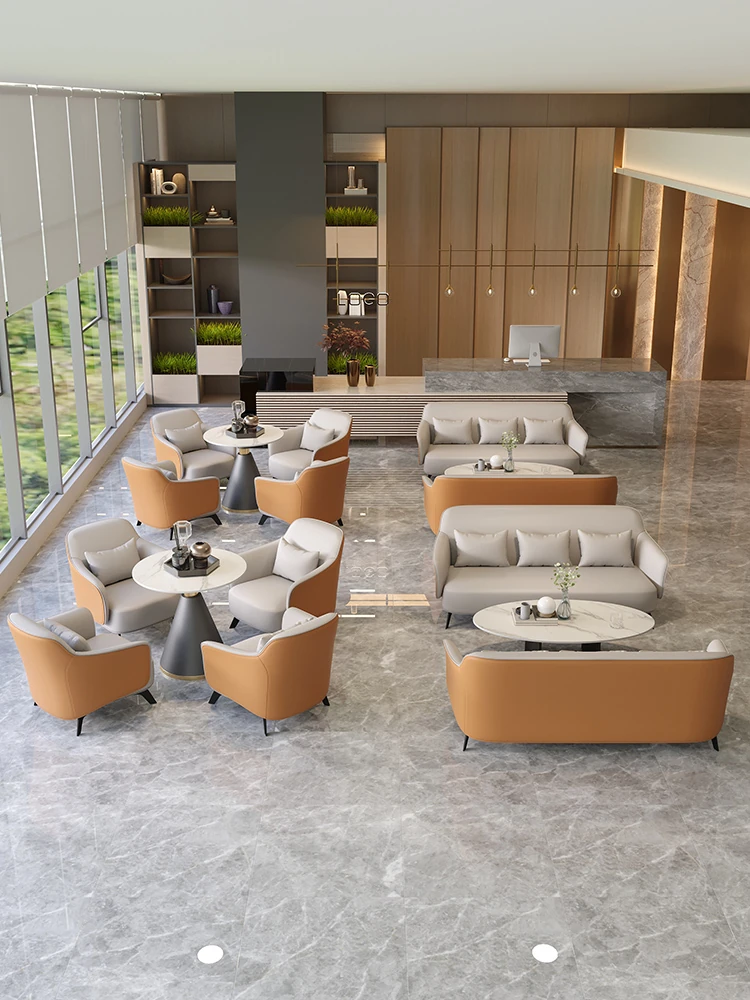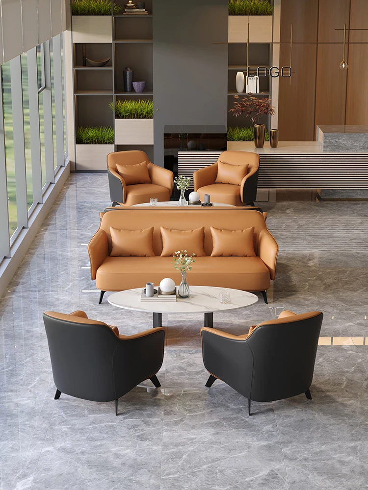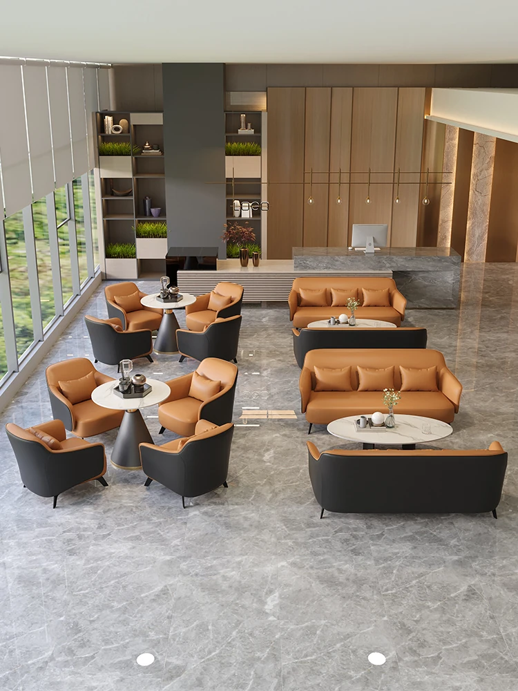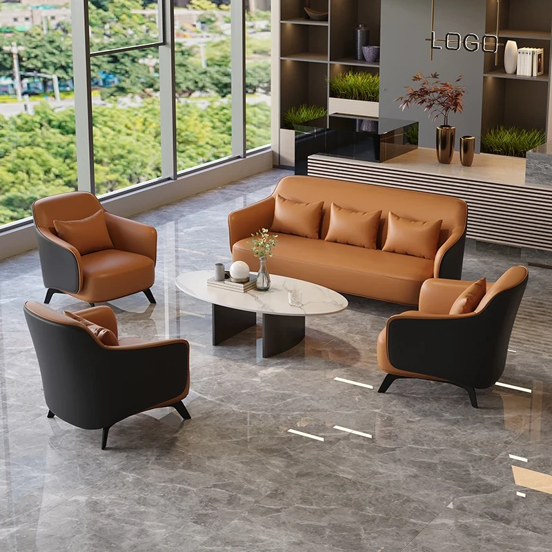 高級感溢れる現代的なビジネスソファセット - 美容院やサロンの受付に最適な洽談ソファとテーブルのコンビネーションで、優雅な空間を演出します。お客様をお迎えする際の完璧な選択です!