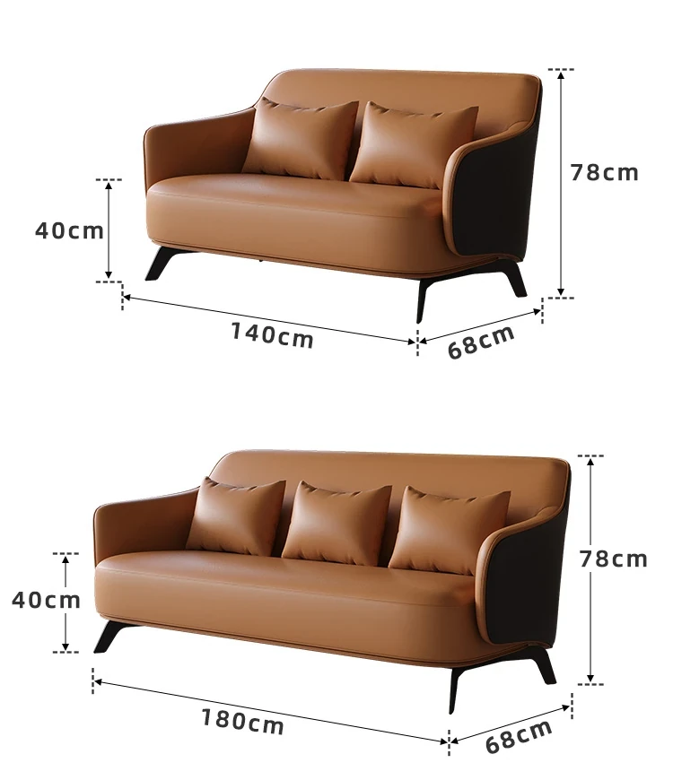 3脚オレンジブラック一人用ソファ+オレンジブラック三人用ソファ+130コーヒーテーブル