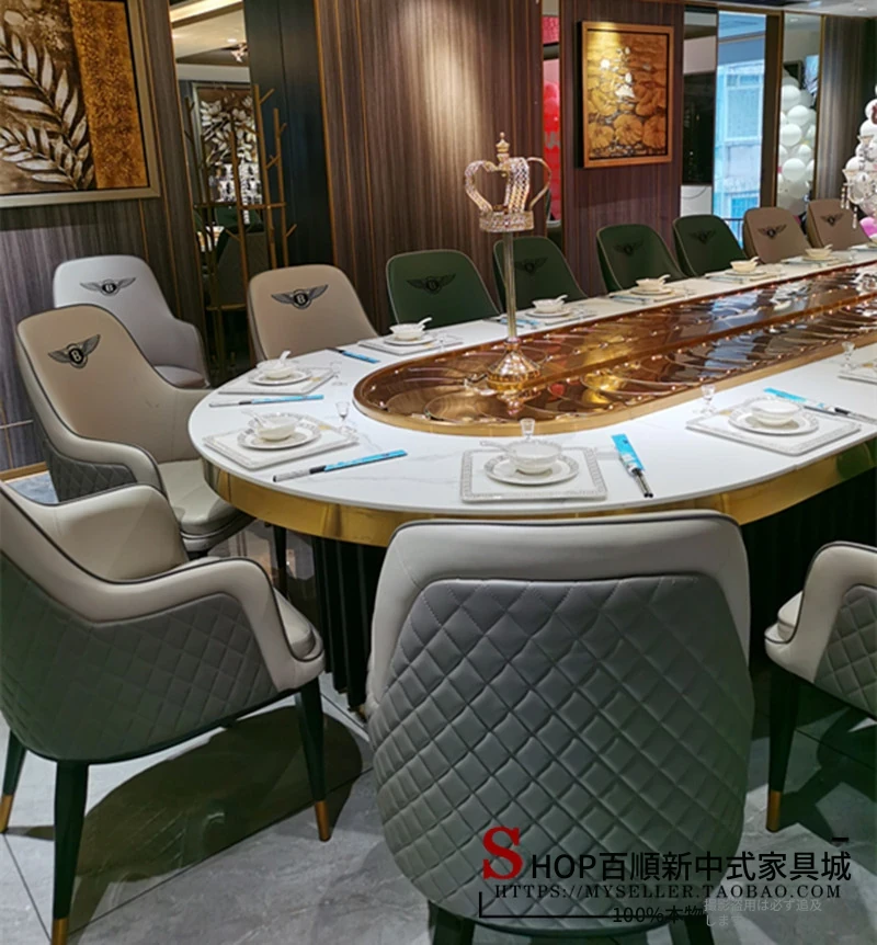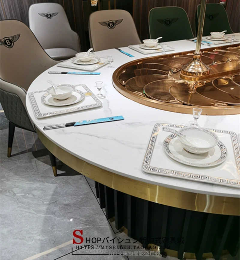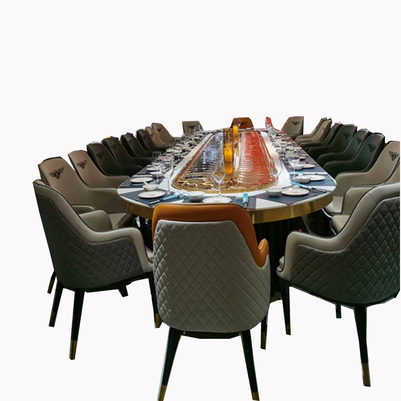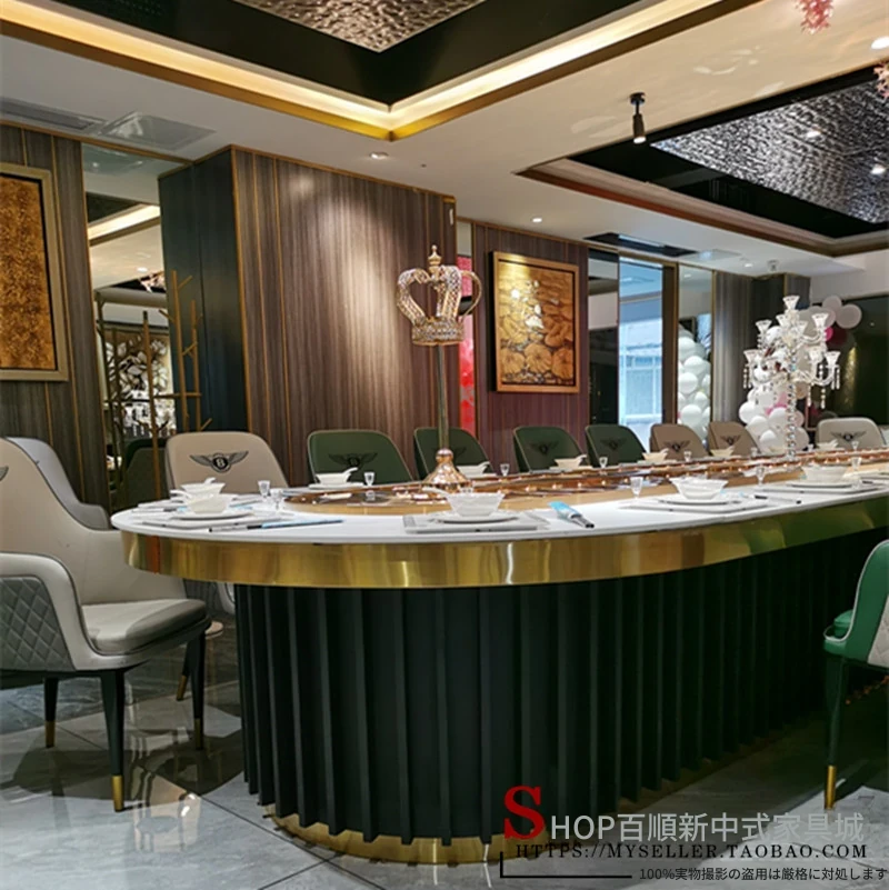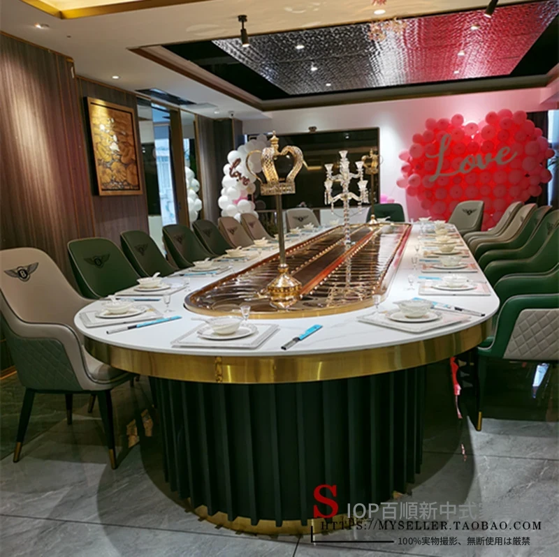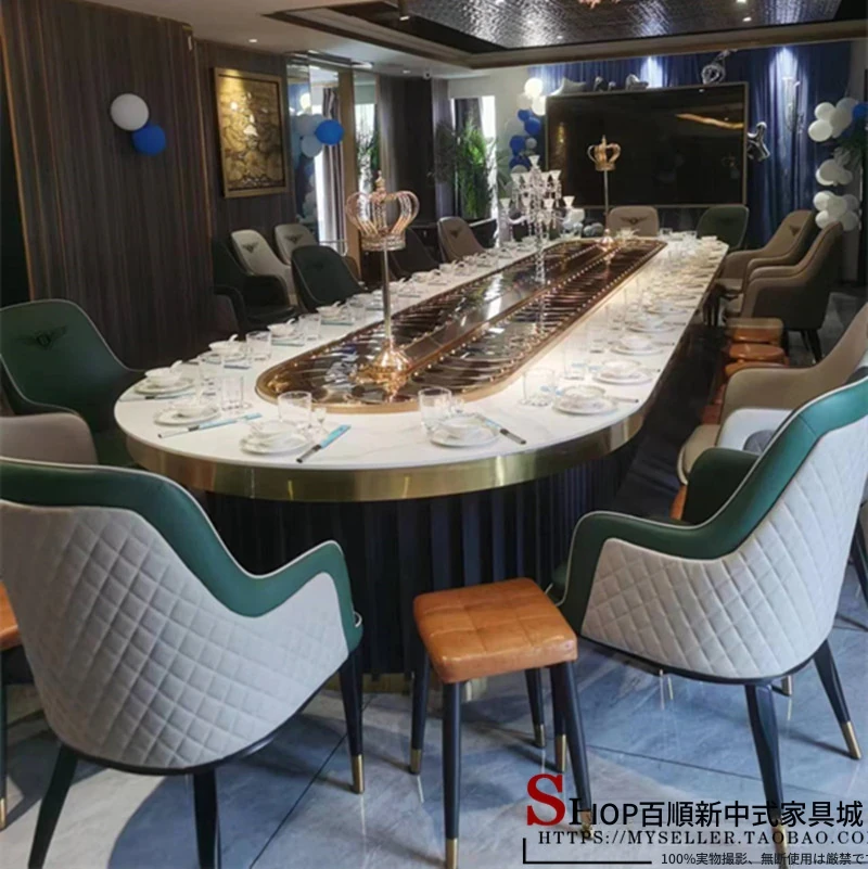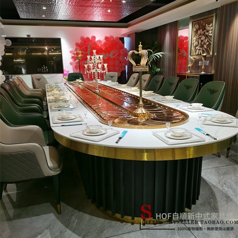 新中式デザインのエレガントな楕円形電動レストランテーブル - 20人用回転式長方形個室、餃子専門店やホテル、クラブに最適!快適な食事体験を提供します!