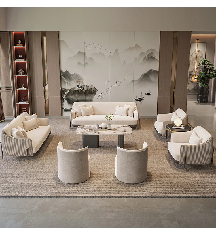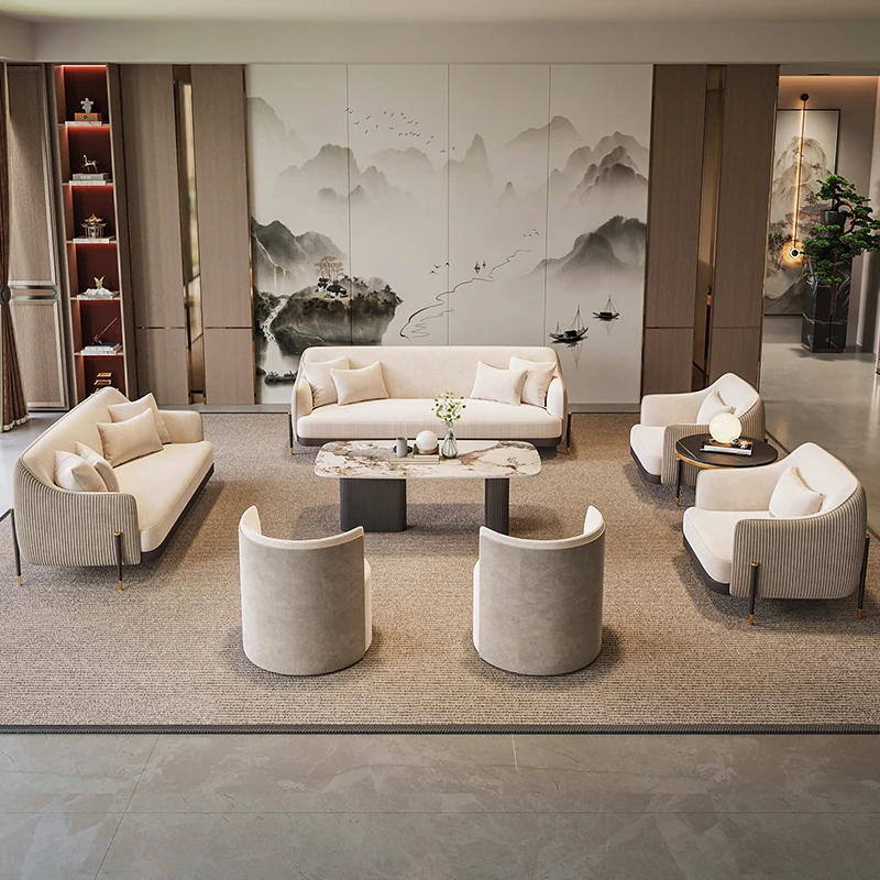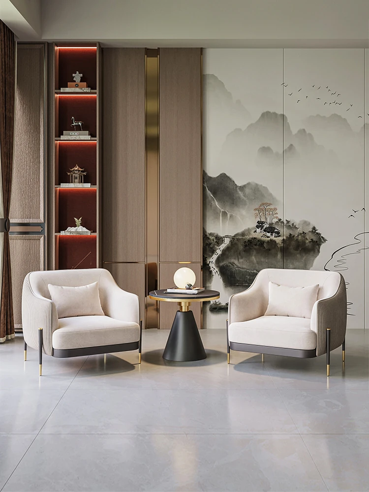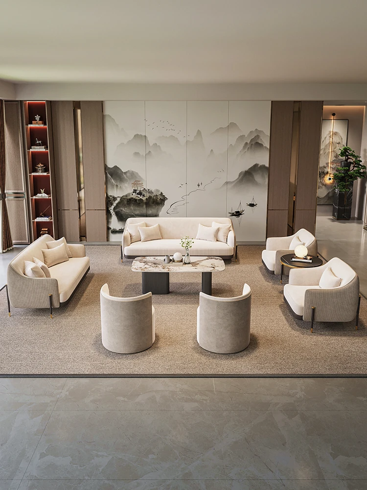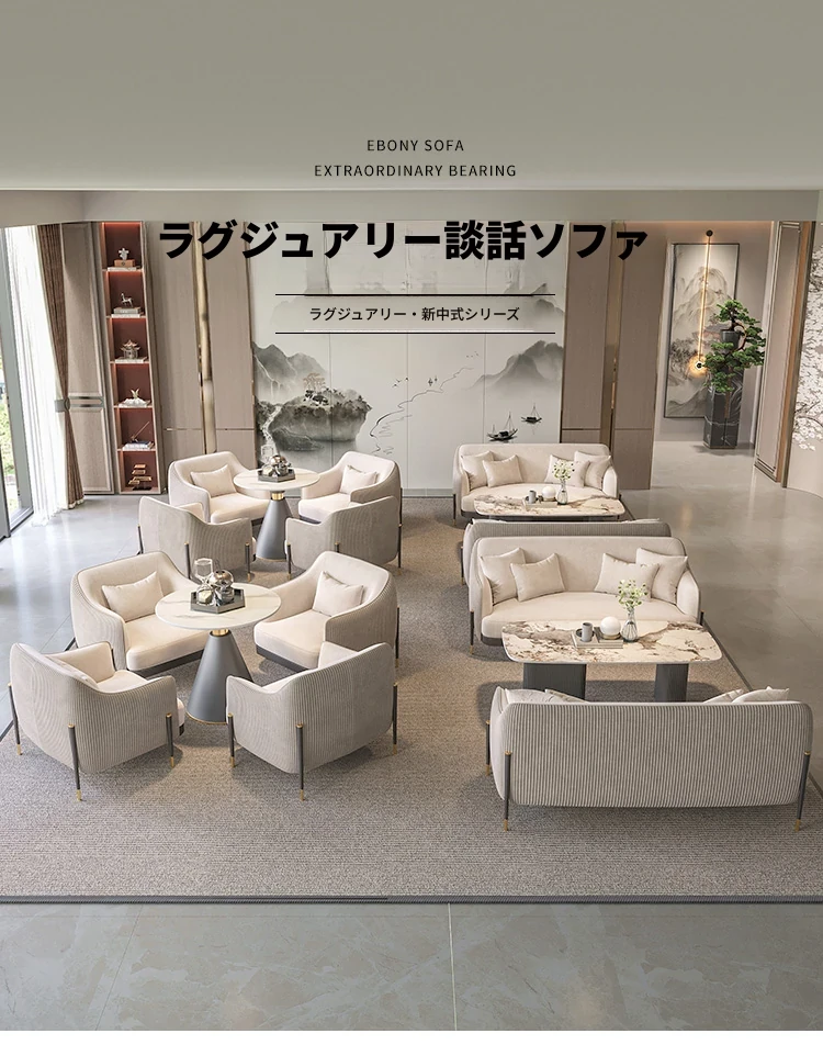 新中式スタイルの高級感溢れる販売オフィス用談話ソファ|ホテルロビーや休憩エリアに最適なリラックスカウンターソファ|茶室にもぴったりなデザイン!