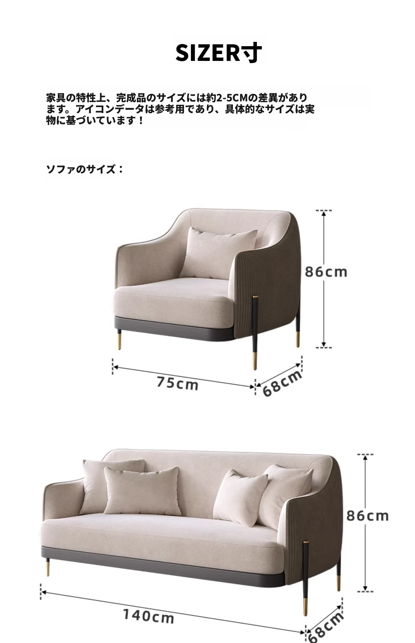 3人用ソファ+1人用ソファ2脚+140コーヒーテーブル