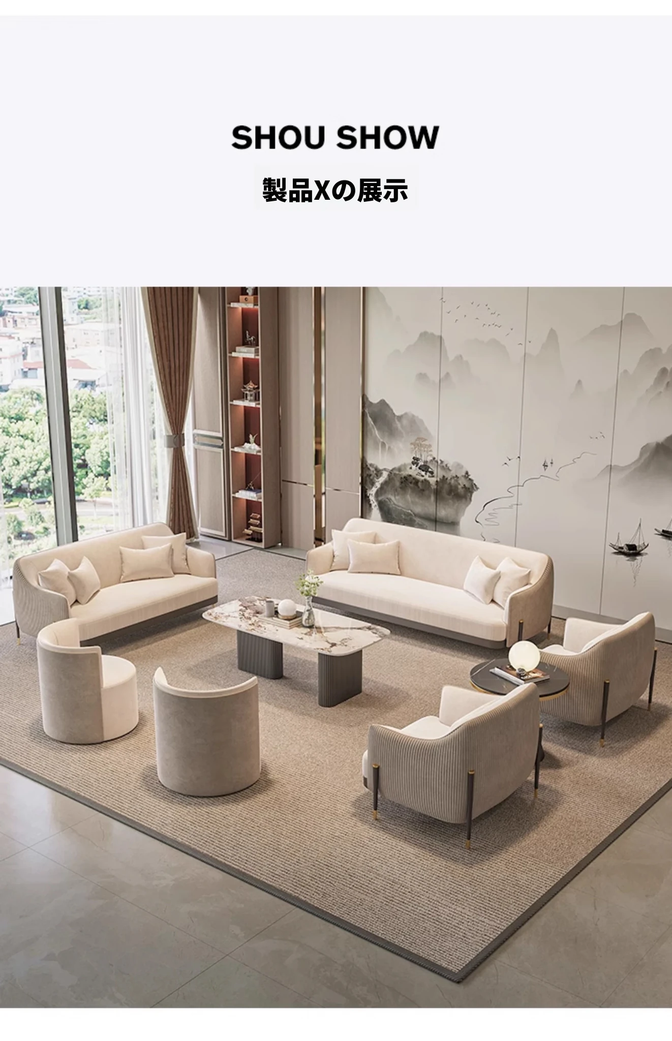 3人用ソファ2脚+1人用ソファ2脚+丸いスツール2脚+140コーヒーテーブル