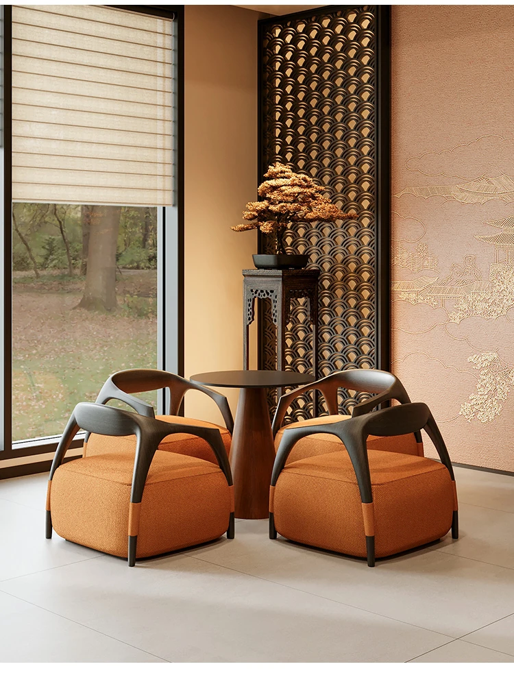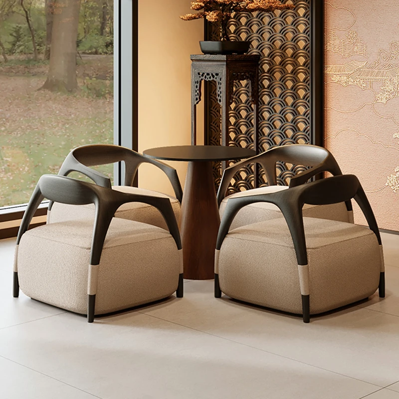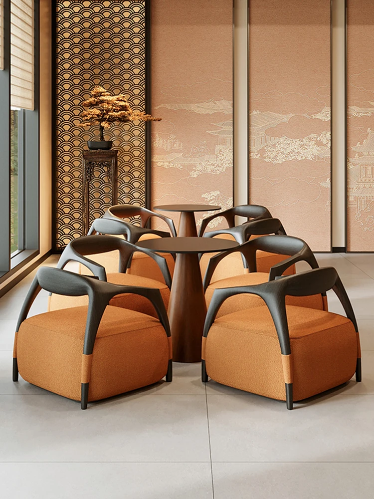 新中式禅スタイルの高級接待テーブル&チェアセット - ホテル・クラブ・茶室に最適なビジネス会談用の高級木製ソファ椅子。上質な空間を演出し、心地よいひとときを提供します。