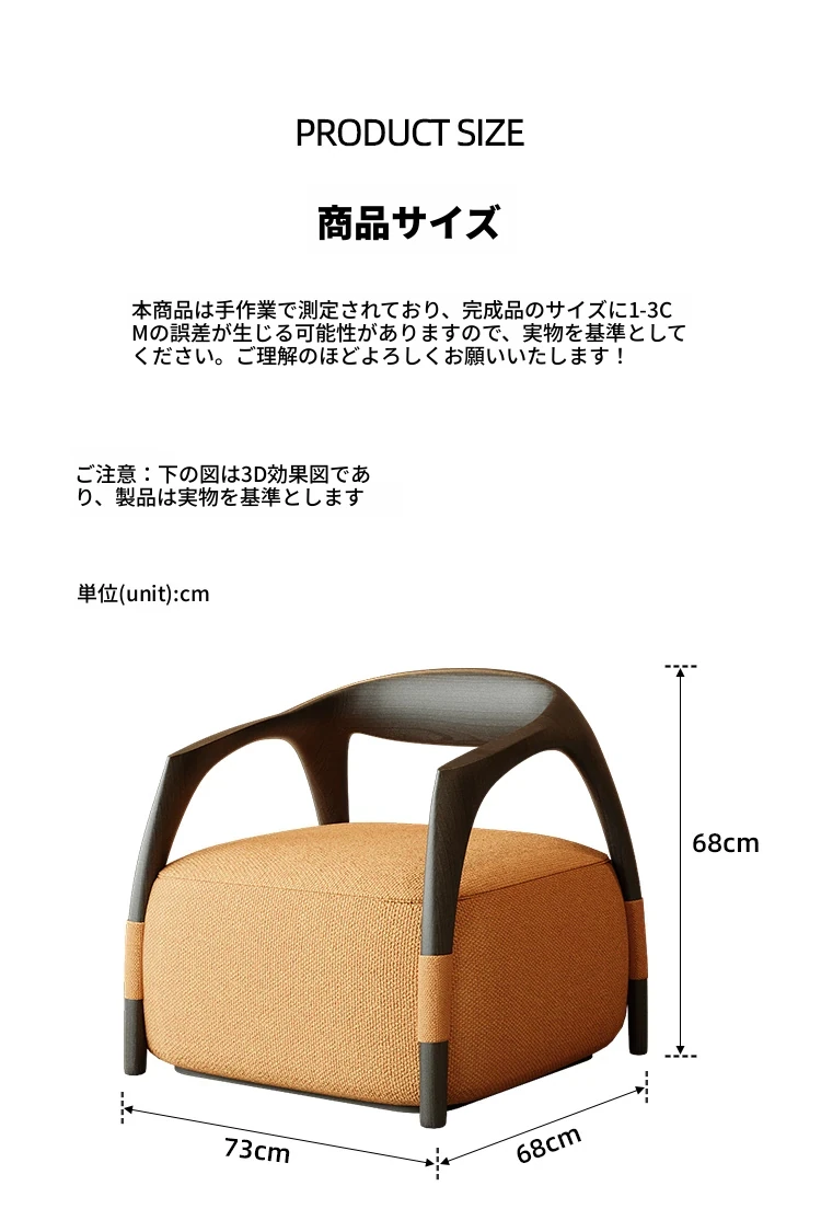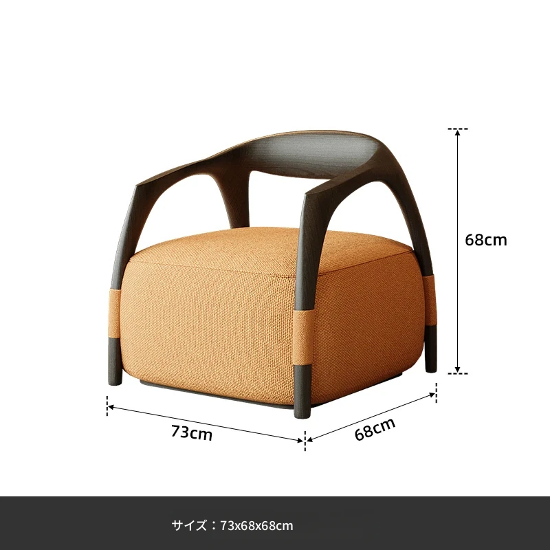 オレンジのソファチェア(FAS等級の輸入ホワイトアッシュ+長城ベルベット)