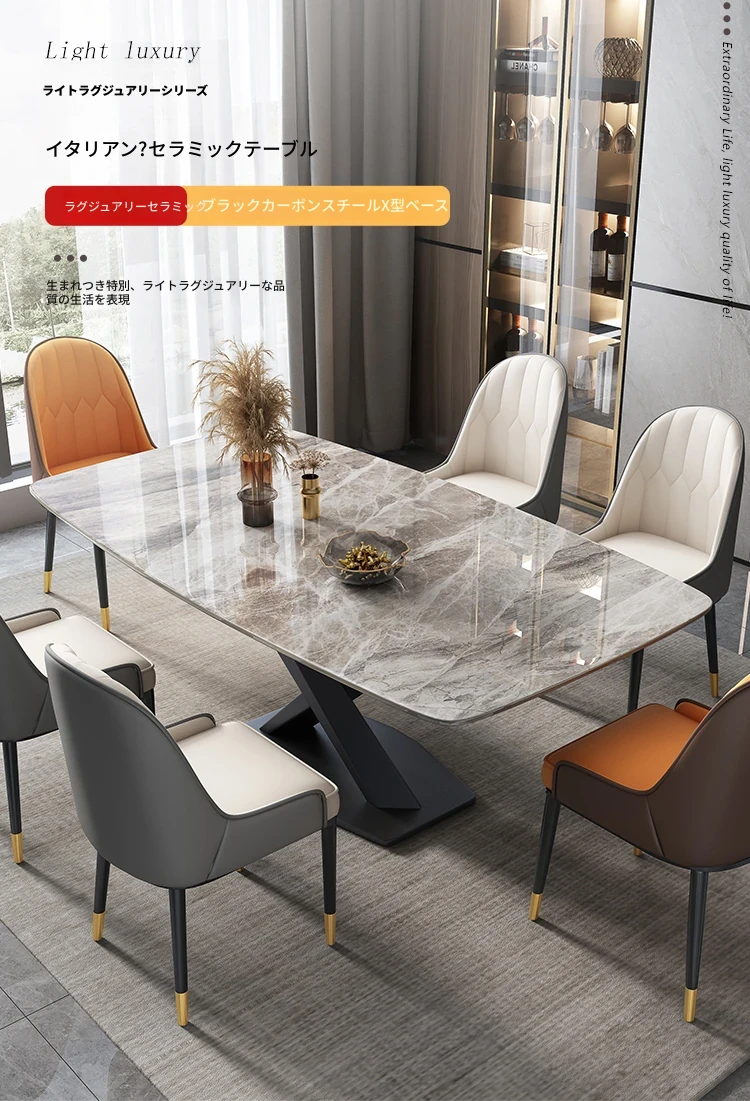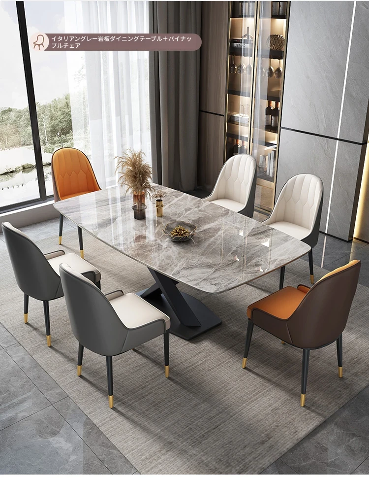 【12mm岩板】一卓六椅組合【大パイナップル椅子】