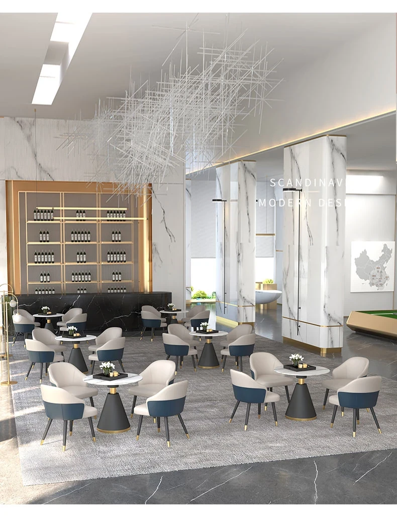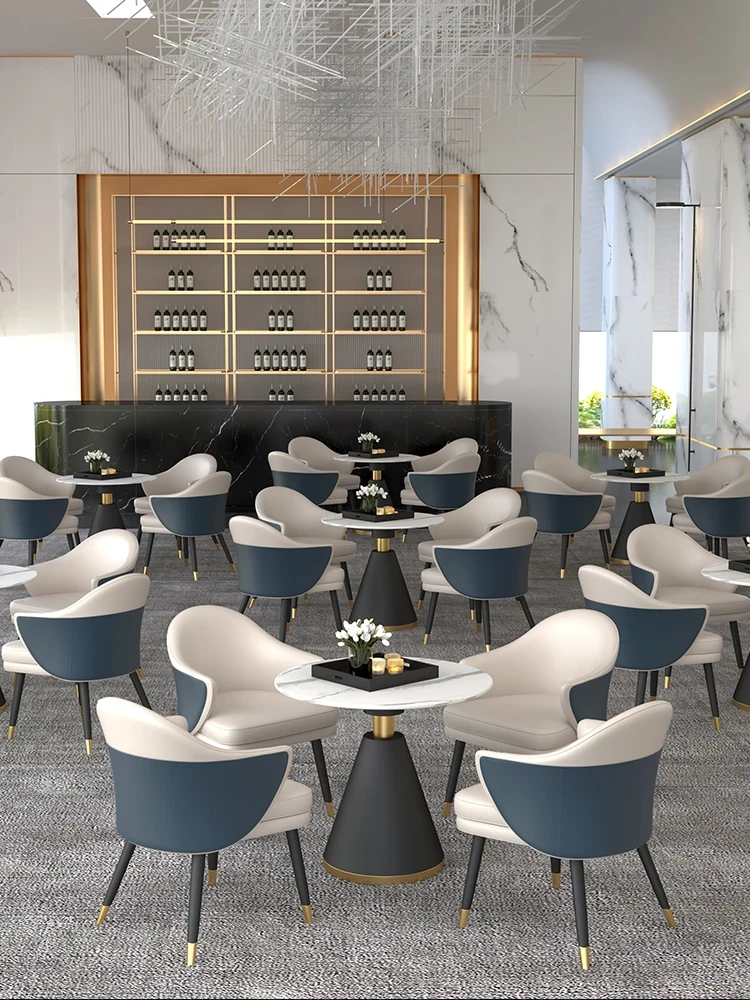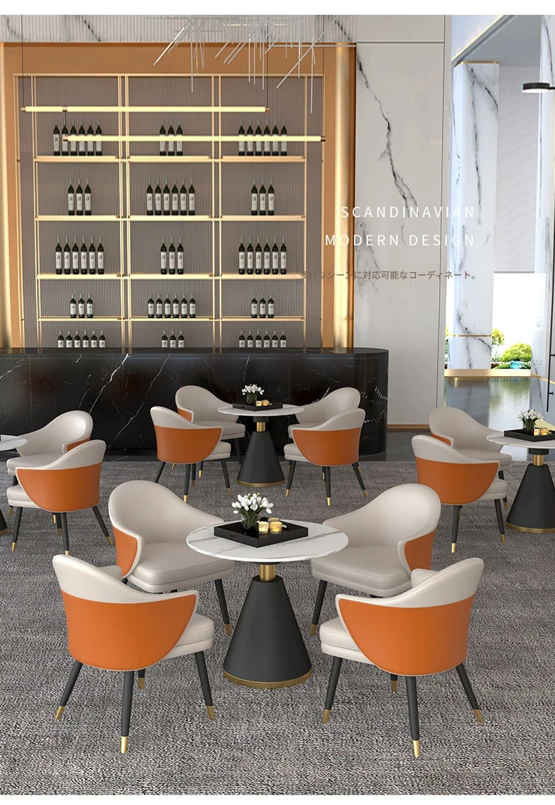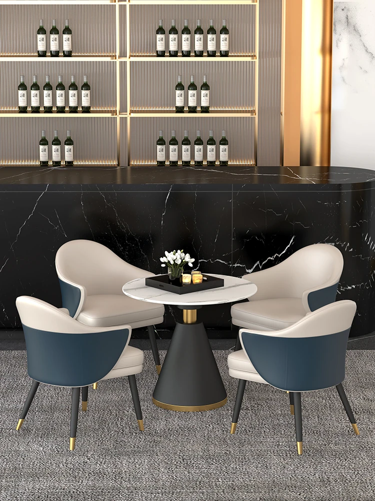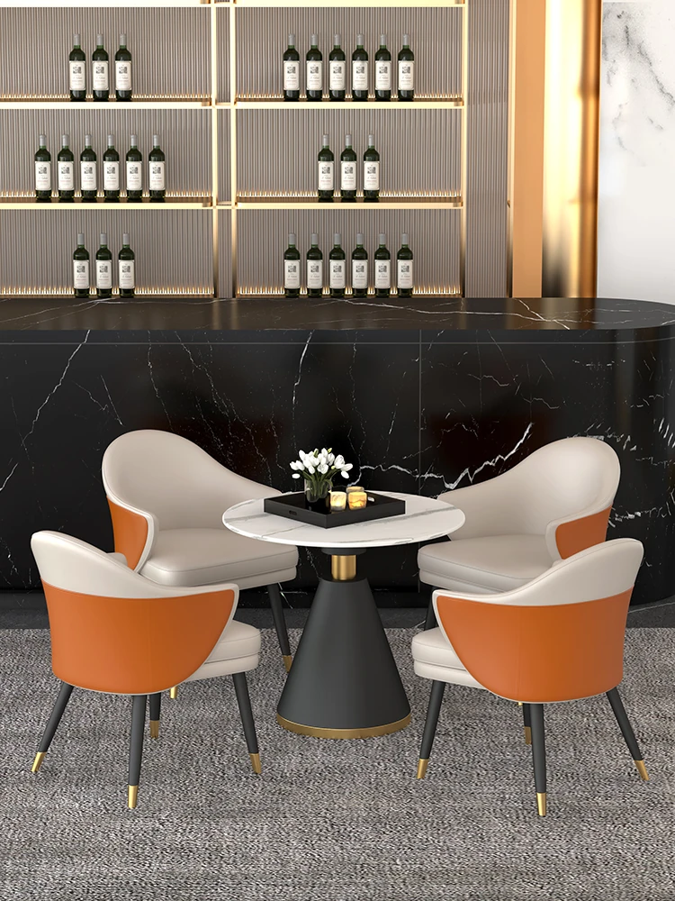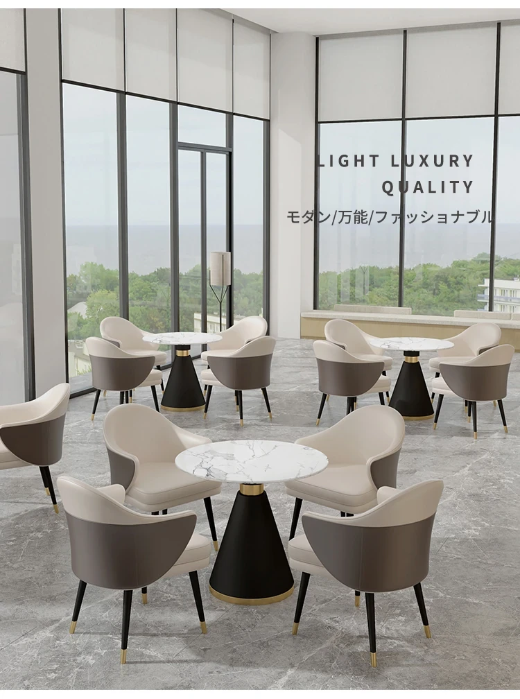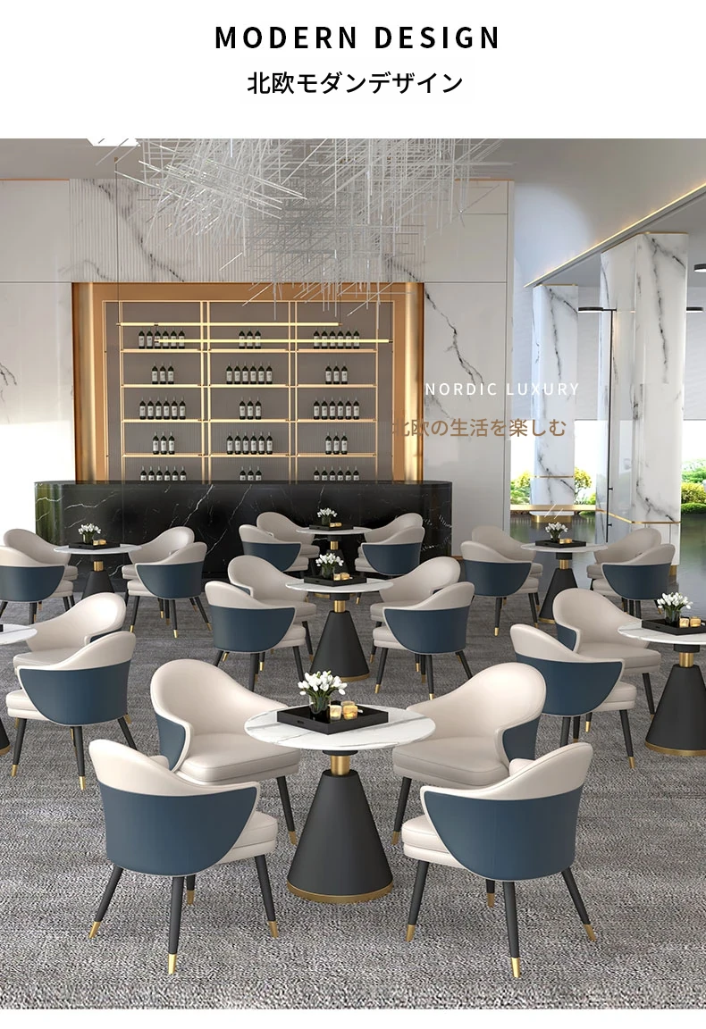 高級感溢れる不動産営業所用の談話テーブルセット!スタイリッシュな小型ラウンドテーブルと快適な4脚の椅子で、ビジネスミーティングや商談を華やかに演出。洗練されたデザインで、来客を心地よくお迎えします。