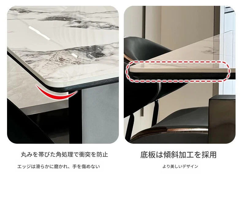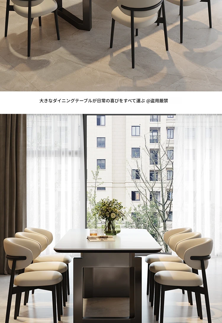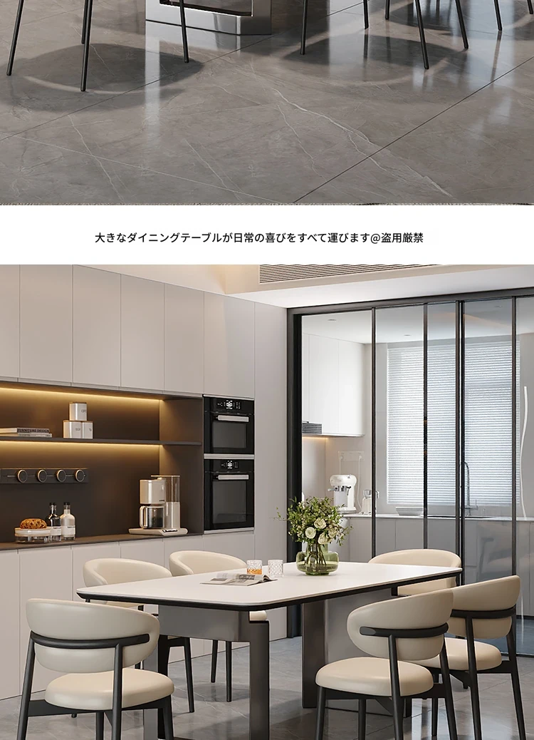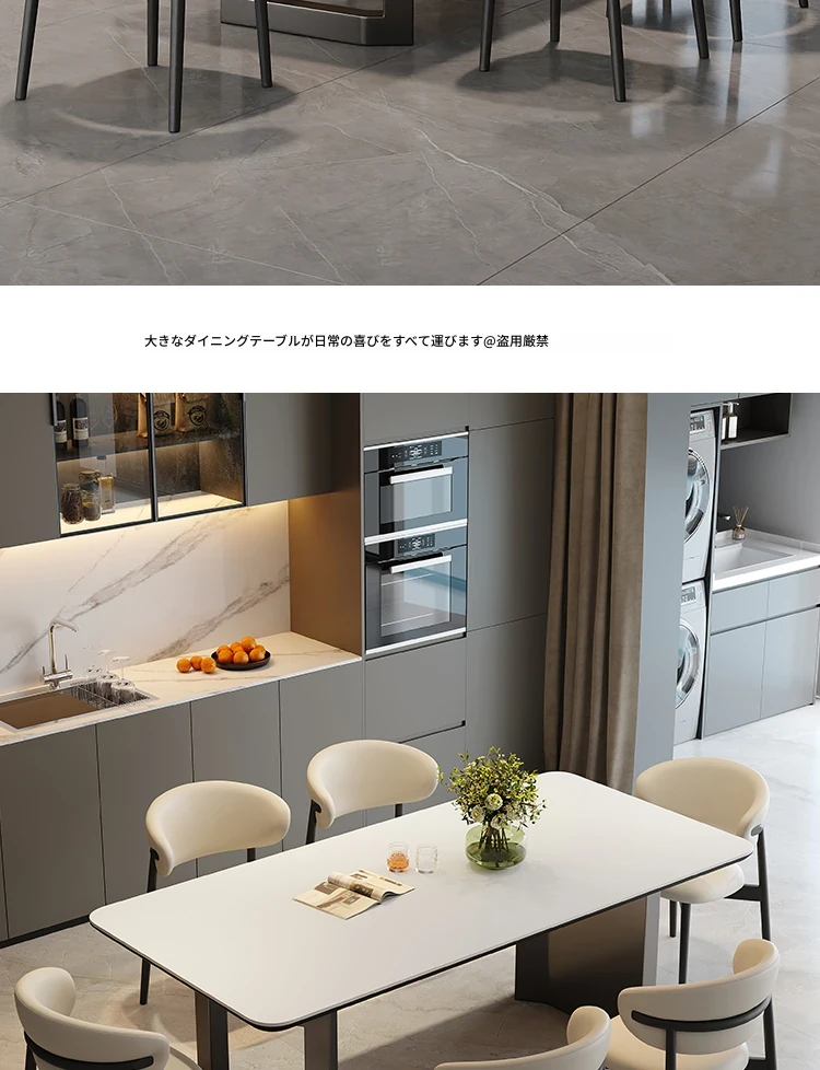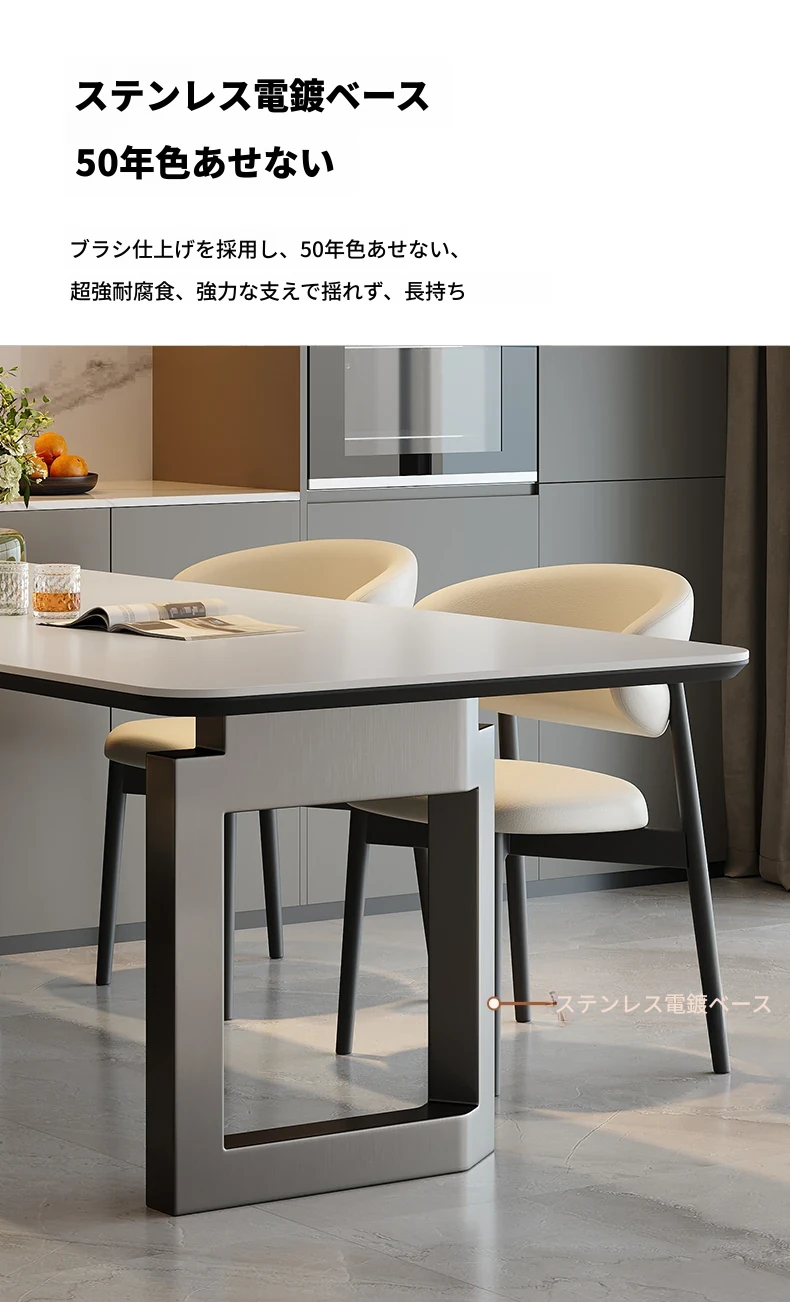 フェンディ ステンレス製 ラウンドボード ダイニングテーブル 長方形 全面サポート 軽やかで高級感溢れる現代的でシンプルなデザインのダイニングテーブル