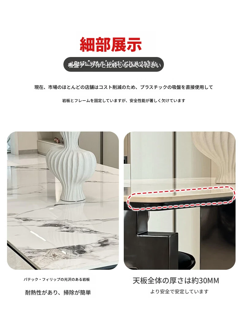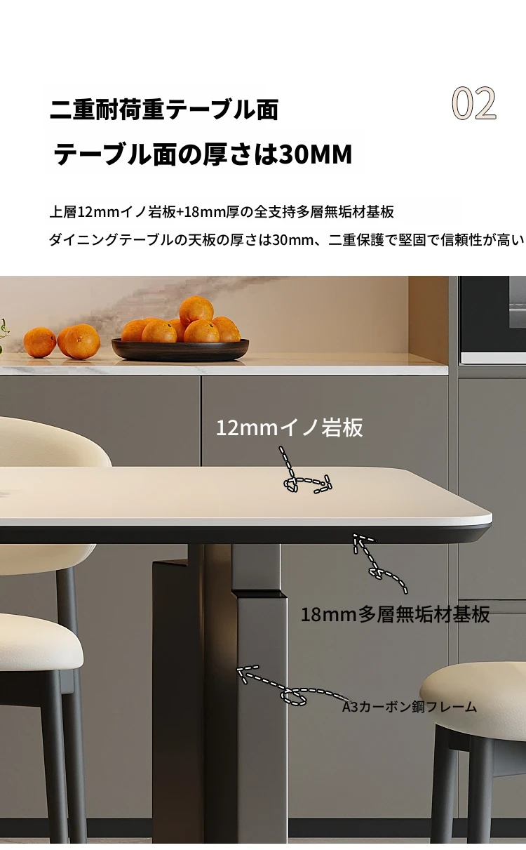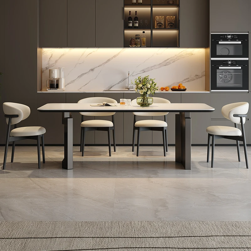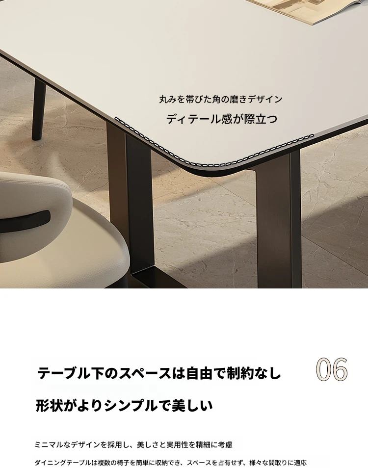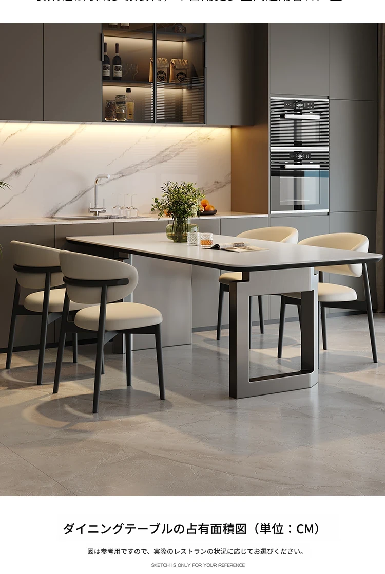 フェンディ ステンレス製 ラウンドボード ダイニングテーブル 長方形 全面サポート 軽やかで高級感溢れる現代的でシンプルなデザインのダイニングテーブル