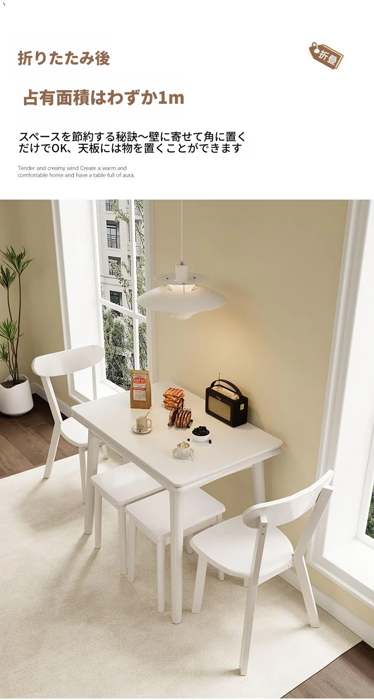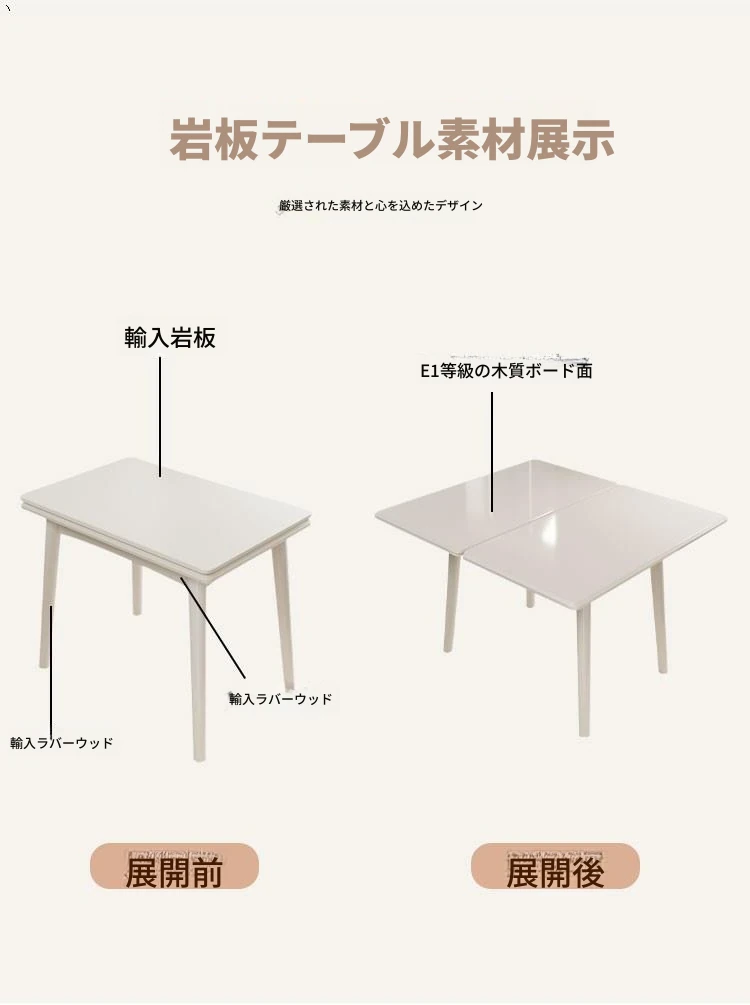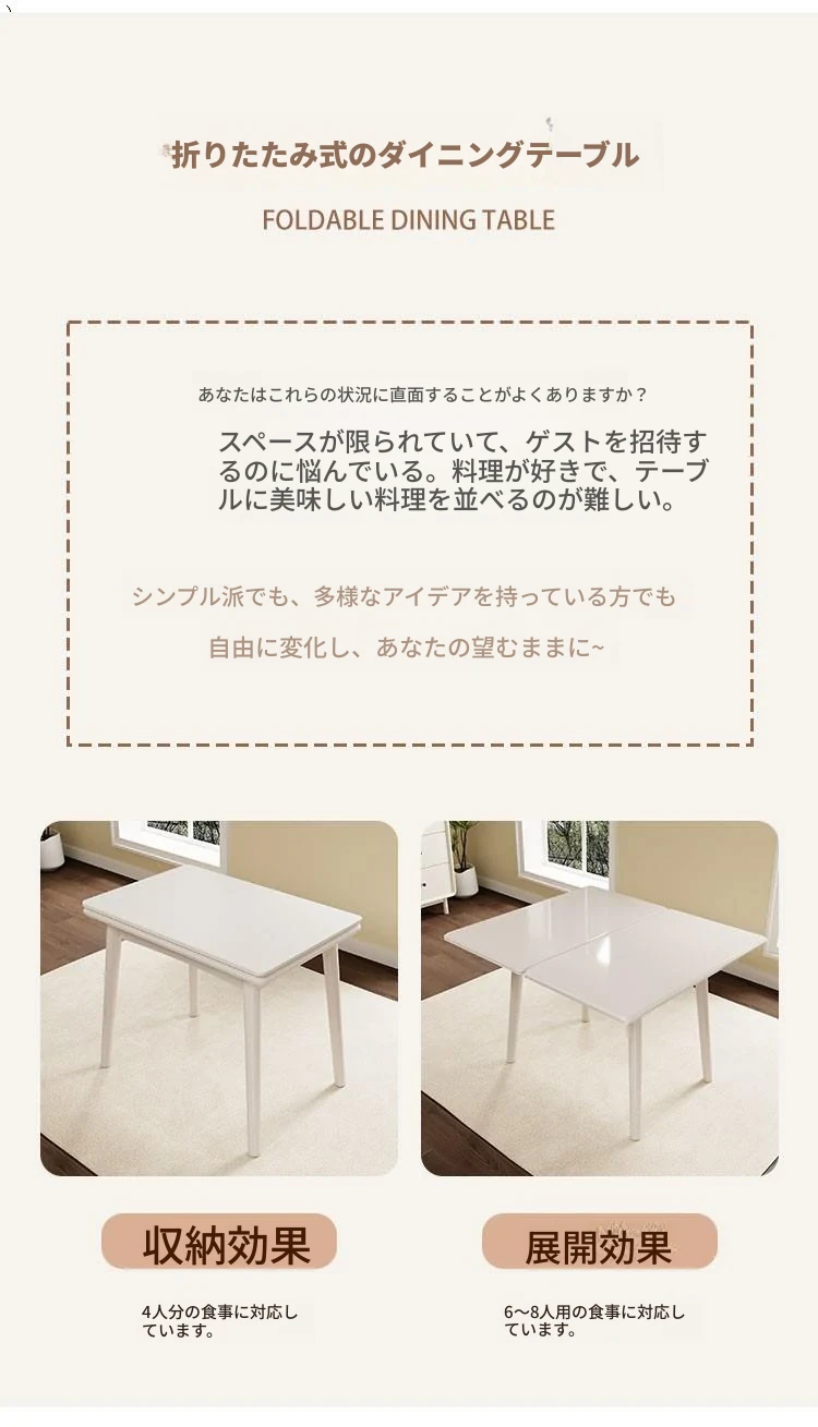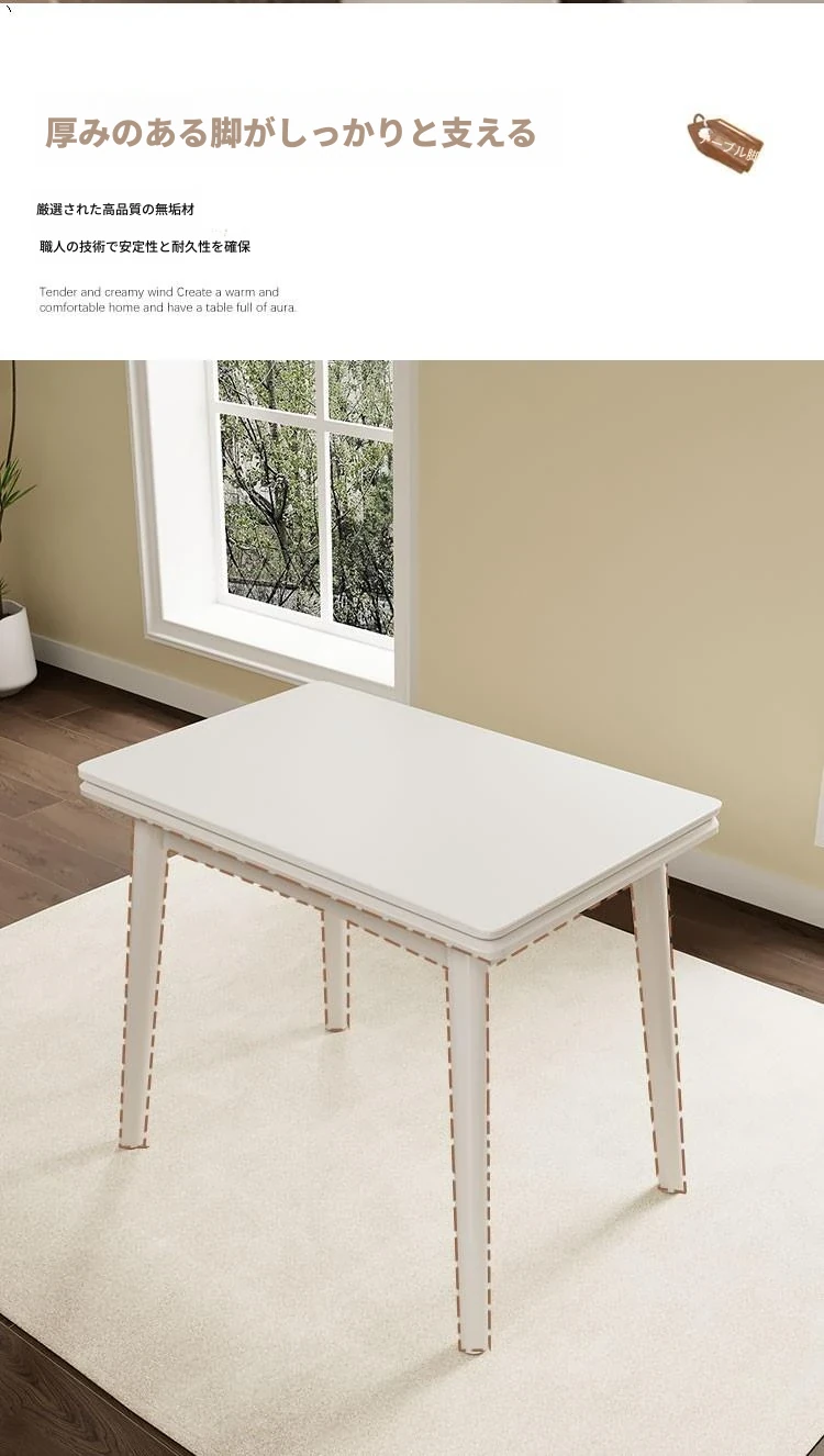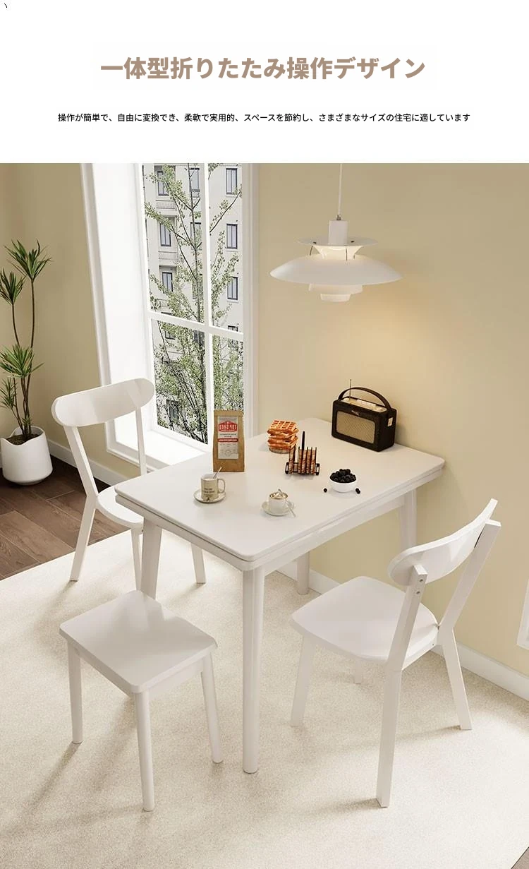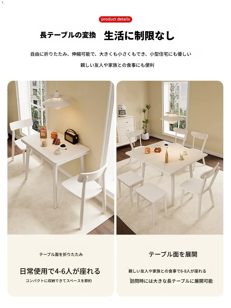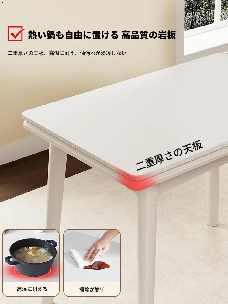 折りたたみ式の岩板ダイニングテーブル|小型住宅に最適な実木製・多機能・モダンシンプルな長方形ホワイトテーブル|省スペースでおしゃれな食事空間を演出!