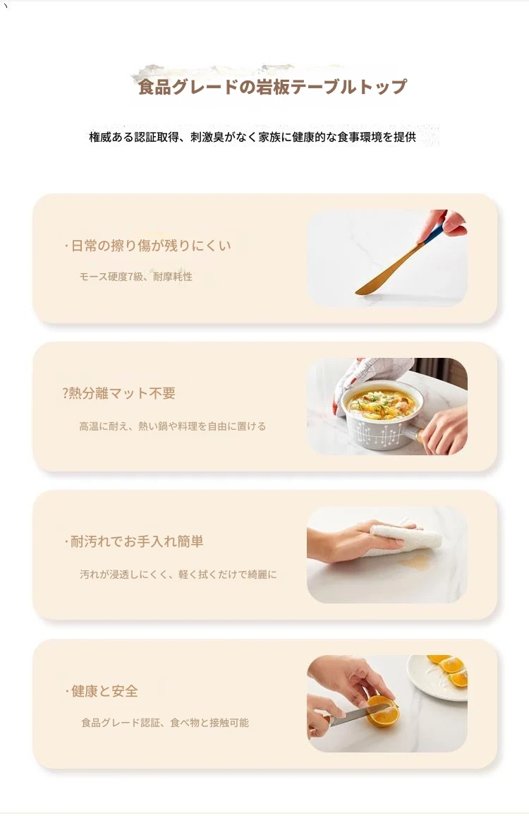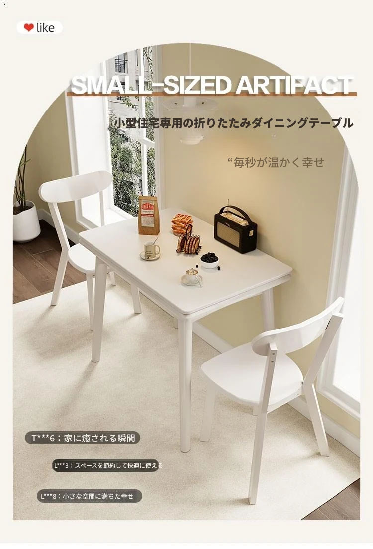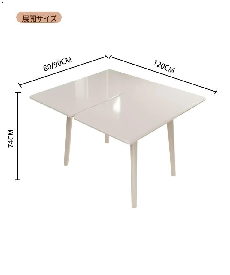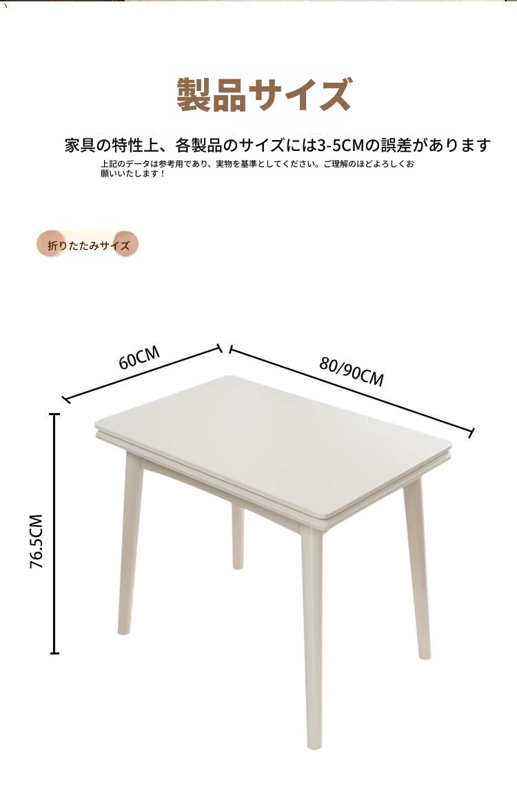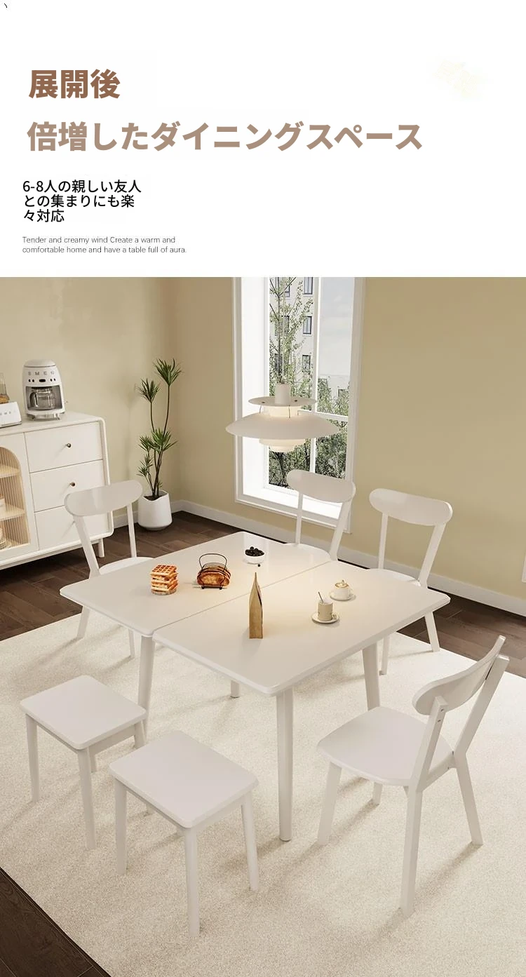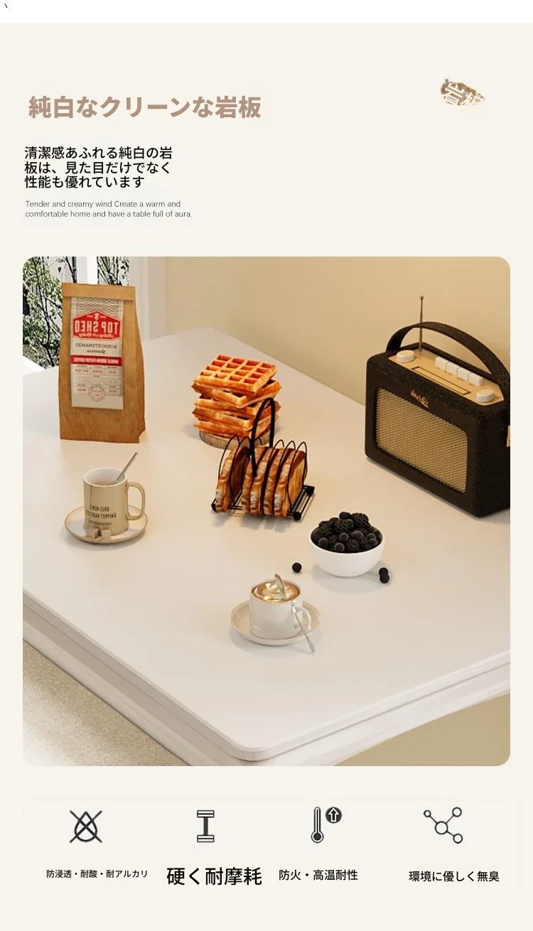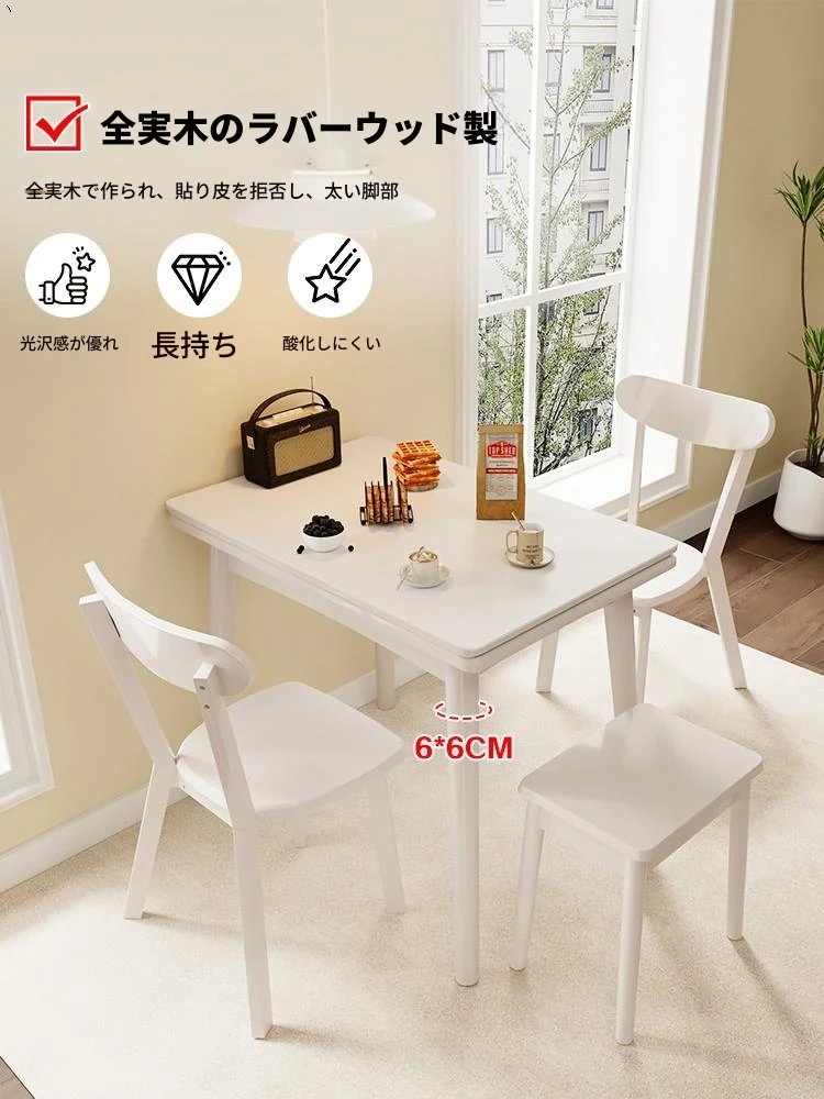 折りたたみ式の岩板ダイニングテーブル|小型住宅に最適な実木製・多機能・モダンシンプルな長方形ホワイトテーブル|省スペースでおしゃれな食事空間を演出!